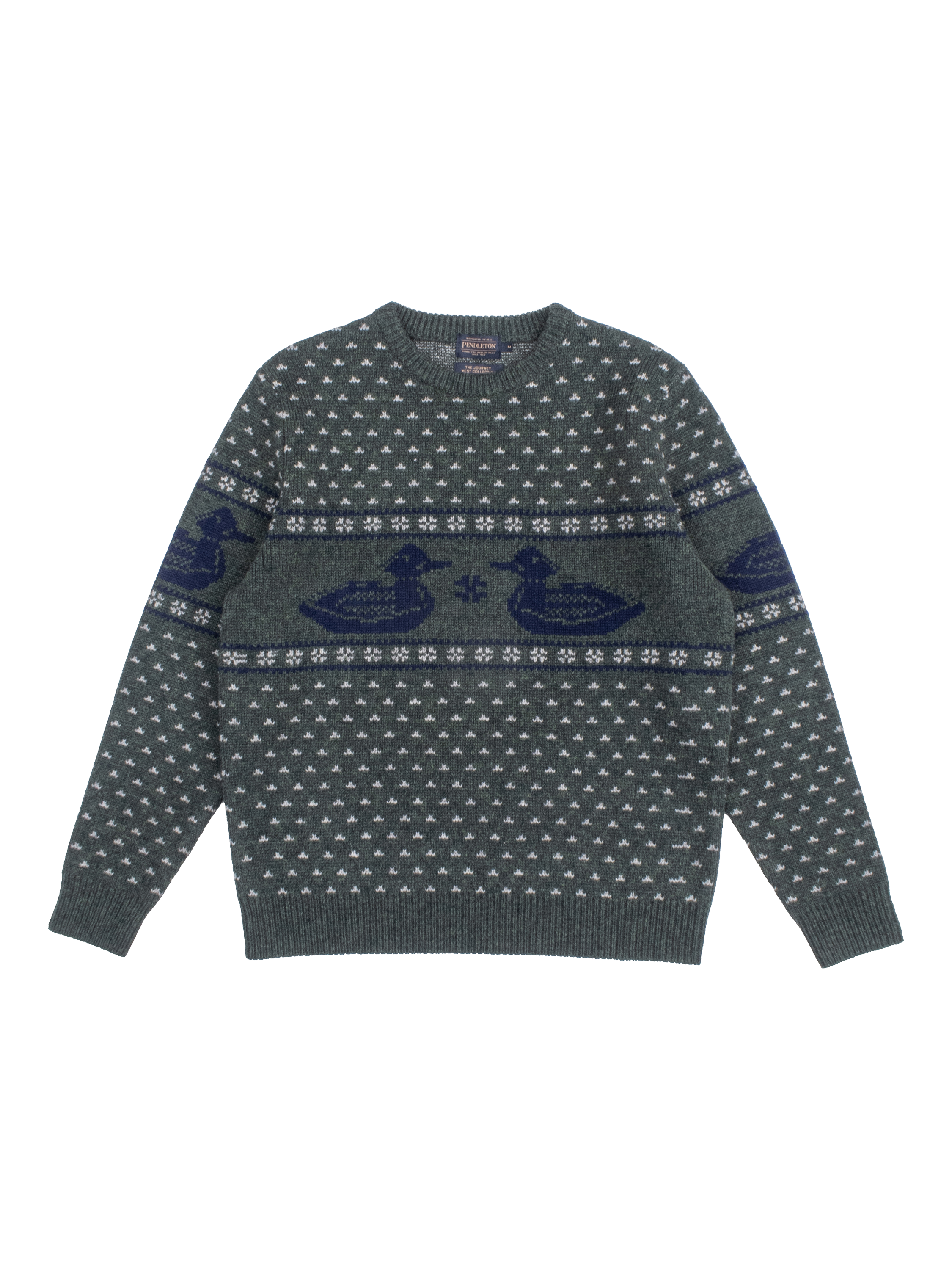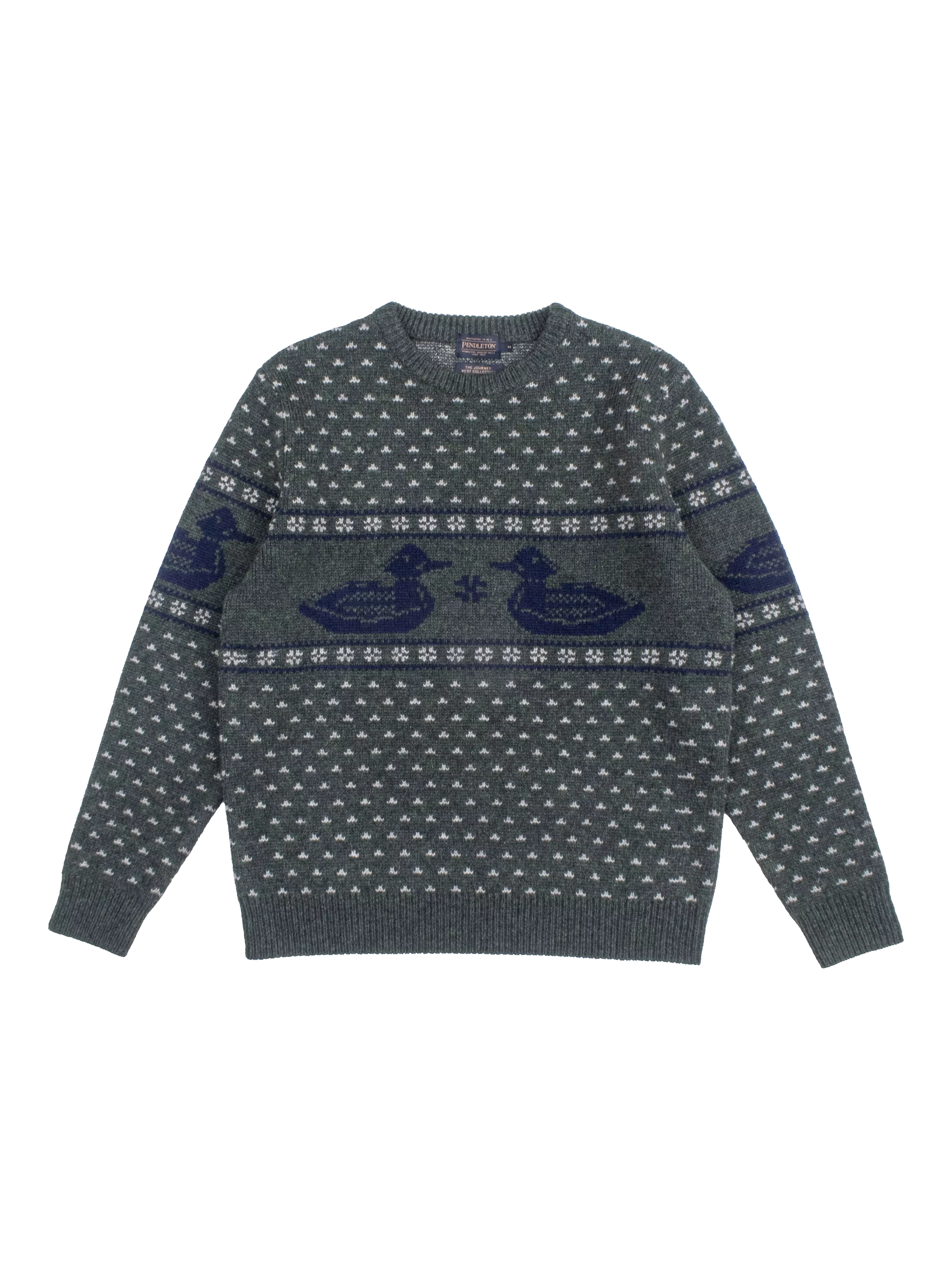 This mid-weight jumper is knitted entirely from soft lambswool and also boasts the brand's striking archival Duck motif.