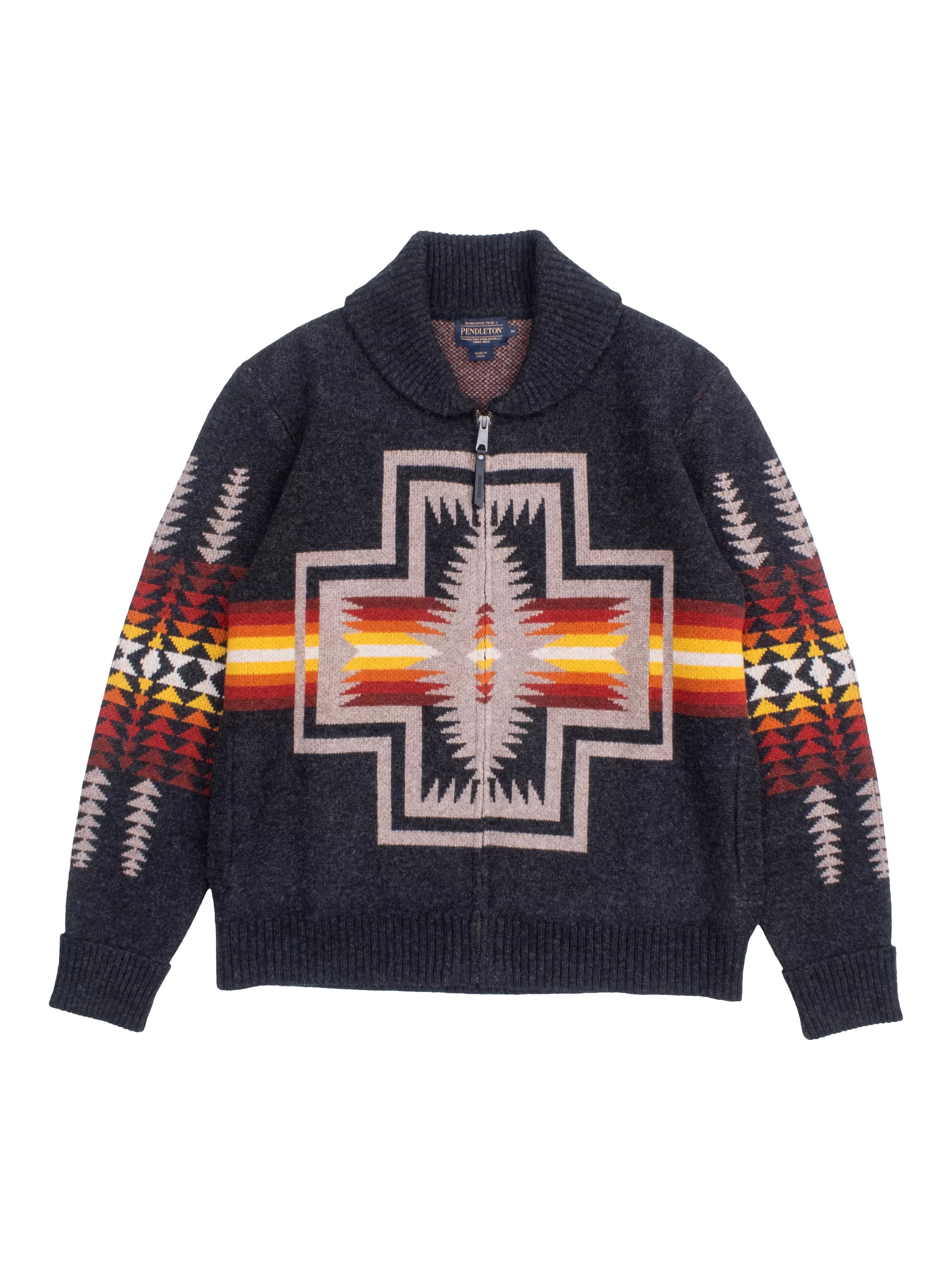 The motif on this zip-fastened lambswool jumper is taken from the brand's Harding blanket design.
