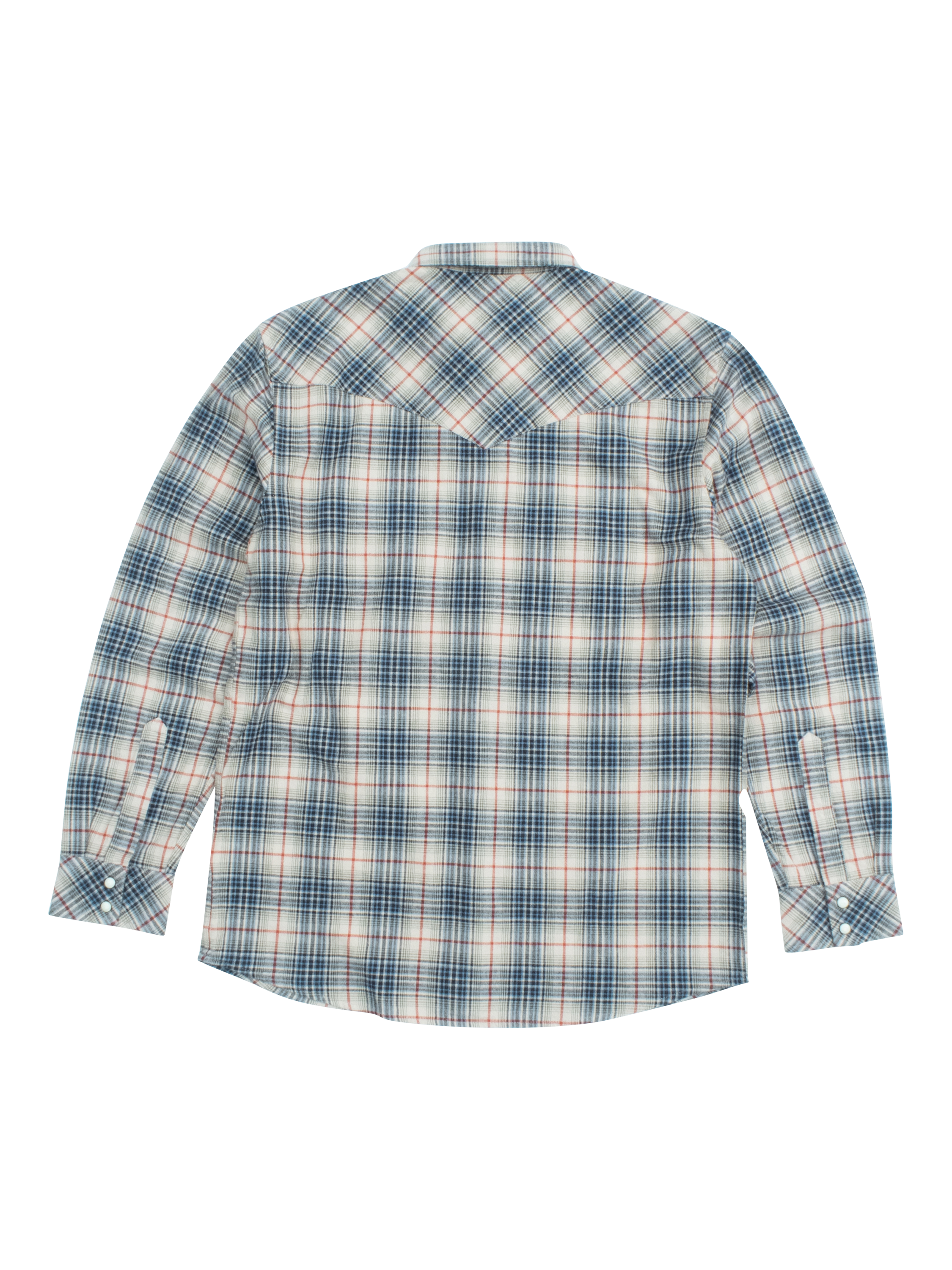 This classic piece features a distinctive peaked front, and a back bias-cut yoke design. Woven from soft and breathable cotton with snap closures, angled bias pockets and a shirt-tail hem.