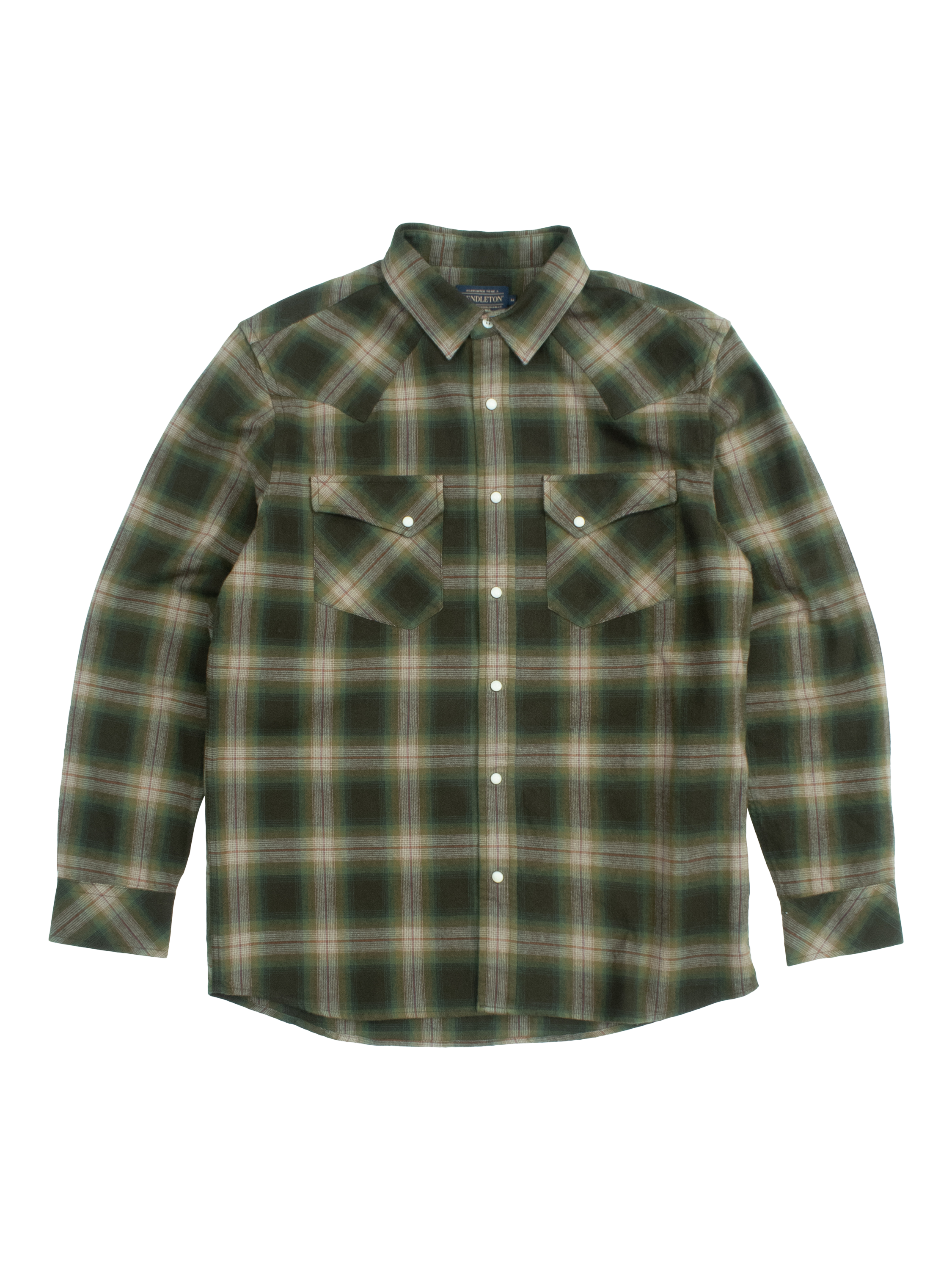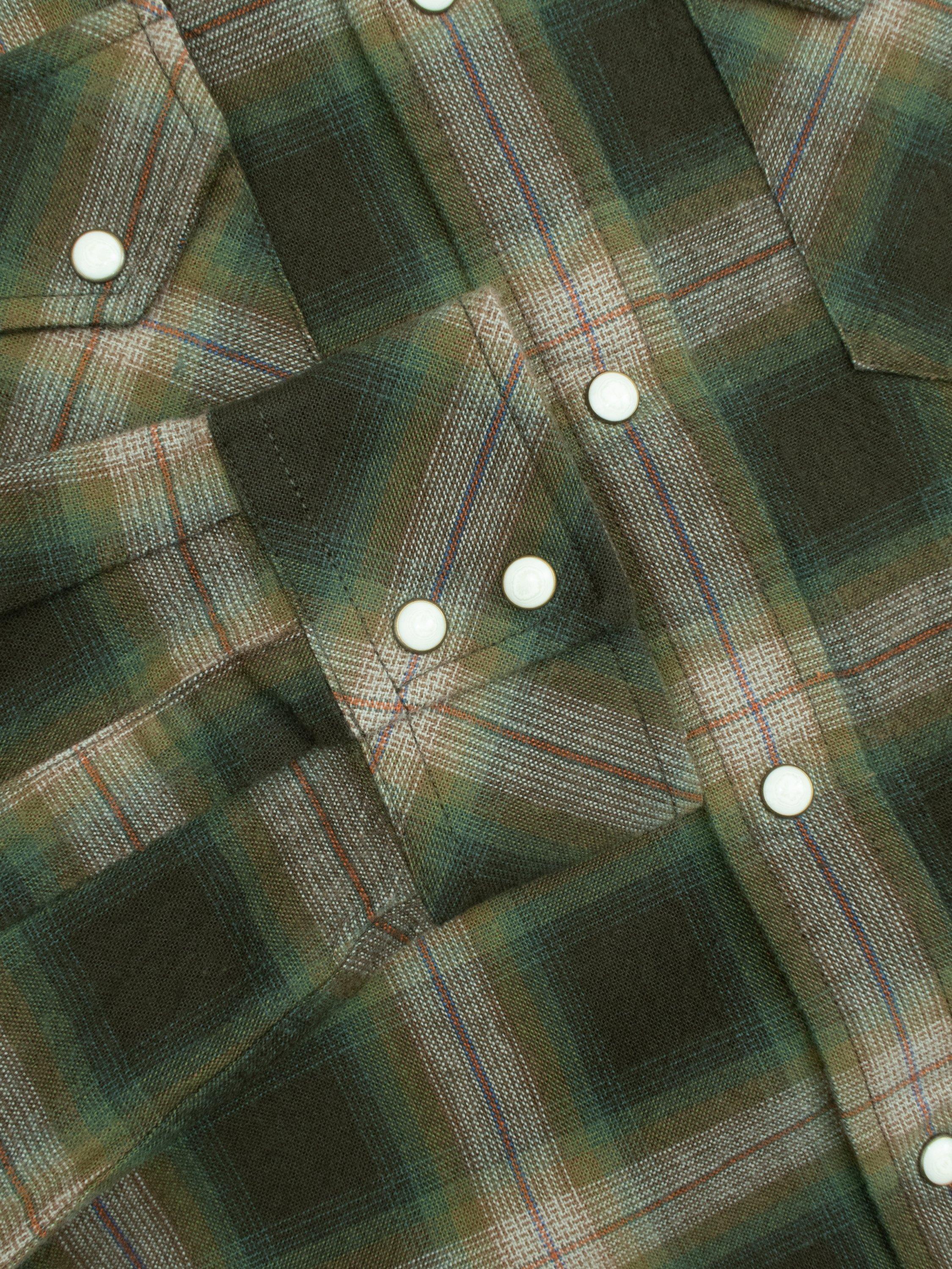 This classic piece features a distinctive peaked front, and a back bias-cut yoke design. Woven from soft and breathable cotton with snap closures, angled bias pockets and a shirt-tail hem.