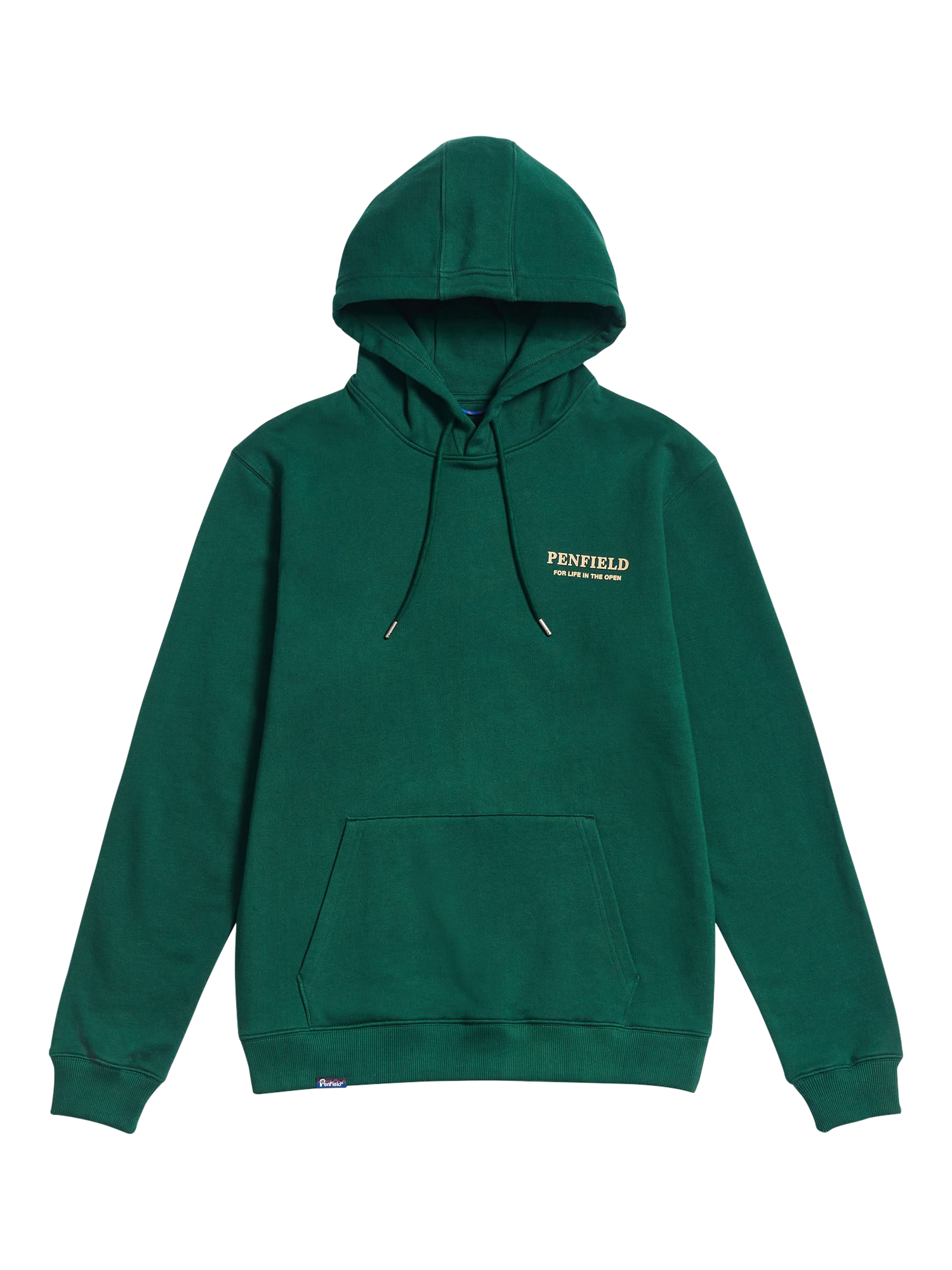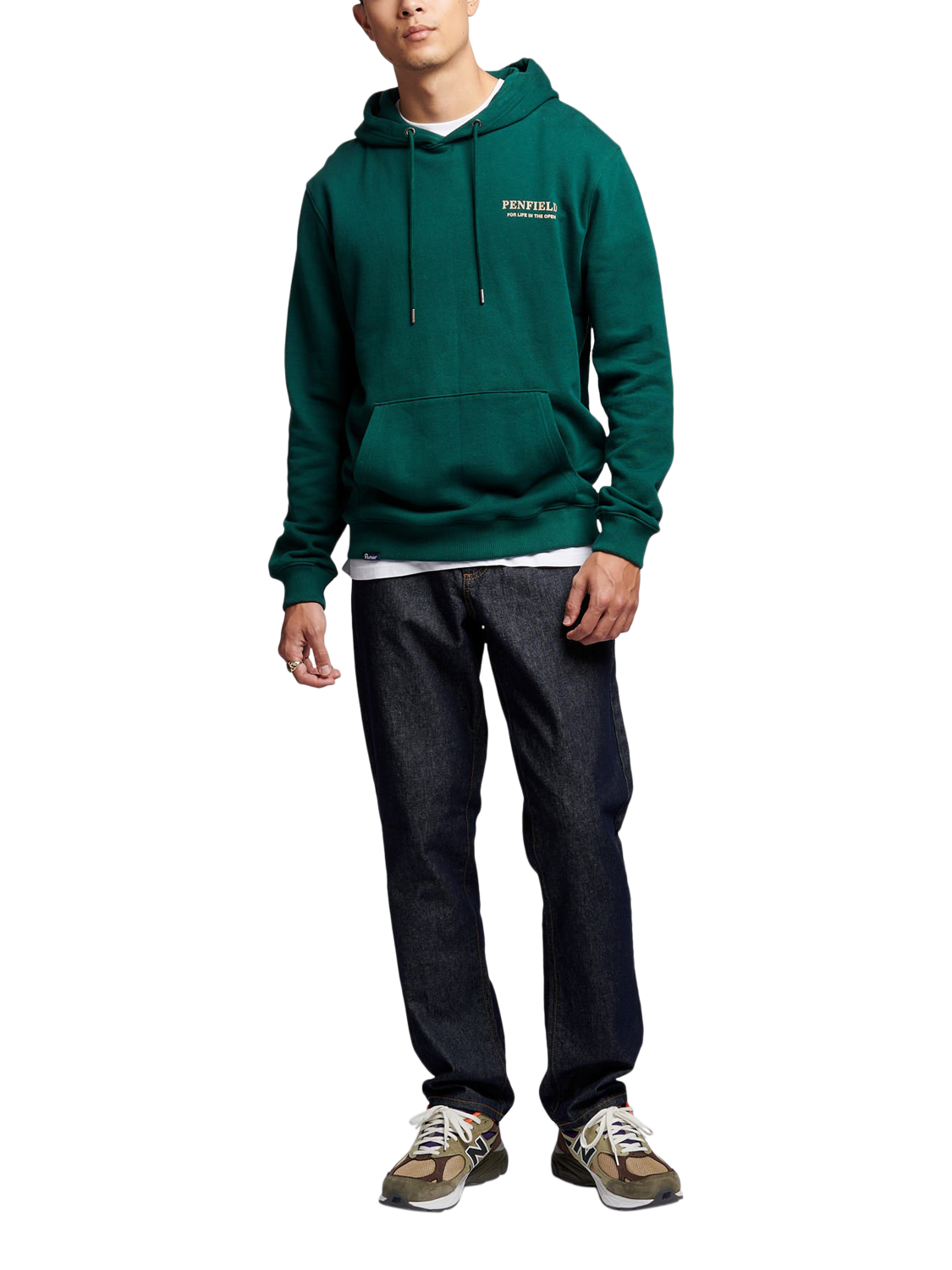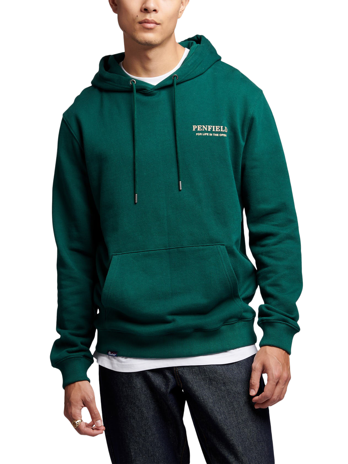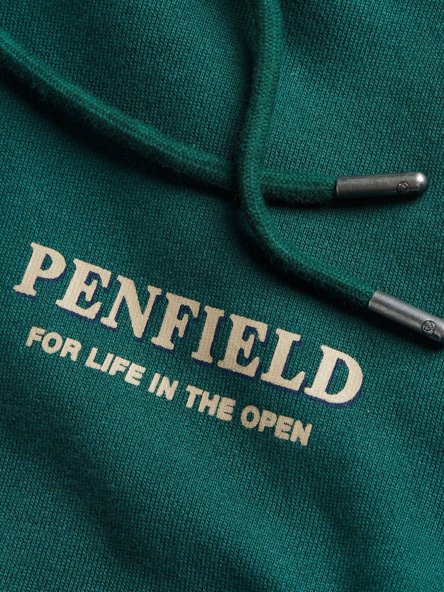 Crafted from 350gsm cotton blend loopback sweat fabric, it offers breathability and softness. The relaxed fit, ribbed hem, and cuffs provide a refined silhouette, while the 3-piece hood adds warmth. A small logo on the chest and a large black bear graphic on the back celebrate Penfield's heritage whilst a woven logo tab at the hem adds authenticity.
