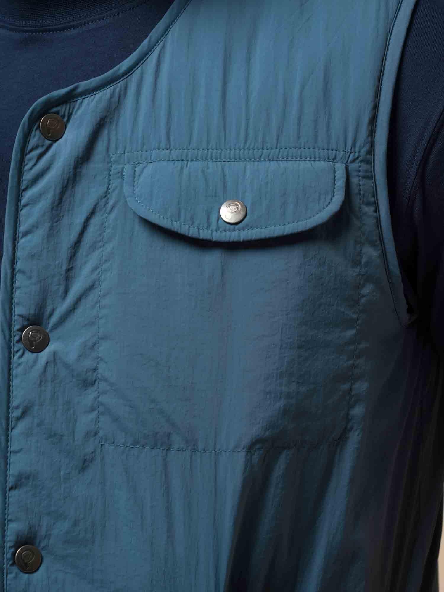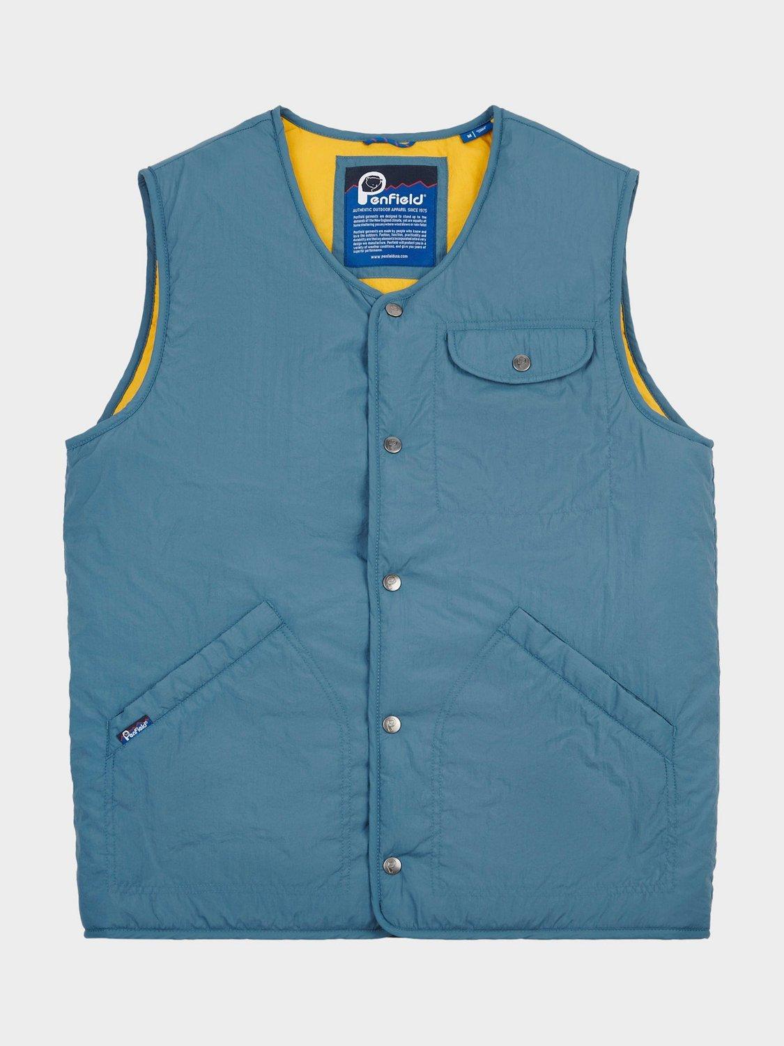 Combining lightweight durability with coastal-inspired design, this water-repellent vest is ideal for layering over equally impressive knitwear designs. A crinkled finish and flat wadding also help ensure lasting warmth without the added bulk.
