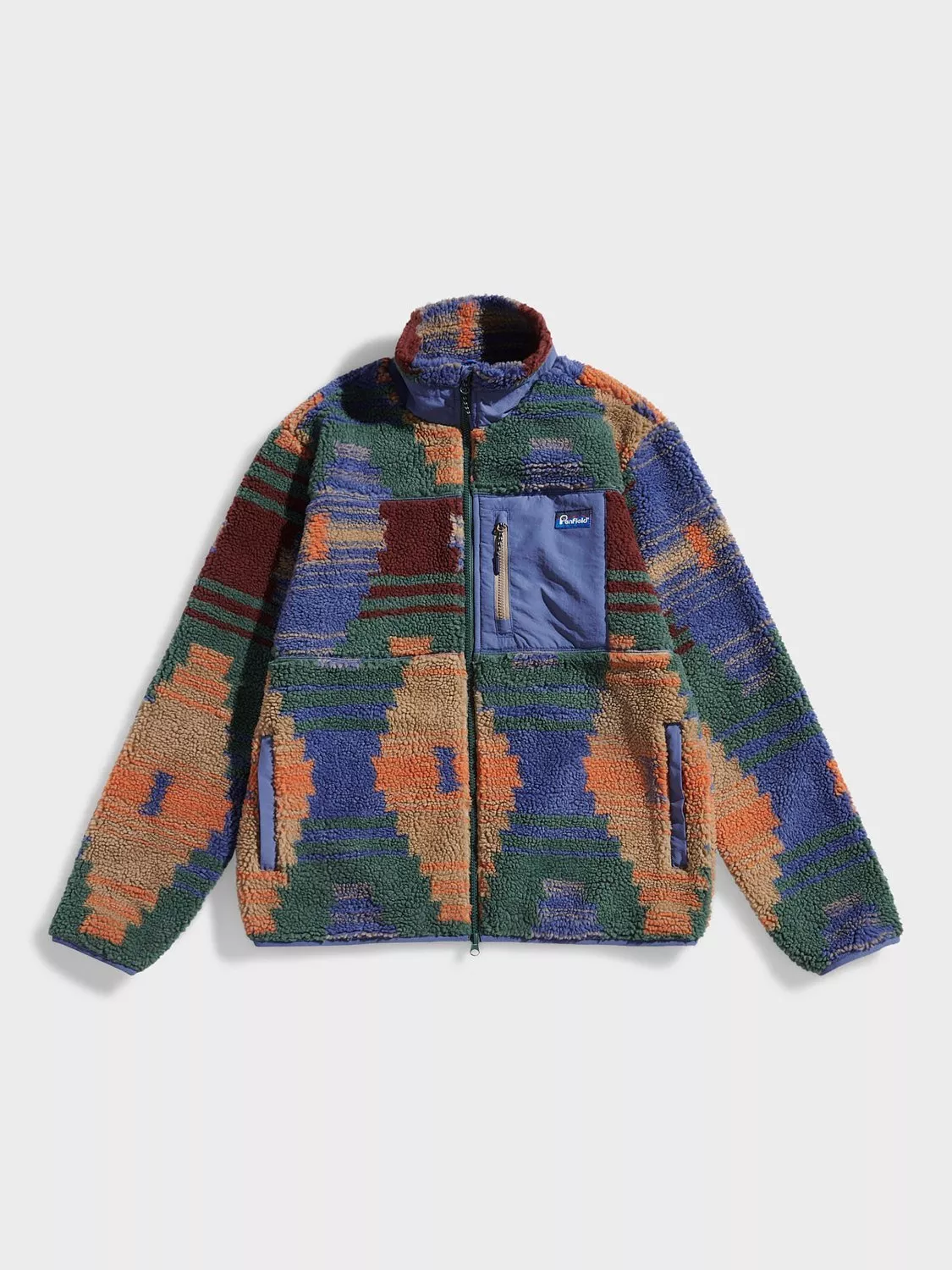 This fleece jacket from Penfield combines heritage design with practical outdoor performance, featuring a contemporary geometric print inspired by traditional textiles. Constructed from premium borg fleece with hydrophobic fibres, it offers reliable warmth even in wet conditions. A breathable mesh lining improves comfort, while the chest and side zip pockets keep essentials close to hand. Finished with elasticated binding and a woven Penfield badge, this layer is ideal for styling under a waterproof shell or over base layers on crisp days.