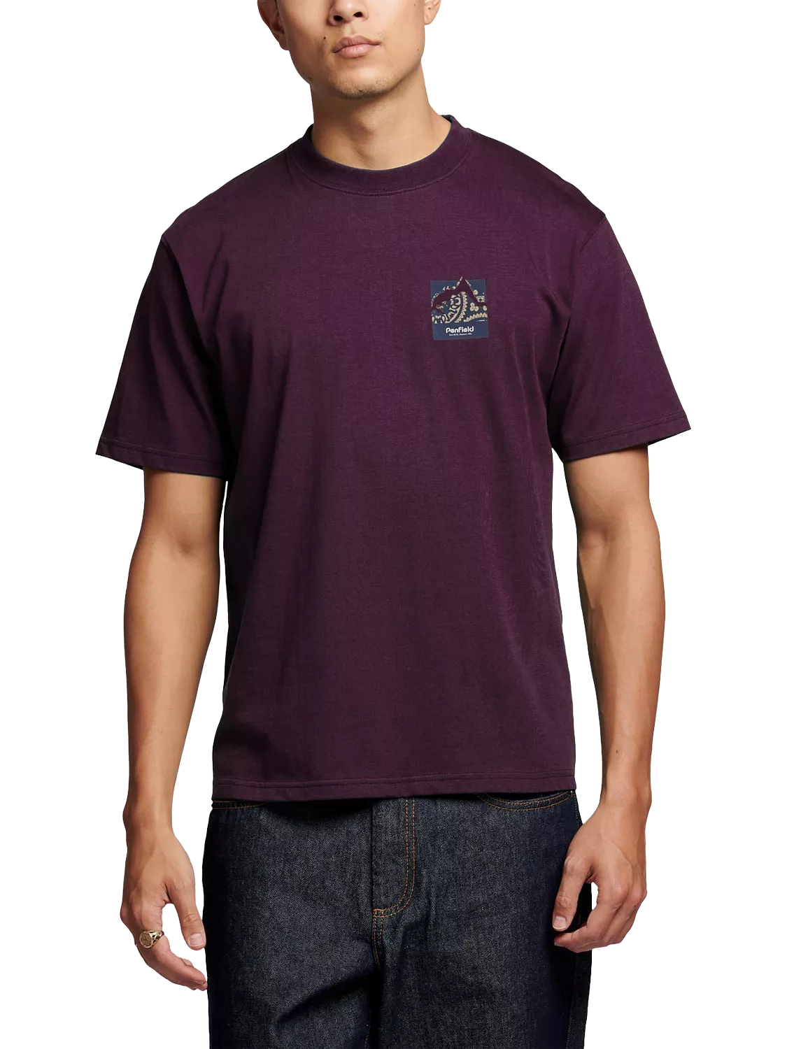 Crafted from 220gsm pure cotton single jersey, it's breathable, soft, and built for comfort. The relaxed fit, rib collar, and enzyme wash enhance its refined finish. Featuring a mountain logo on the chest and a larger graphic on the back, this tee reflects Penfield's adventurous spirit. A woven logo tab at the hem adds authenticity.