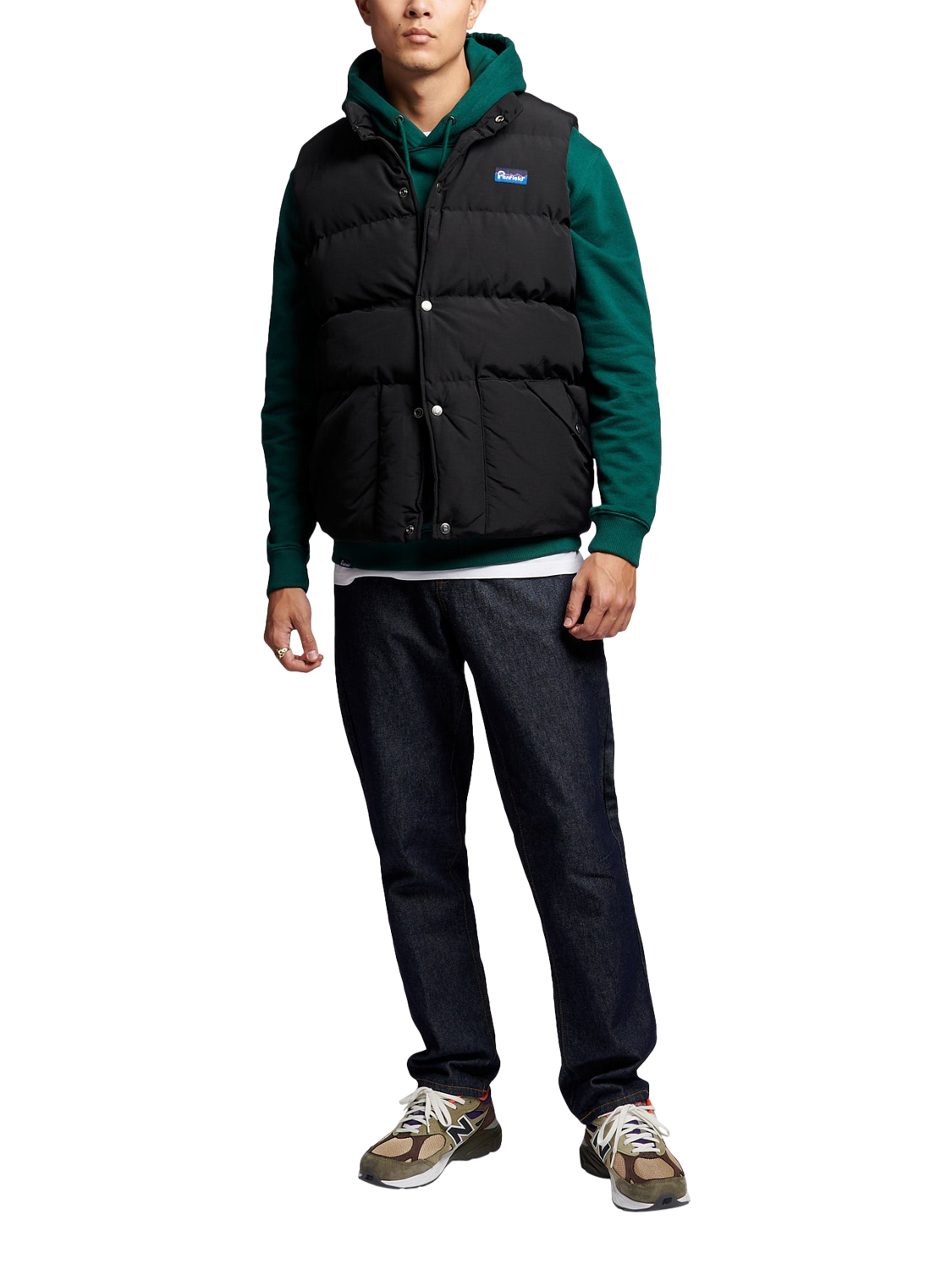 A return to the classics, the Outback Vest is an iconic piece from Penfield's archives, known for its durability and versatility. Updated for modern needs, it features a lofty heavyweight fill in tightly woven 60/40 cotton-nylon fabric. The durable water-resistant coating ensures rain and wind protection, ideal for New England's changing weather. The vest has a high collar, patch pockets, and a woven badge at the chest. Perfect for layering, it pairs well over a hoodie for both city and rustic settings. For life in the open.