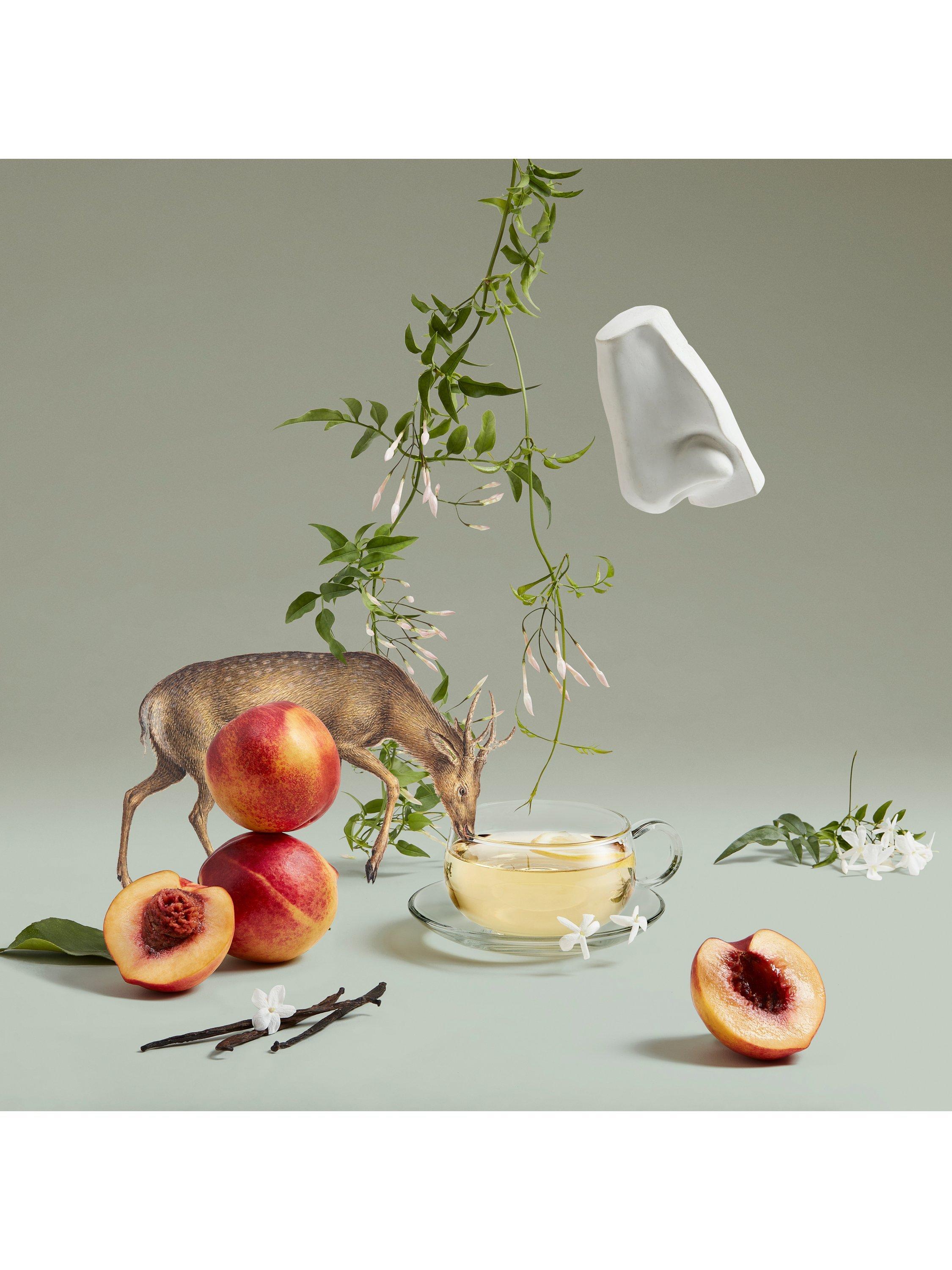 The goddess of the hunt arches her bow, and the forest quivers in anticipation. Lush nectarine, jasmine and violet swim above caramel and creamy vanilla. An Eau de Parfum sung like a hymn on the skin.