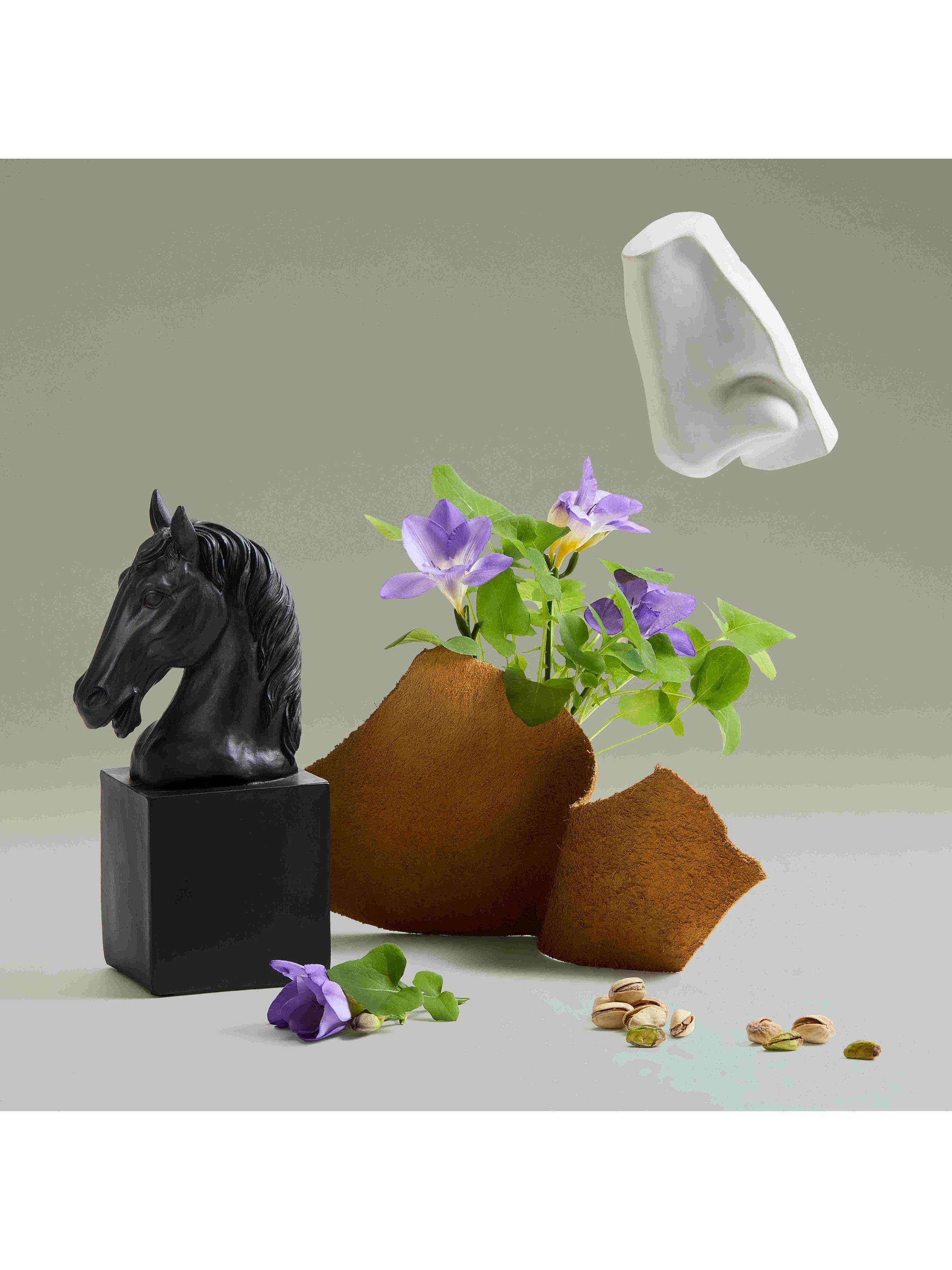 A fortuitous encounter of spice and leather thrives under Finley's touch. Violet leaf blooms next to cardamom in oh-so-capable hands. Pistachio prospers with passion. A stable scent for a wild horse.