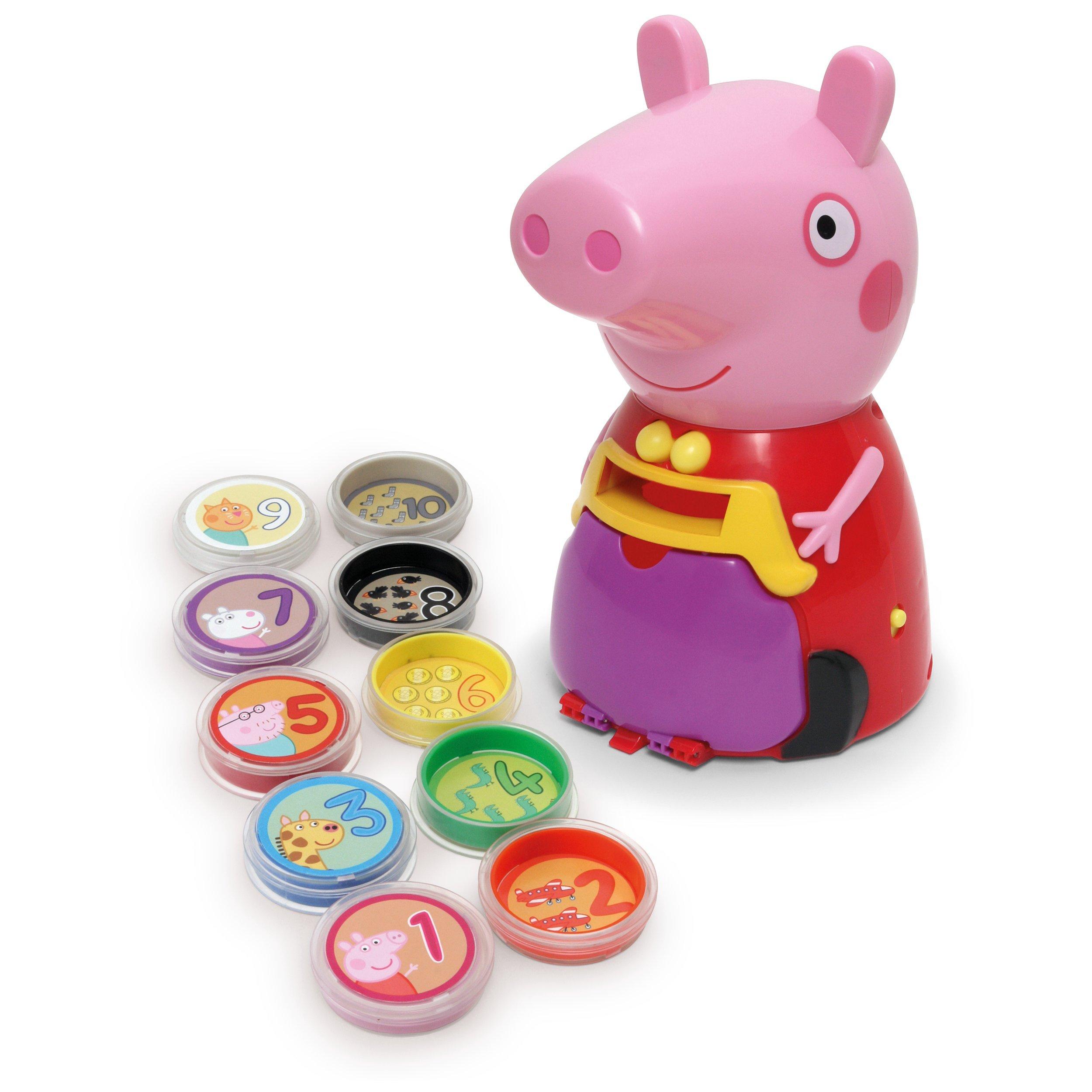 Peppa recognises which coins have been inserted and responds accordingly. With 8 different activities and 10 colourful coins, you can sing along with Peppa as you insert the coins in her purse.