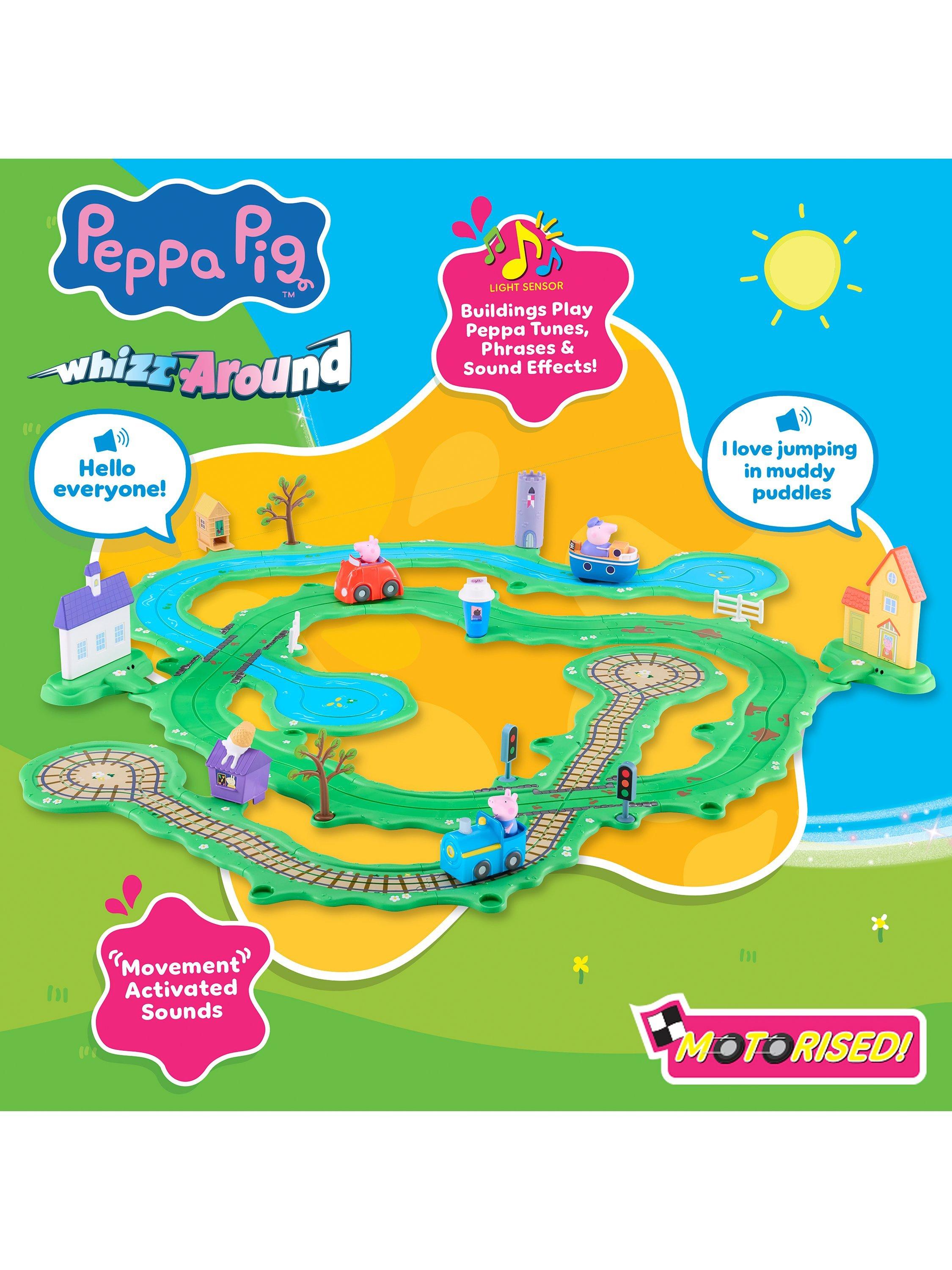 Peppa Pig Whizz-Around is a beautifully detailed and colourful range of track and vehicle based toys, bringing the world of Peppa Pig to life in a brand new way!