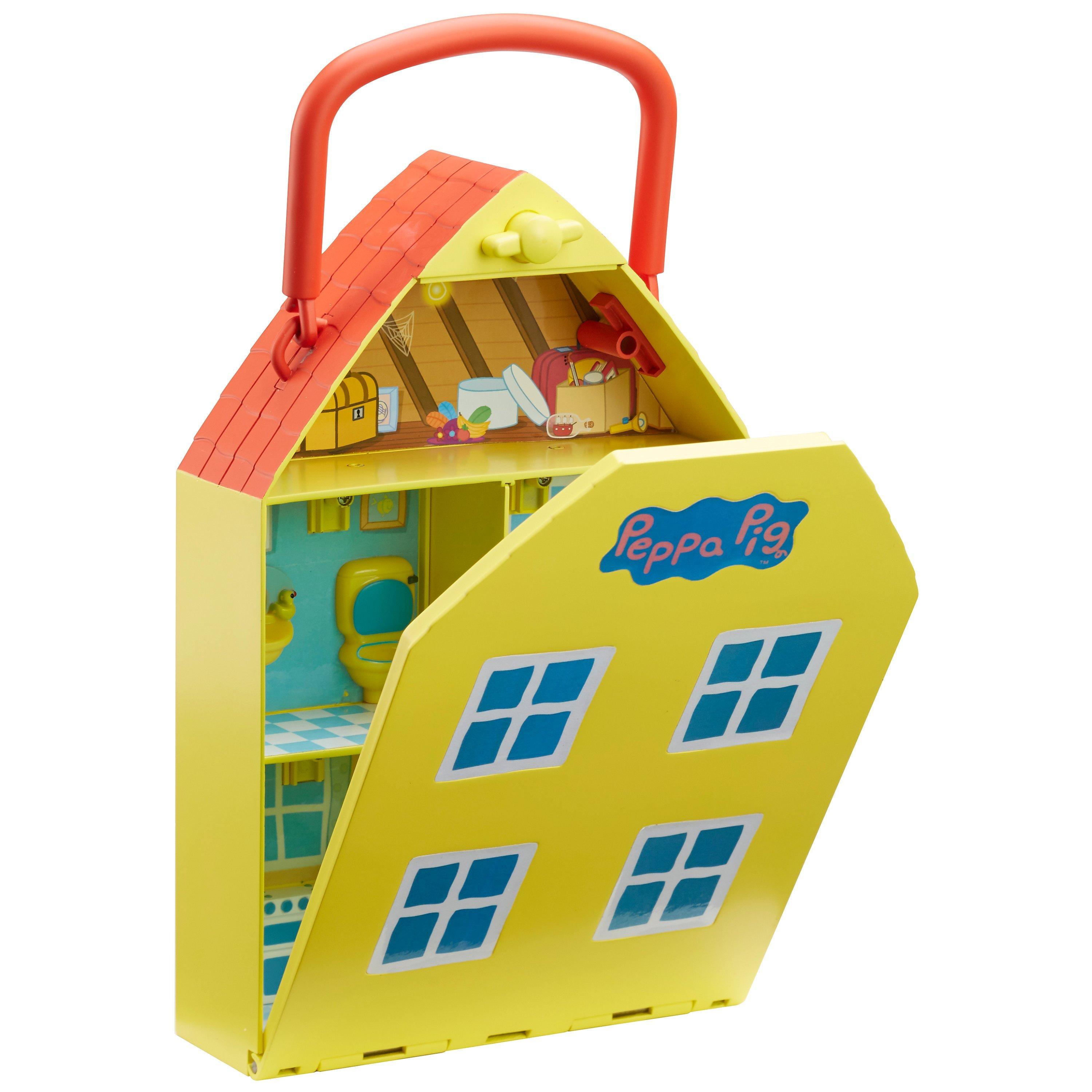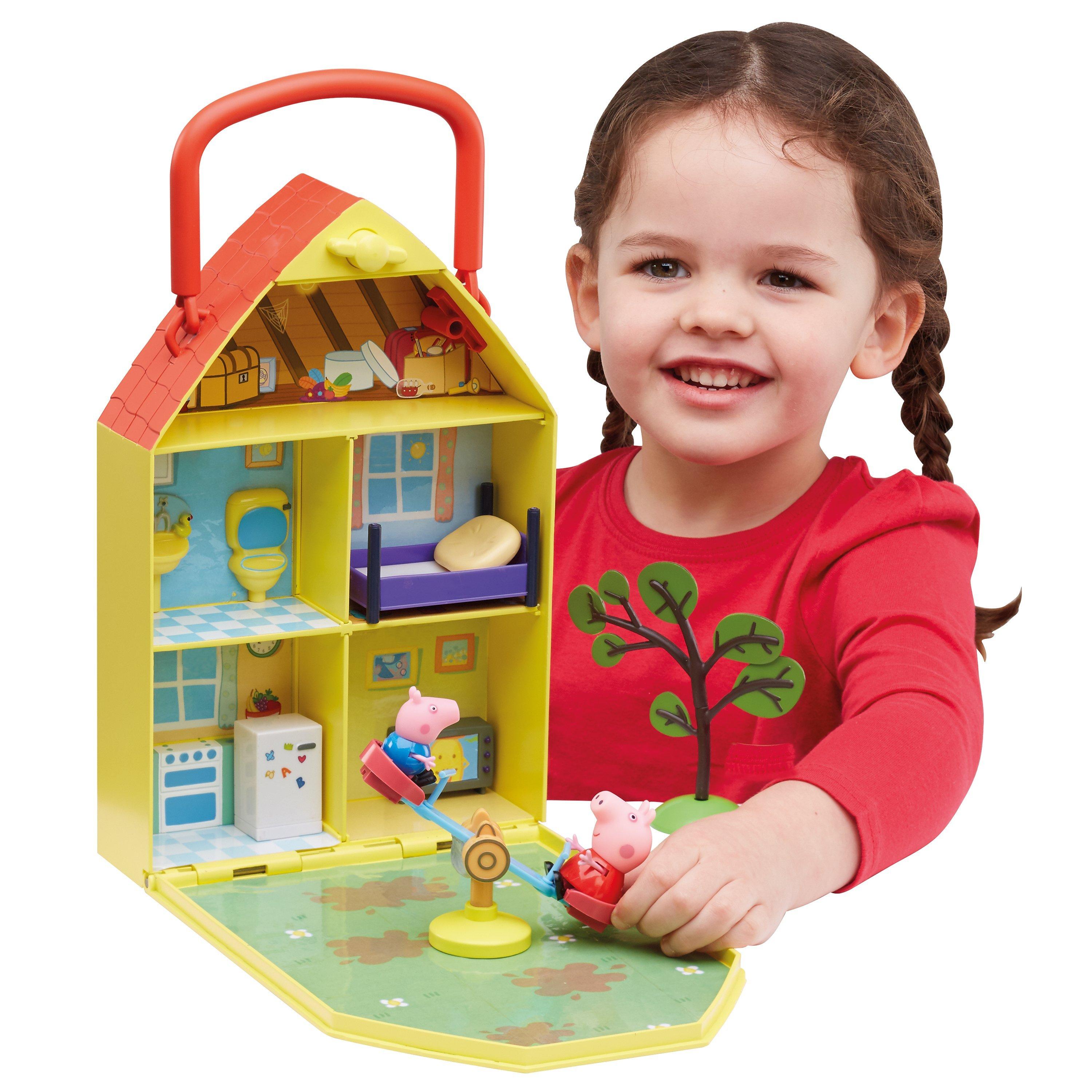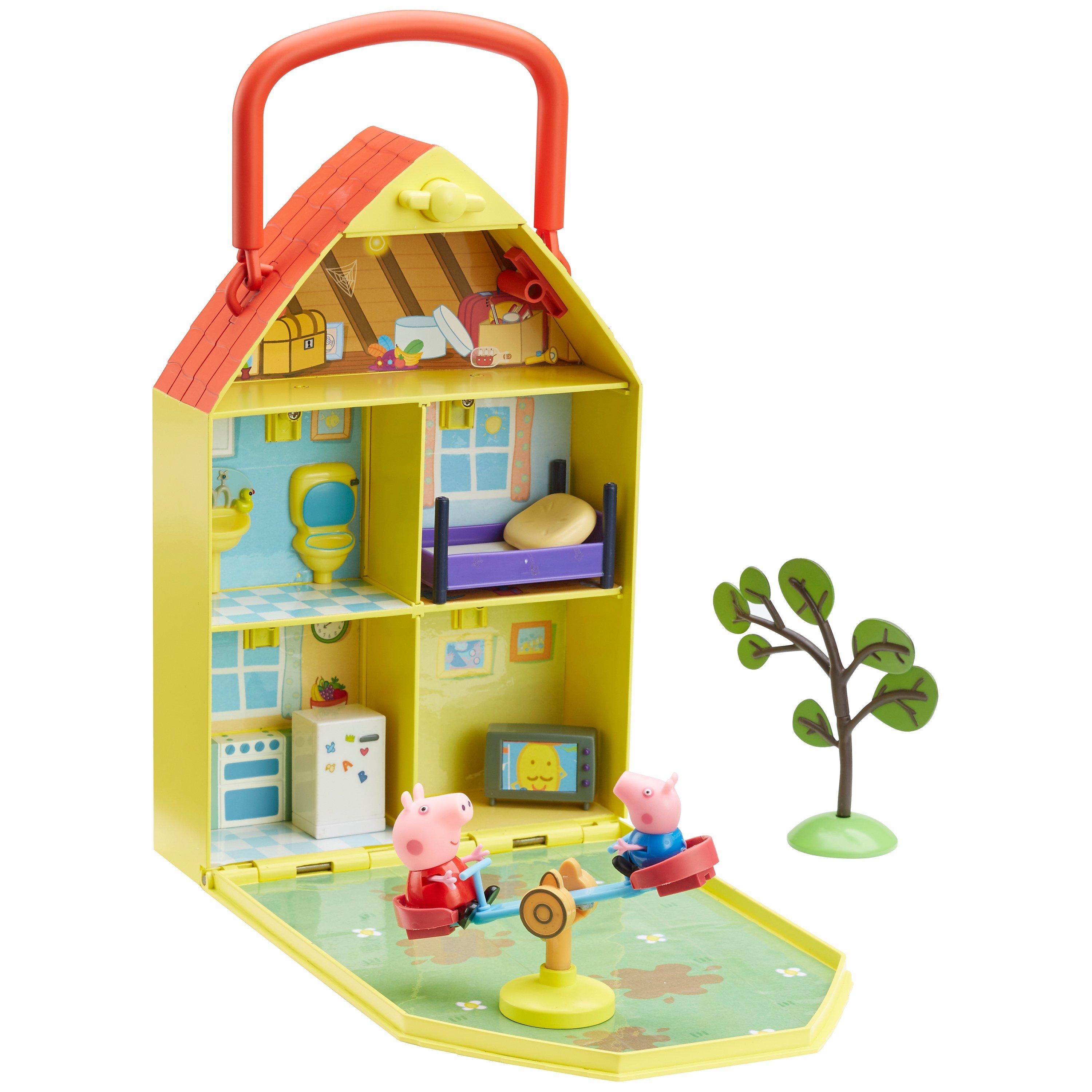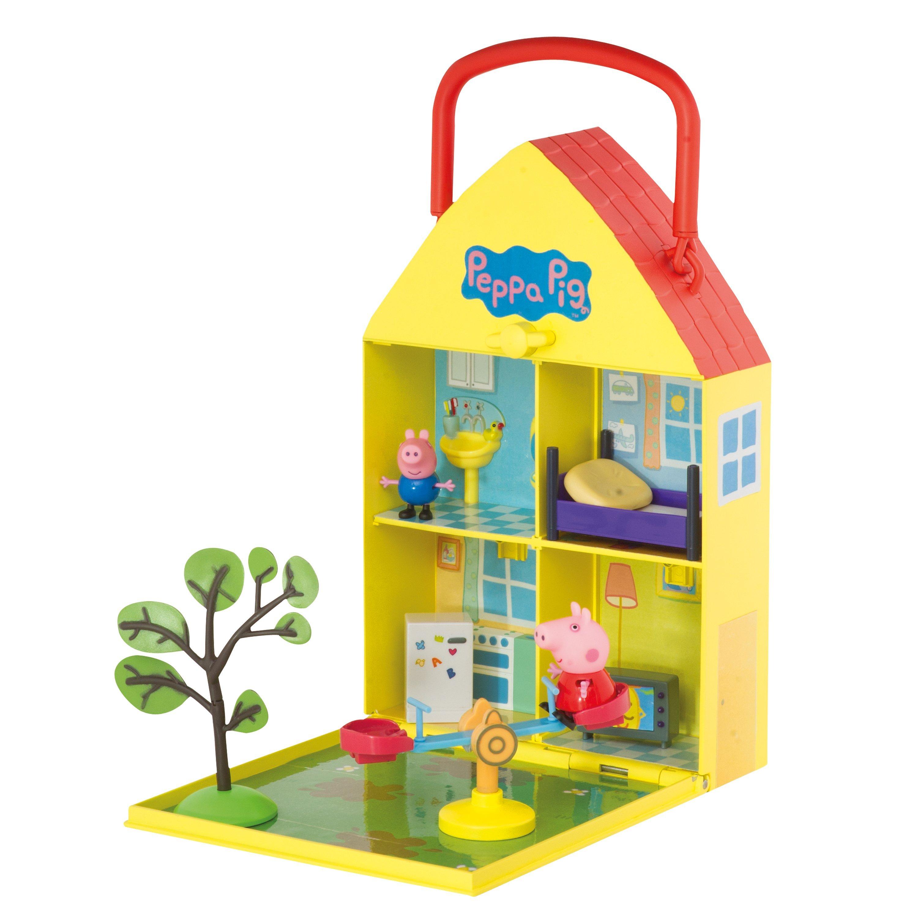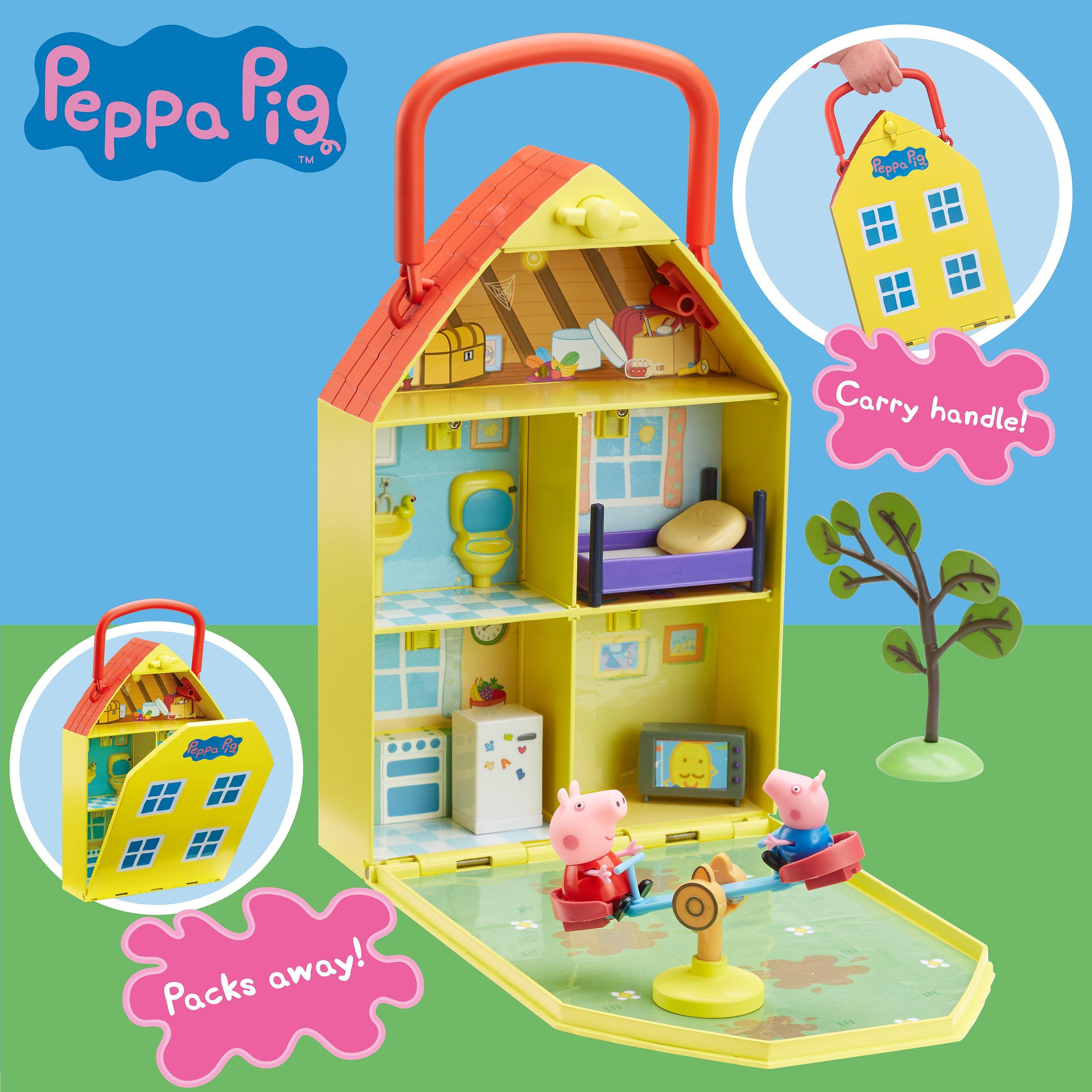 This set includes articulated Peppa and George figures and is easy to store and transport with the carry handle.
