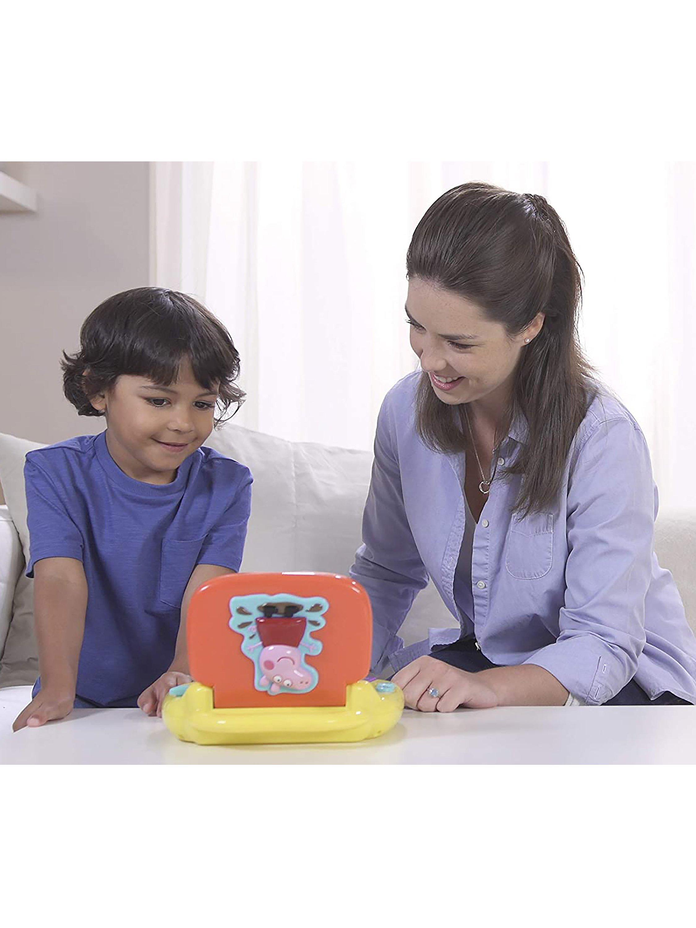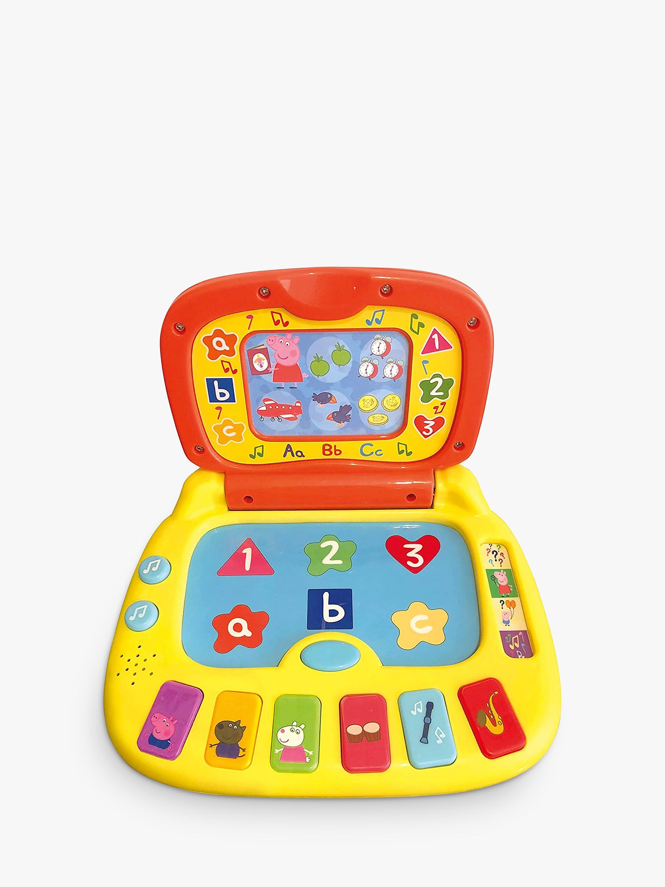 Streamlined and rounded, this chunky early learning classic laptop shaped toy has a carry handle and lift up lid.