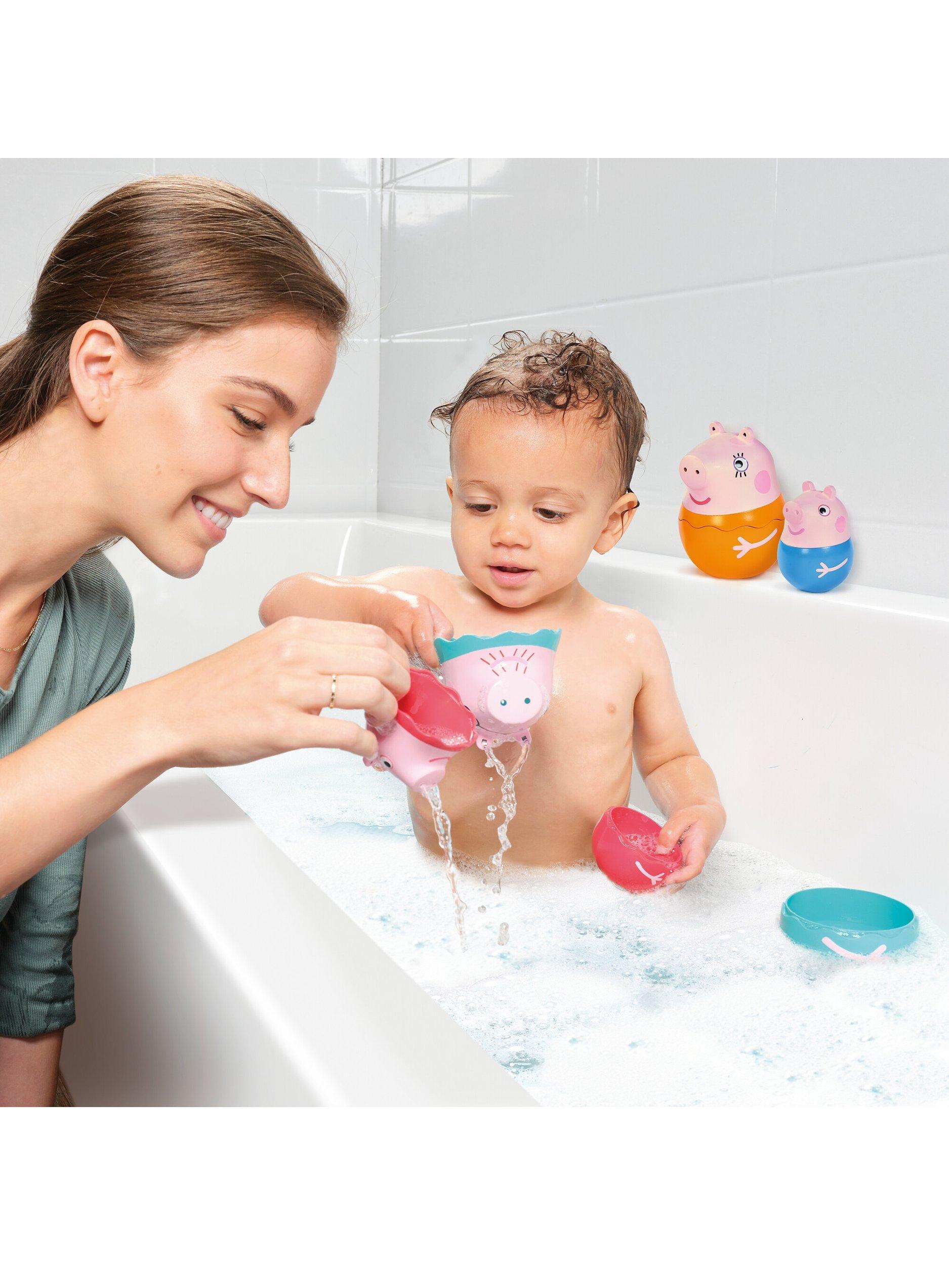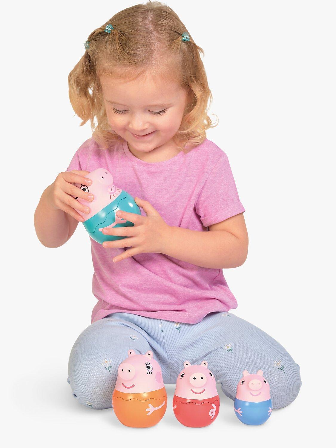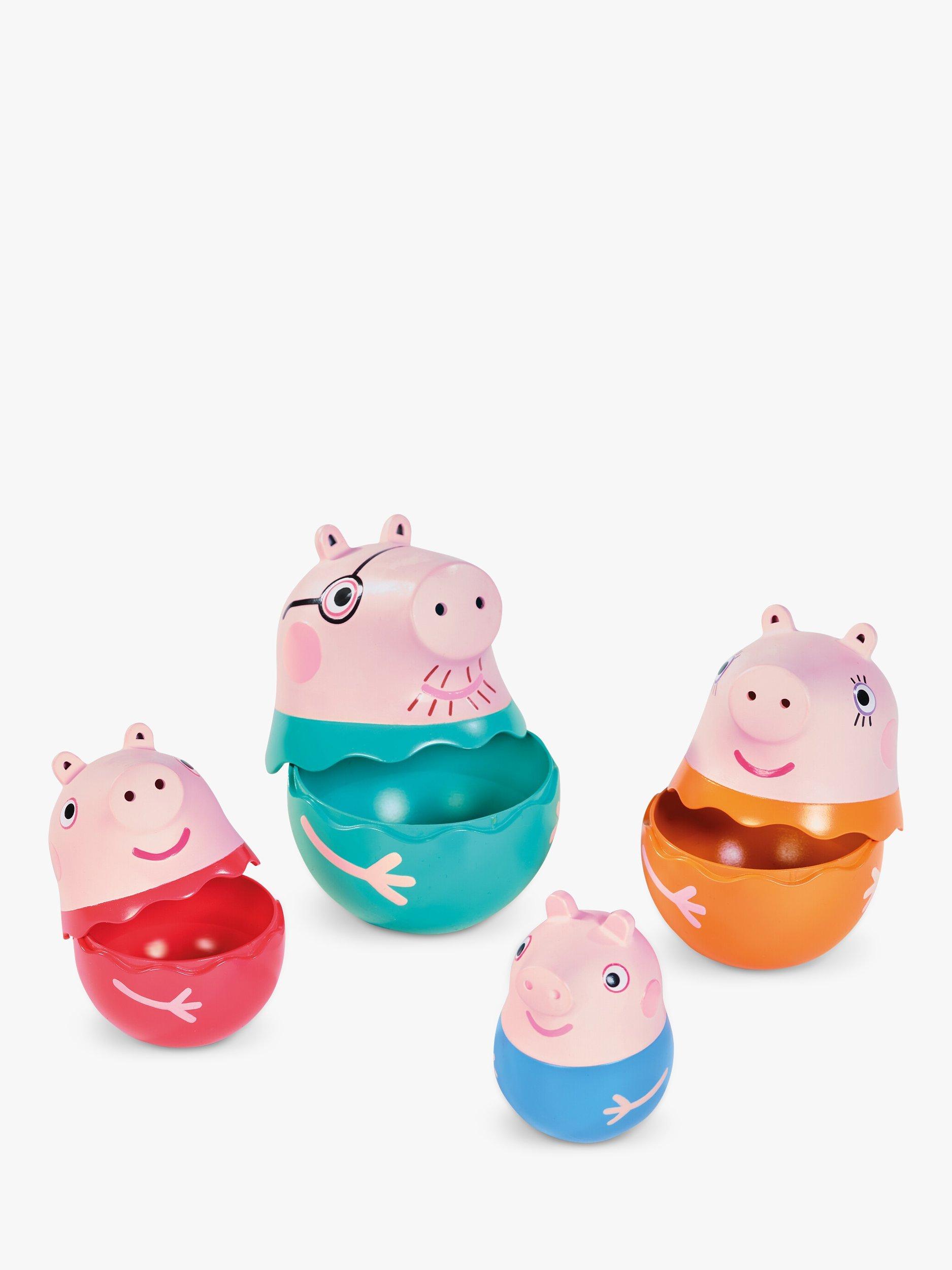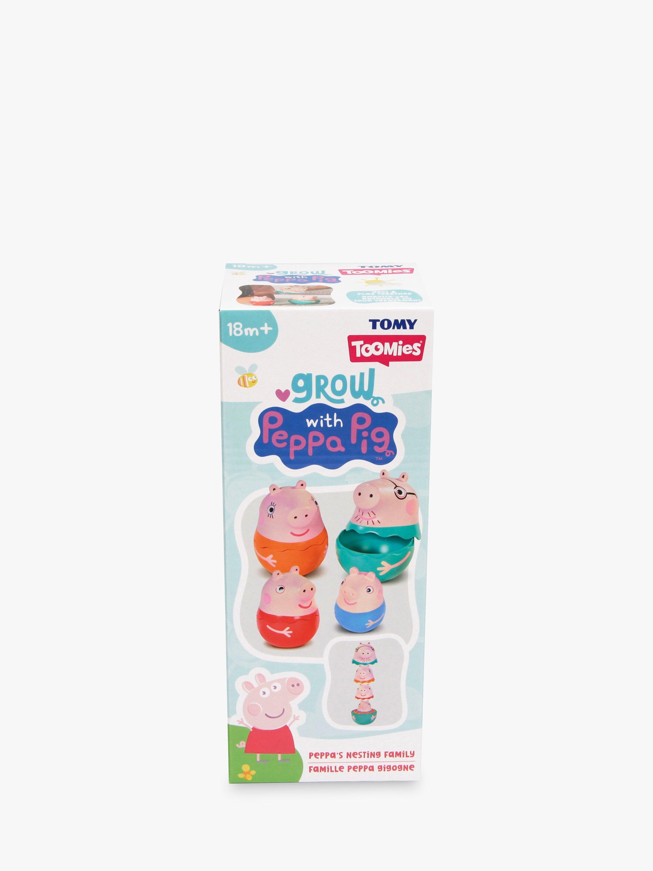 Peppa's Nesting Family from Toomies is several toys in one! That s because all of Peppa Pig's family is hiding inside. Ideal for little hands, they'll have hours of fun working out how to nest the colourful bases neatly into one, or nesting and sorting the pieces by matching sizes and colours. Peppa's nesting family can even be used in the bath! Use the top and bottom of each character as fun bath-time water pourers. Or take them to the beach and fill them with sand.