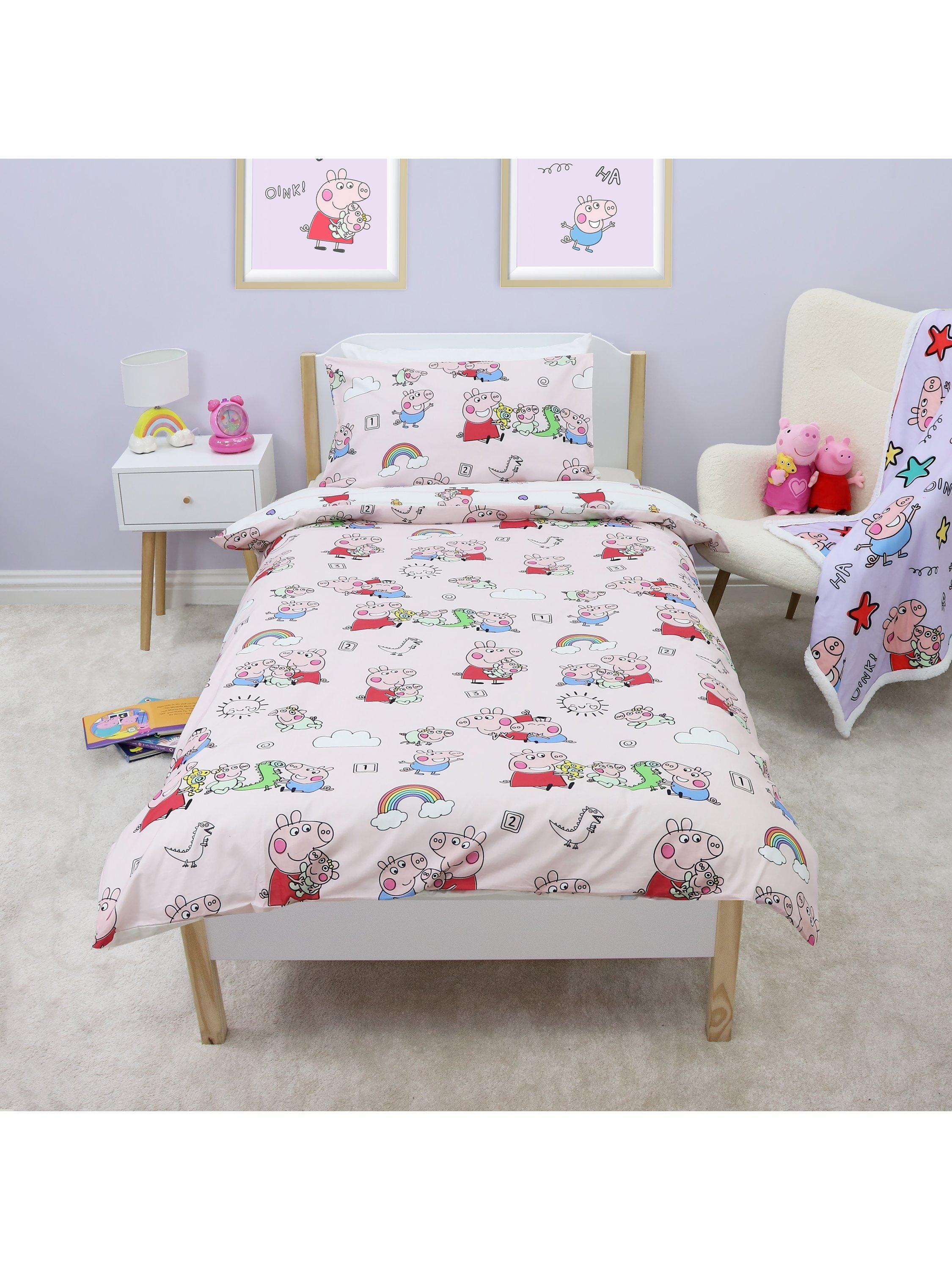 This officially licensed Peppa Pig bedding set is designed for single beds and is reversible, so you can easily freshen up the look of your child’s bedroom. It's made from 100% cotton and has popper fasteners.