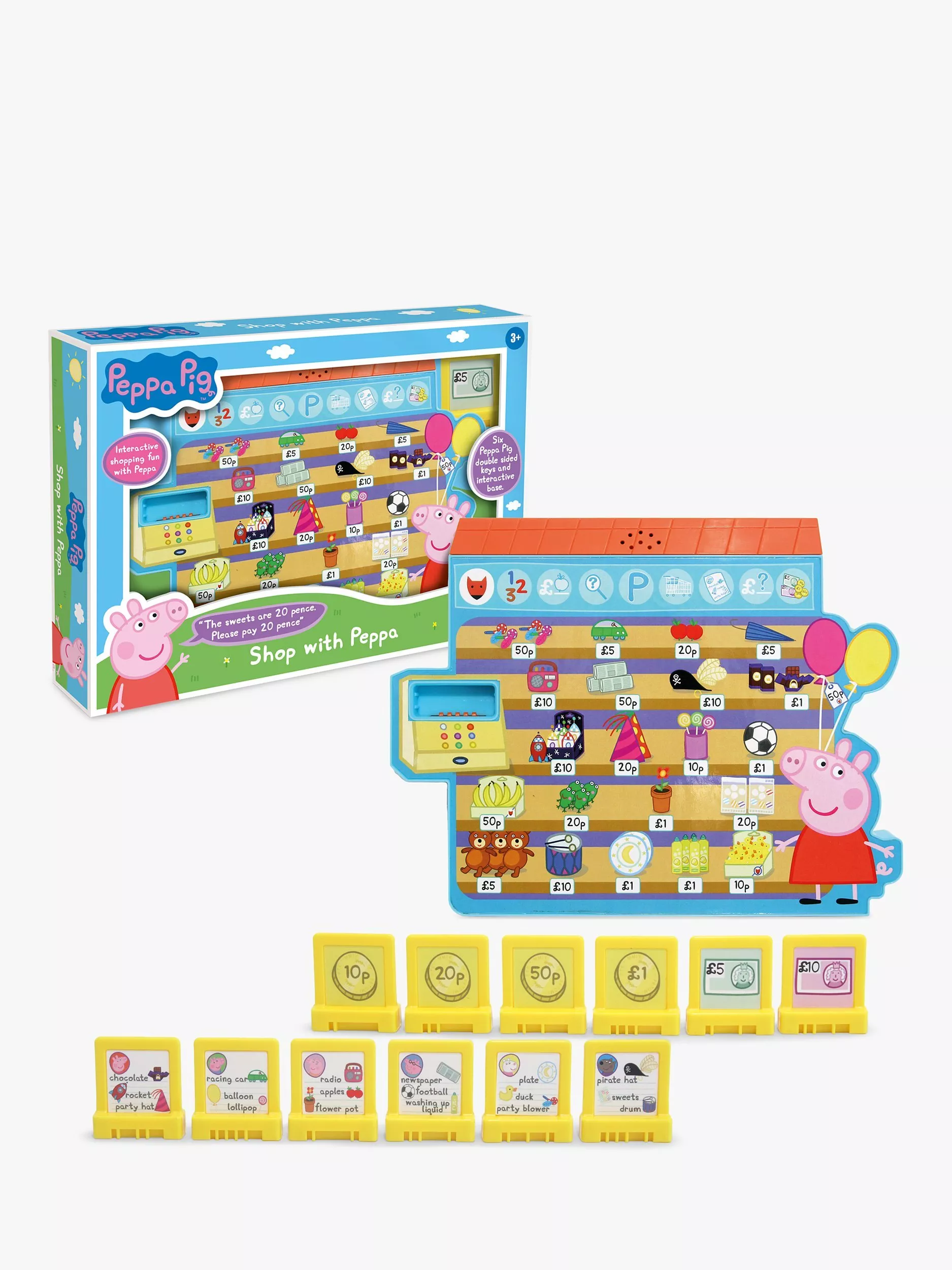 Learn and have fun with Peppa Pig as your child goes shopping with Peppa. Play and learn with the six Peppa Pig double-sided keys and interactive base.