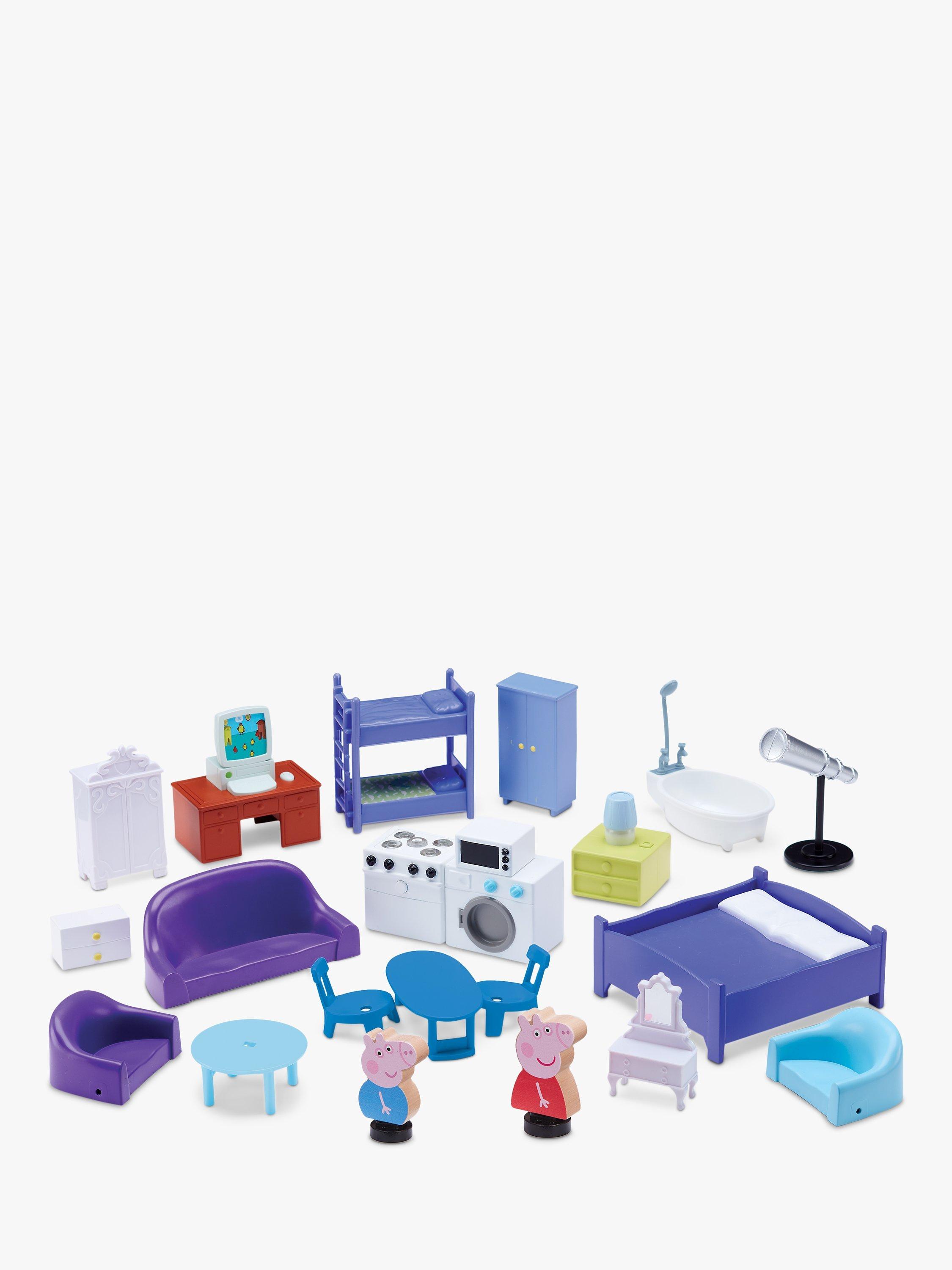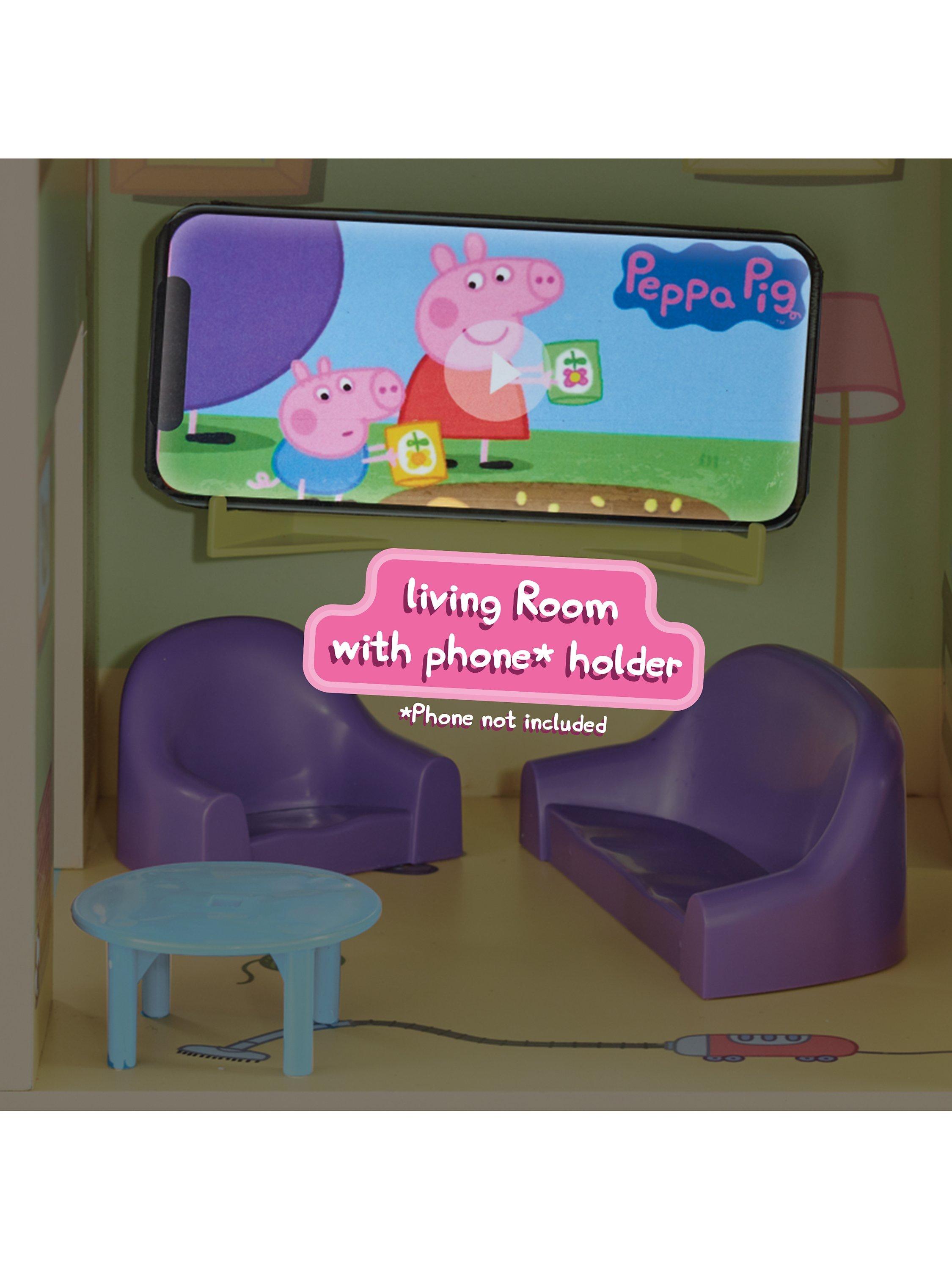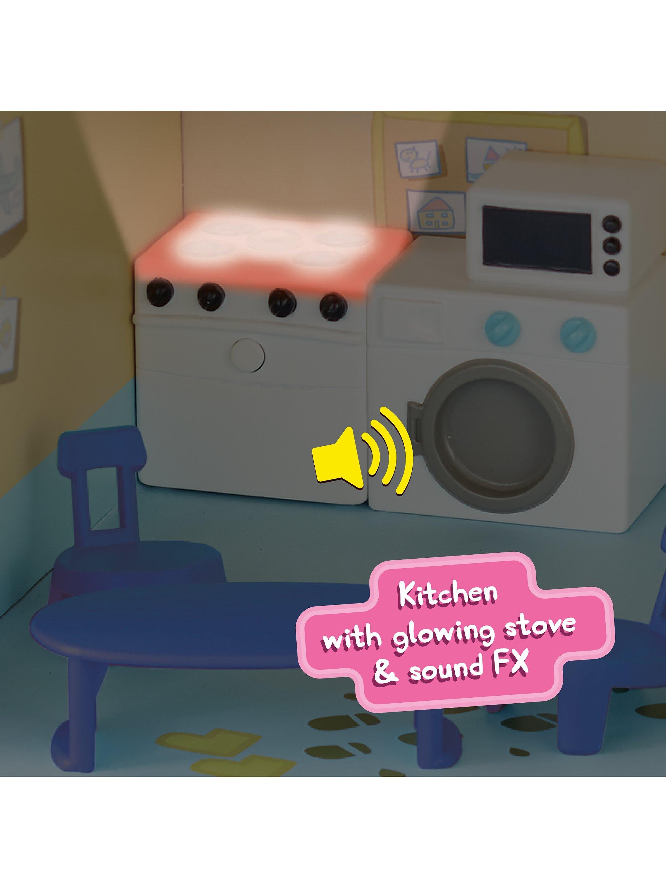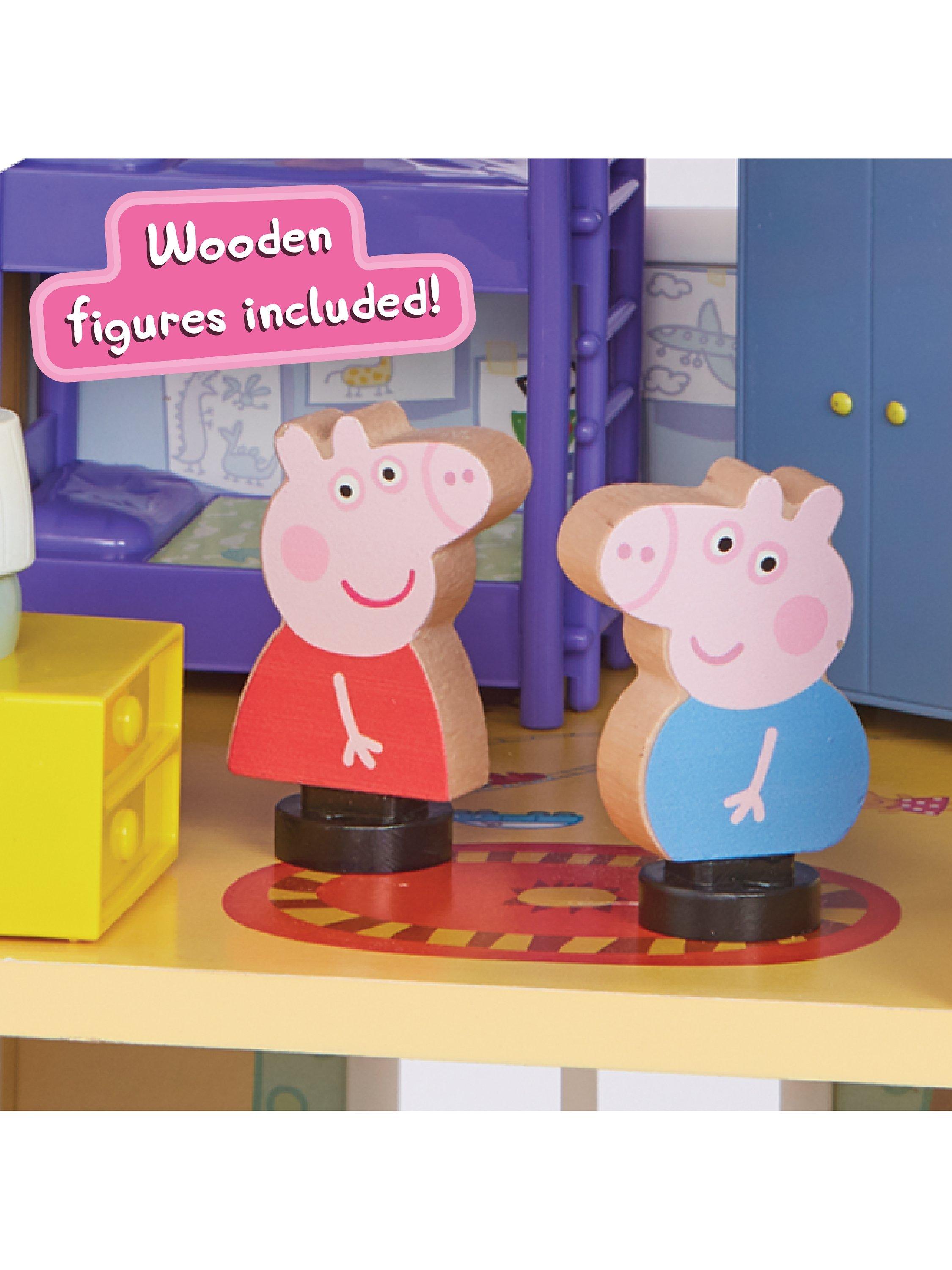 This wooden playhouse is ideal for all Peppa Pig fans who want to recreate popular scenes! The house comes with additional effects such as Mummy Pig's office with skylight, telescope and light up toy computer! House includes eight rooms.