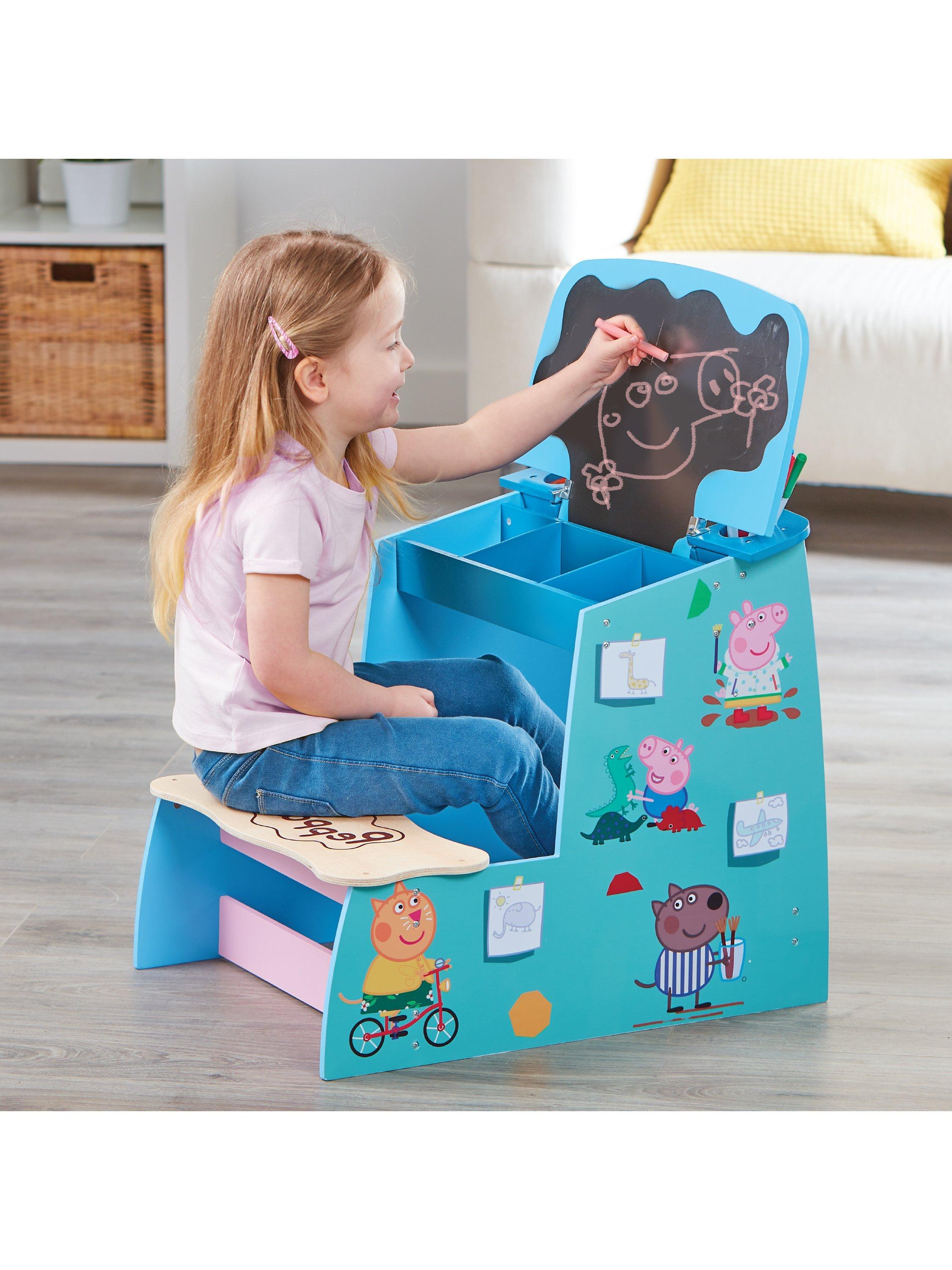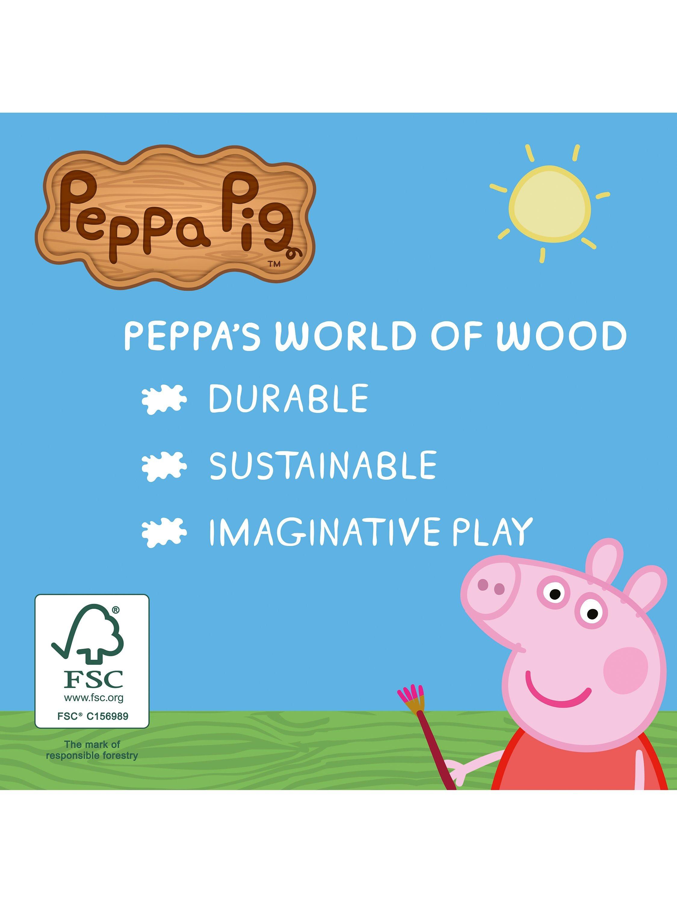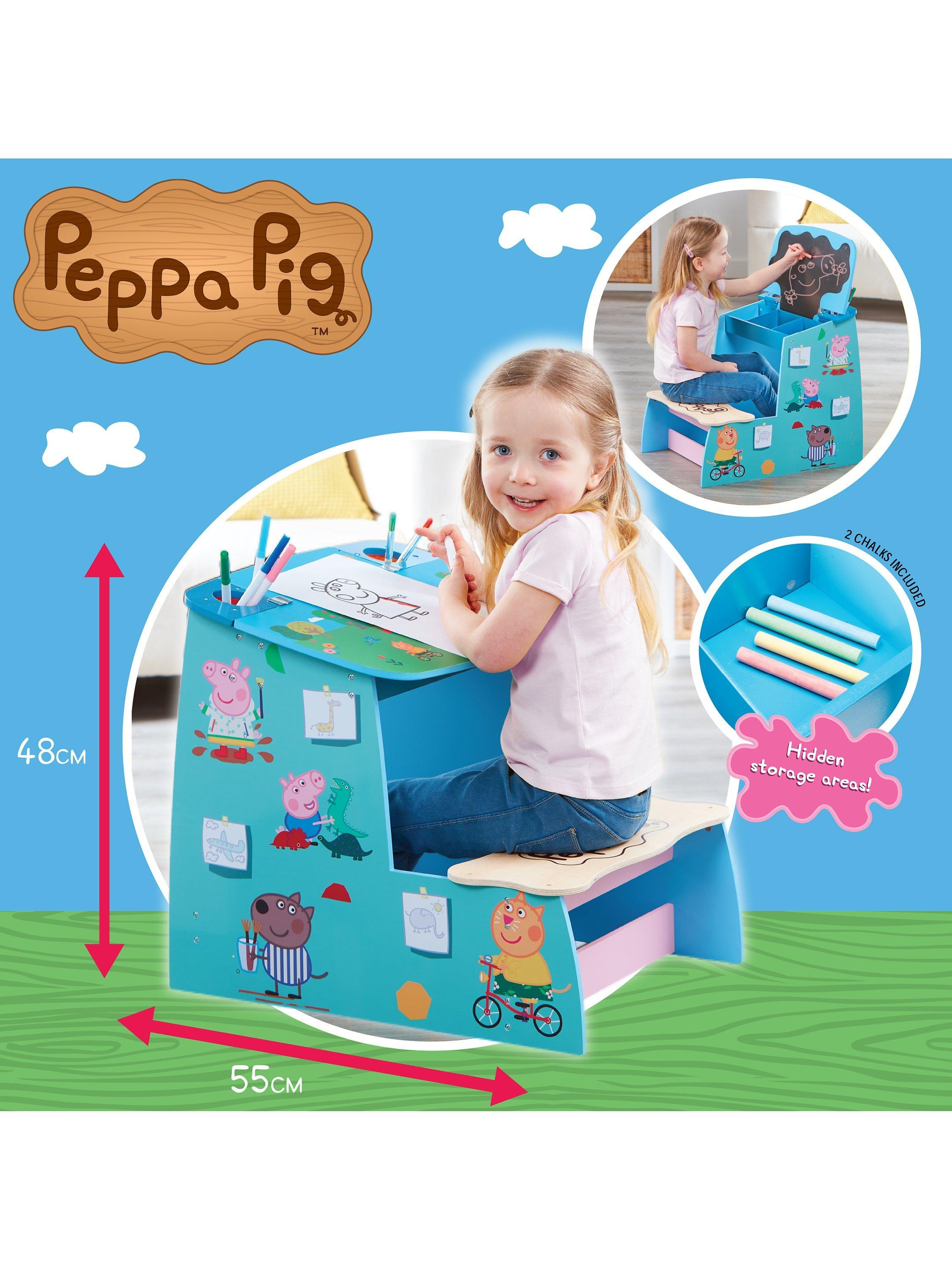 Little ones will love sitting at their own desk while they create their own masterpieces. This chunky wooden desk features bright colours and iconic Peppa Pig designs and characters! Use the desk to display your collection of Peppa Pig wooden toys when not in use!