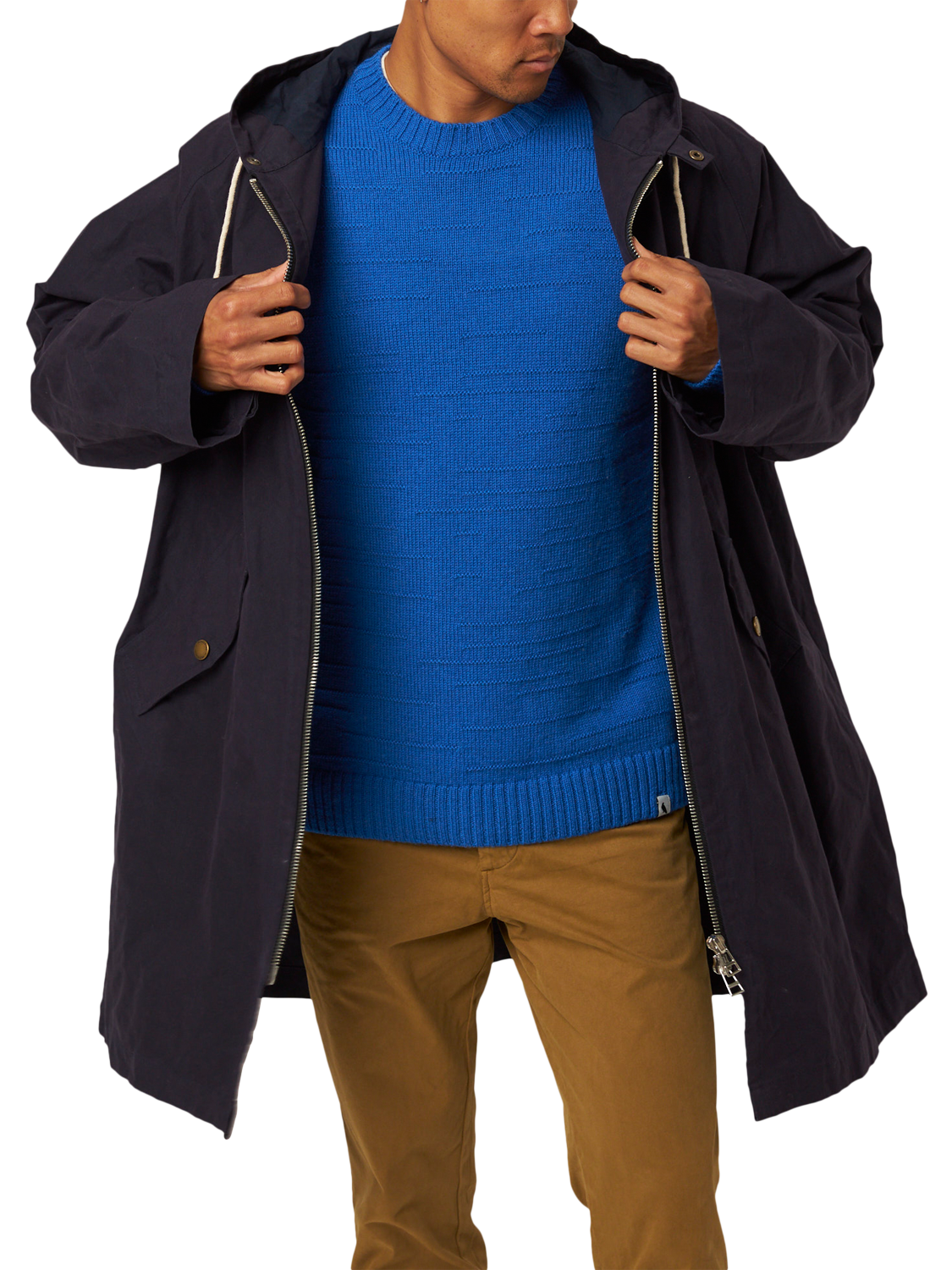 A practical cagoule designed for changeable weather. It also benefits from a water-resistant finish and natural breathability.