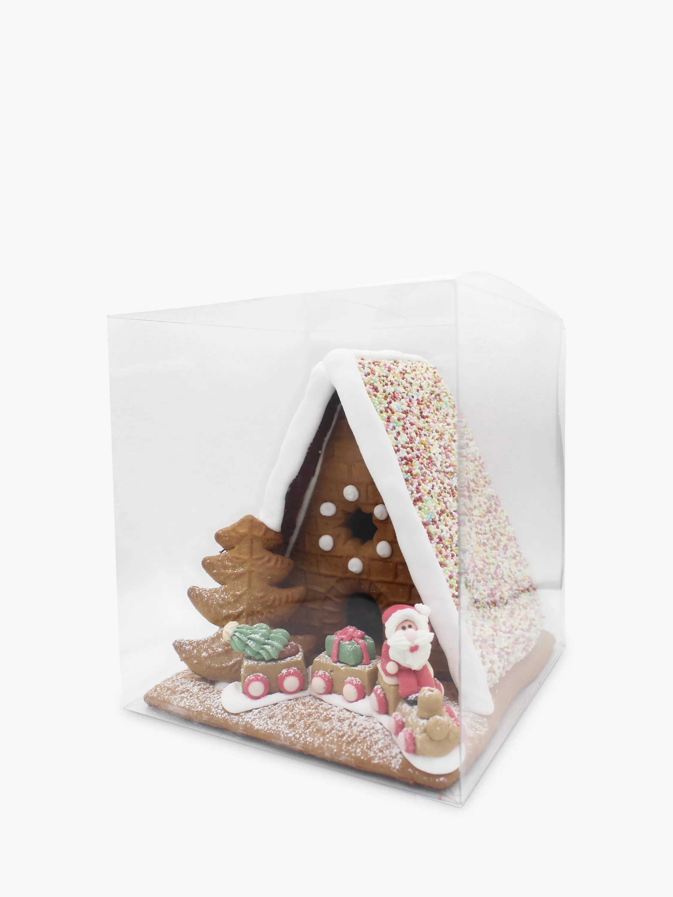The perfect seasonal centrepiece, this German storybook gingerbread house is snow capped with colourful hundreds and thousands. This house also comes with its own Santa Claus sugar figurine bringing presents and decorations on his train.