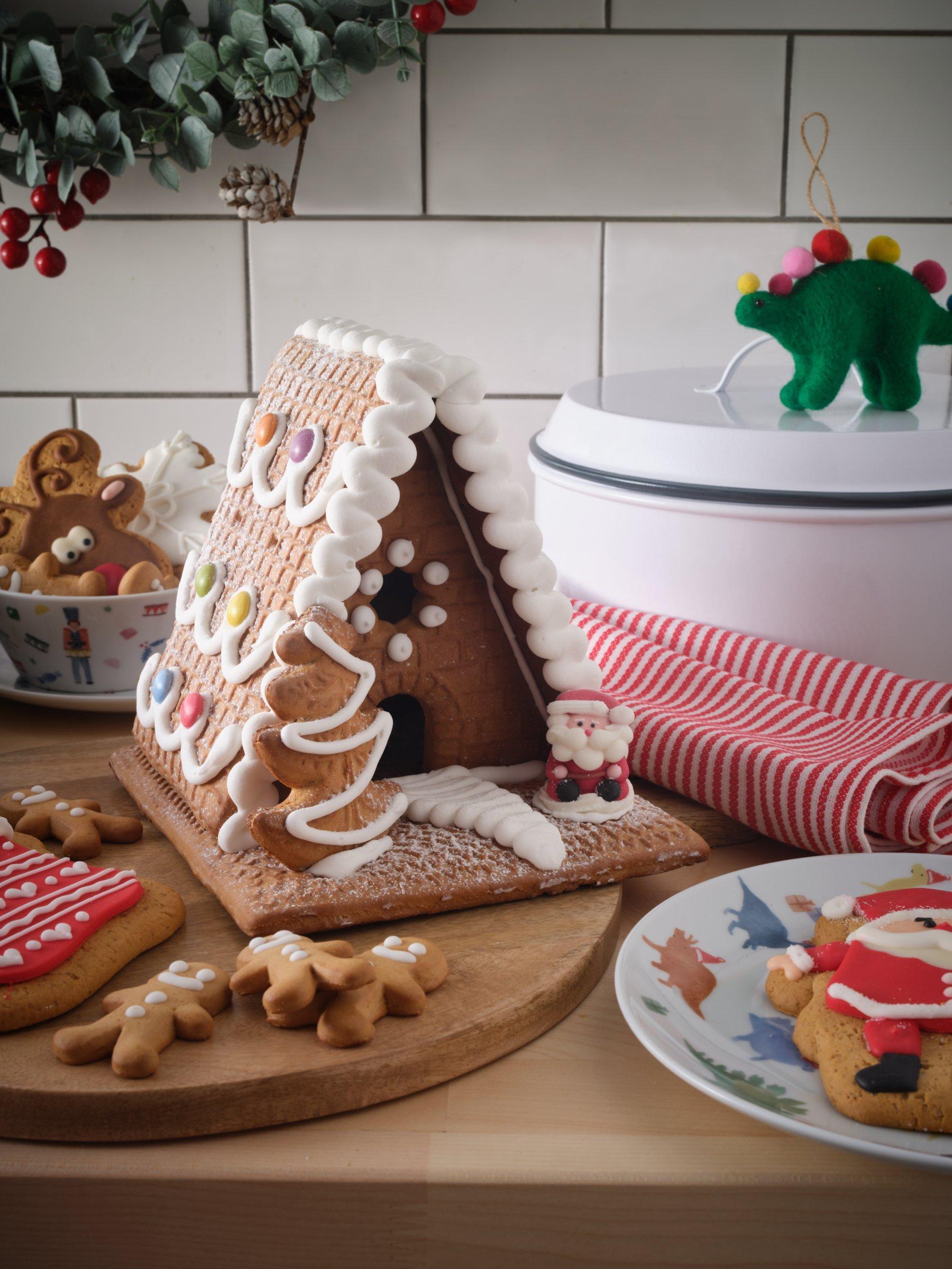 The perfect seasonal centrepiece, this German storybook gingerbread house is snow-capped, with colourful sugar-coated chocolates and comes with its own Santa Claus sugar figurine, bringing presents and decorations on his train.