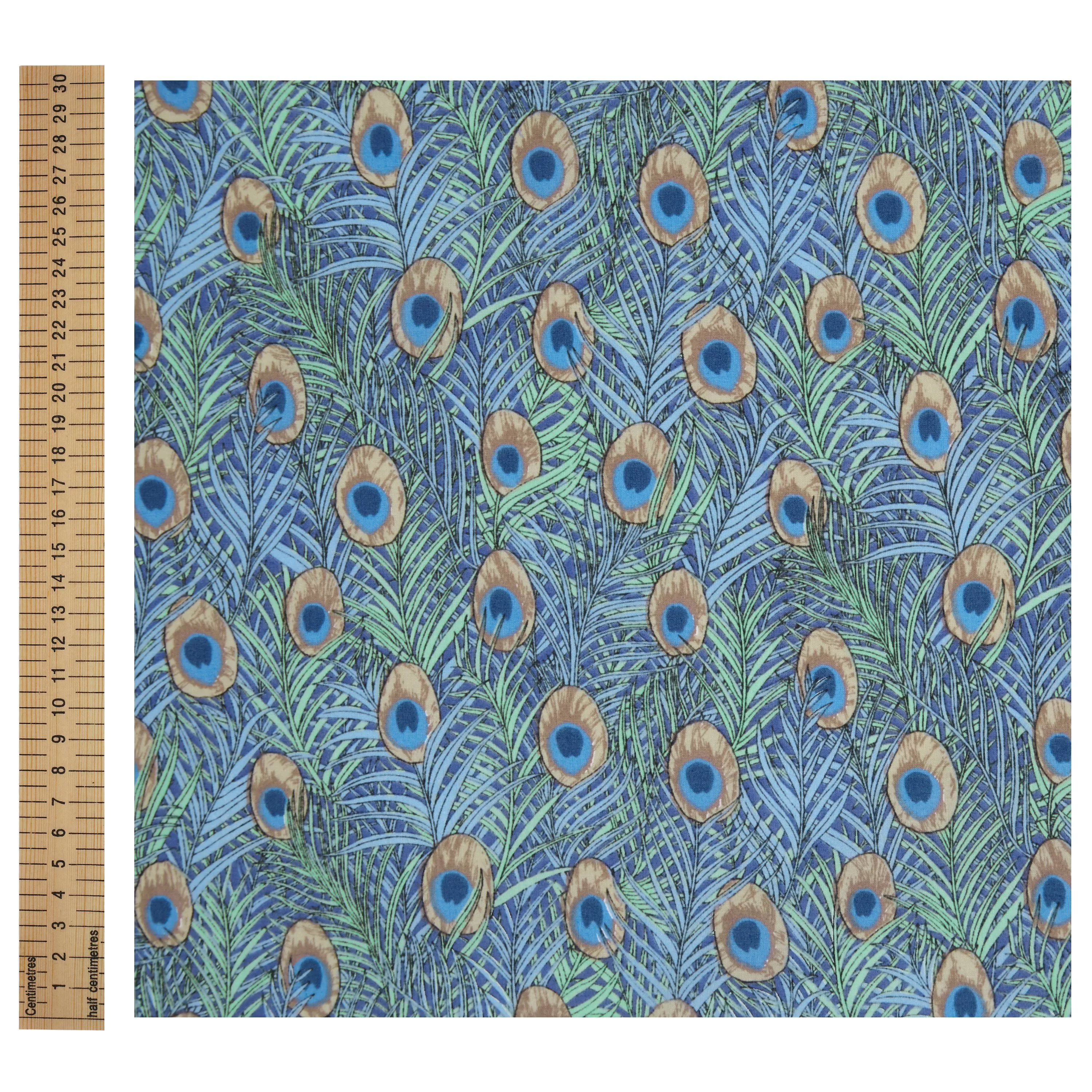 Constructed from pure cotton, this fabric is durable, easy-care, lightweight yet warm and more absorbent than other cottons. Finished with a lovely peacock print, this fabric is ideal for dressmaking and creating blouses, skirts and dresses. Please note, this fabric is not suitable for nightwear.