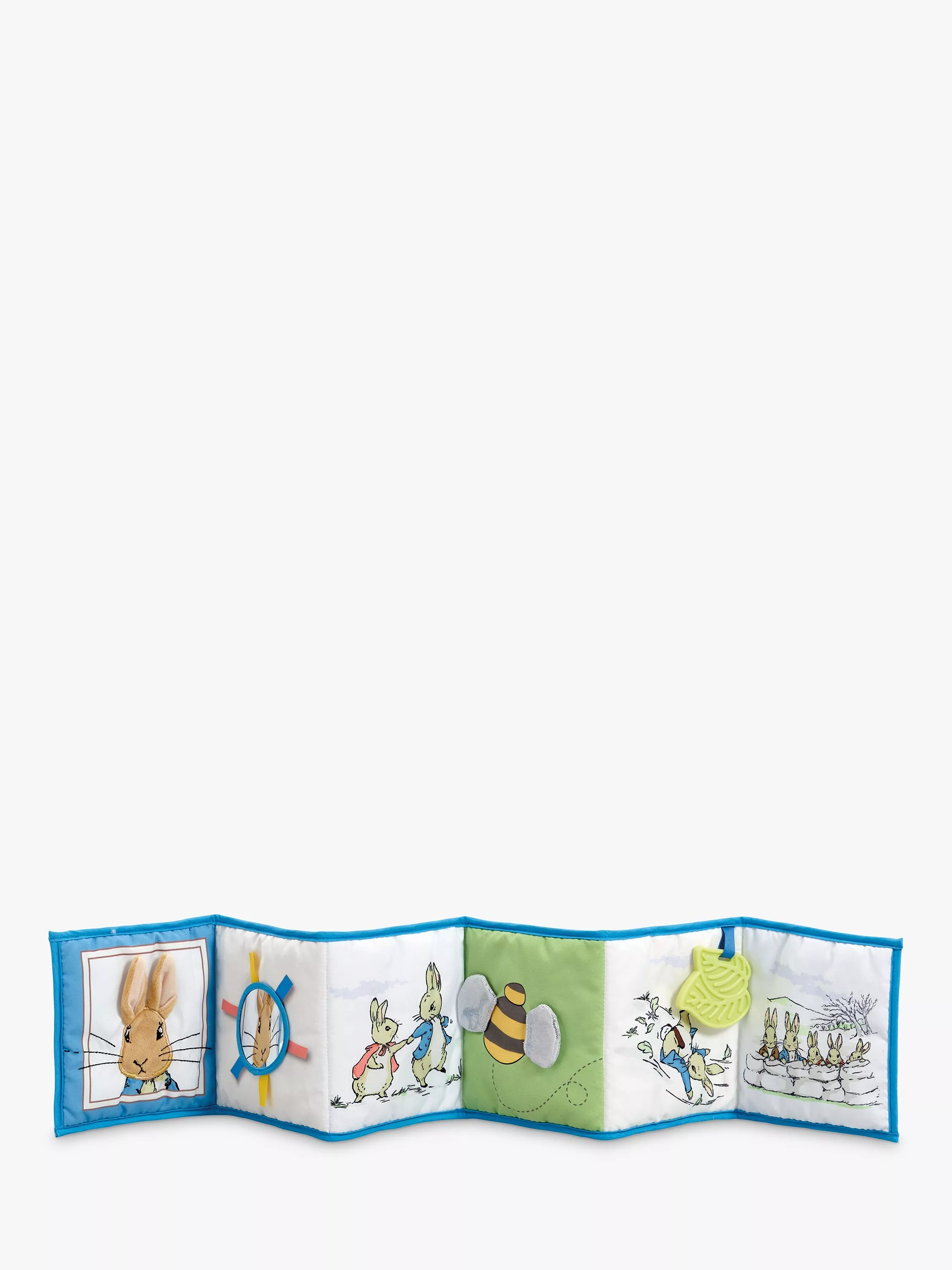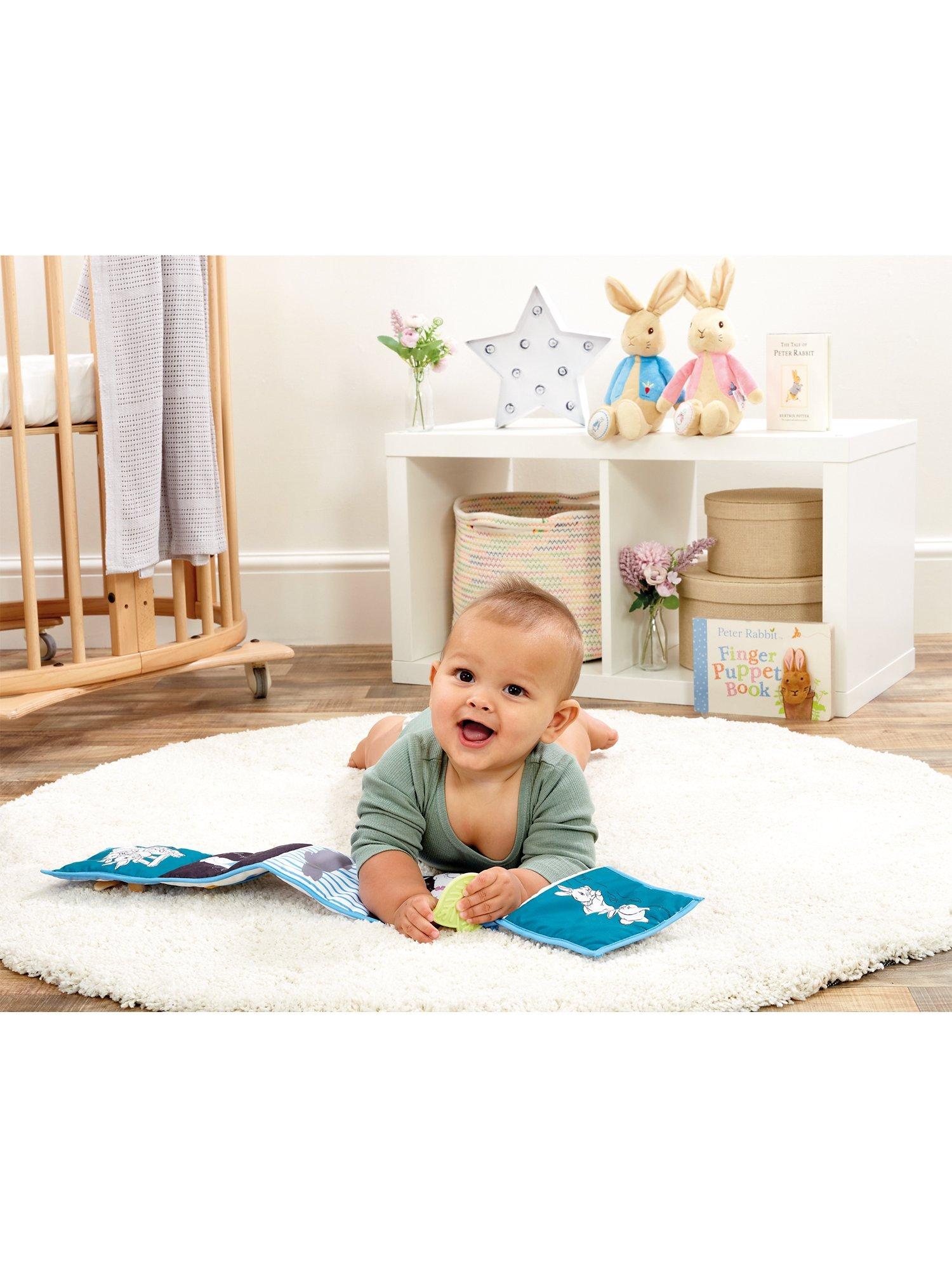 Time for play and discovery with Peter Rabbit! Classically styled on the much-loved character from the Tales of Beatrix Potter storybooks, this beautiful fabric Peter Rabbit Unfold Book is a wonderful developmental toy to help encourage and explore the bond between baby and parent through play.