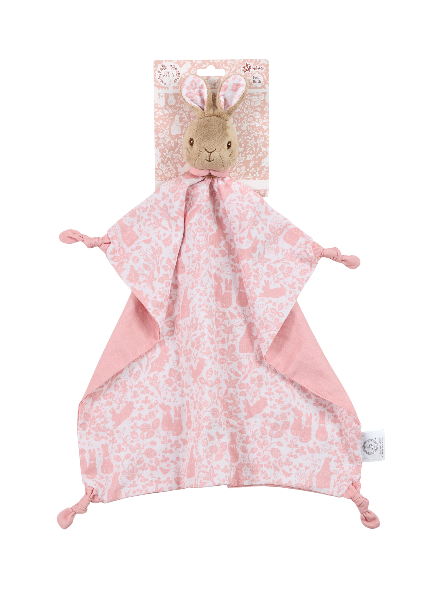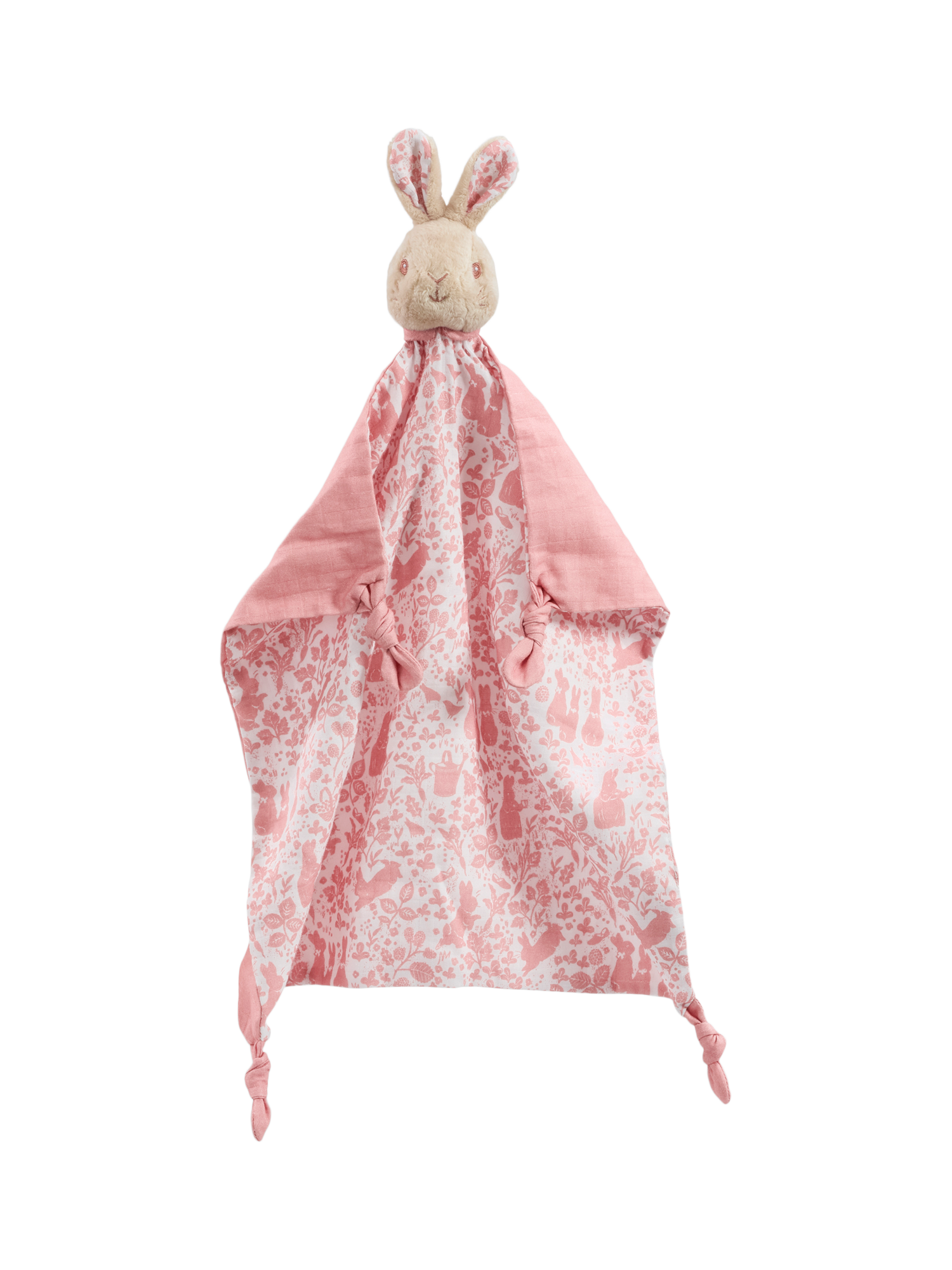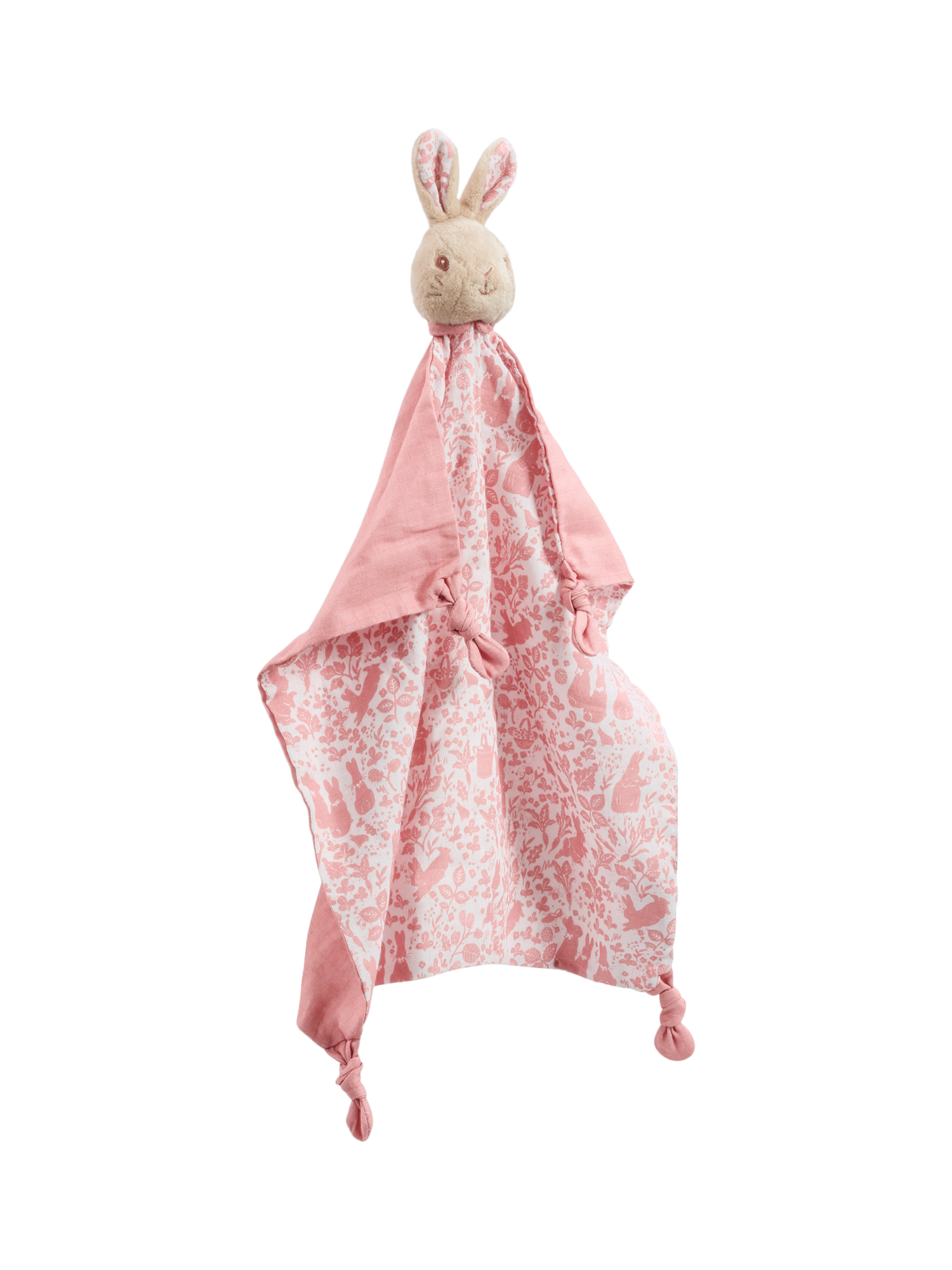 Crafted from 100% breathable cotton muslin, this ultra-soft comforter is designed for newborns and little ones to cuddle, soothe, and snuggle every day. Featuring a plush Flopsy Bunny character with a soft muslin body, it provides tactile comfort while introducing little ones to one of Beatrix Potter’s most playful and endearing characters.