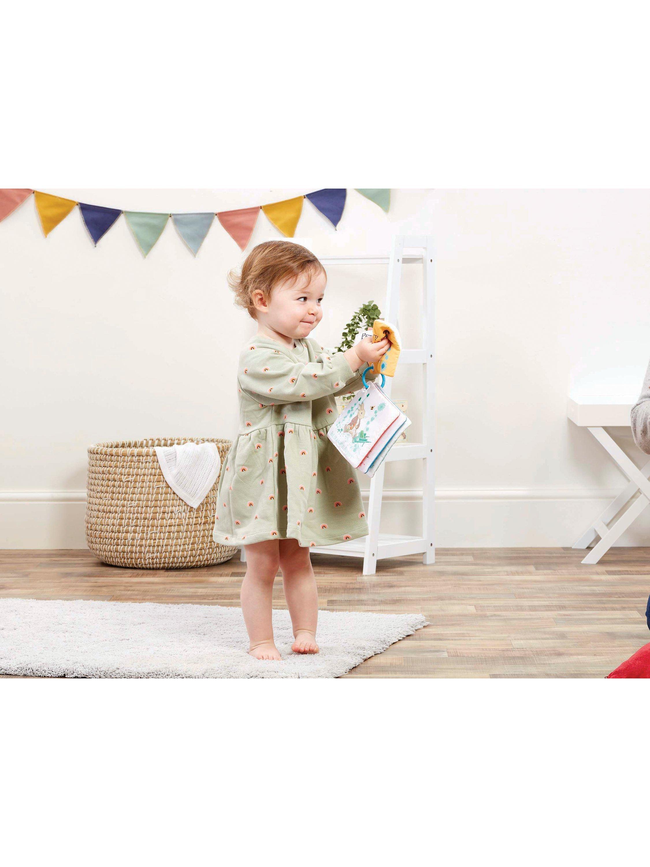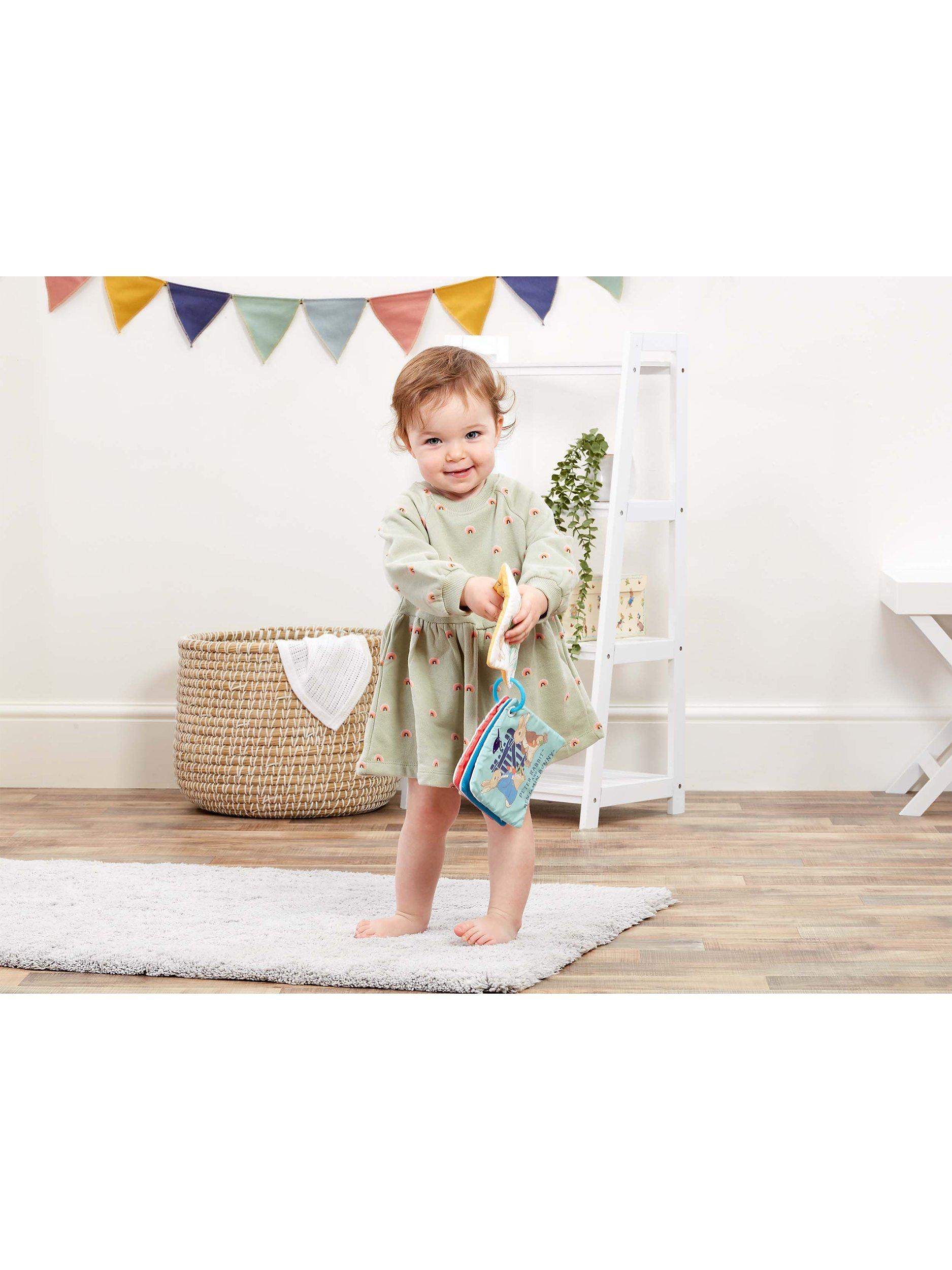 Easy to grab and featuring different textures, a crinkly page and a squeaky page, the super soft book encourages sensory play and helps to develop baby's early motor skills. The Play and Go Squares are suitable from birth and perfect for both story time and play time, as little ones explore the fun textures, sounds and classic illustrations of the loved Beatrix Potter characters. A perfect gift for the youngest Peter Rabbit fans, this fun-packed soft book also comes with a handy ring, for quick and easy attachment to a pram, a bag or car seat.