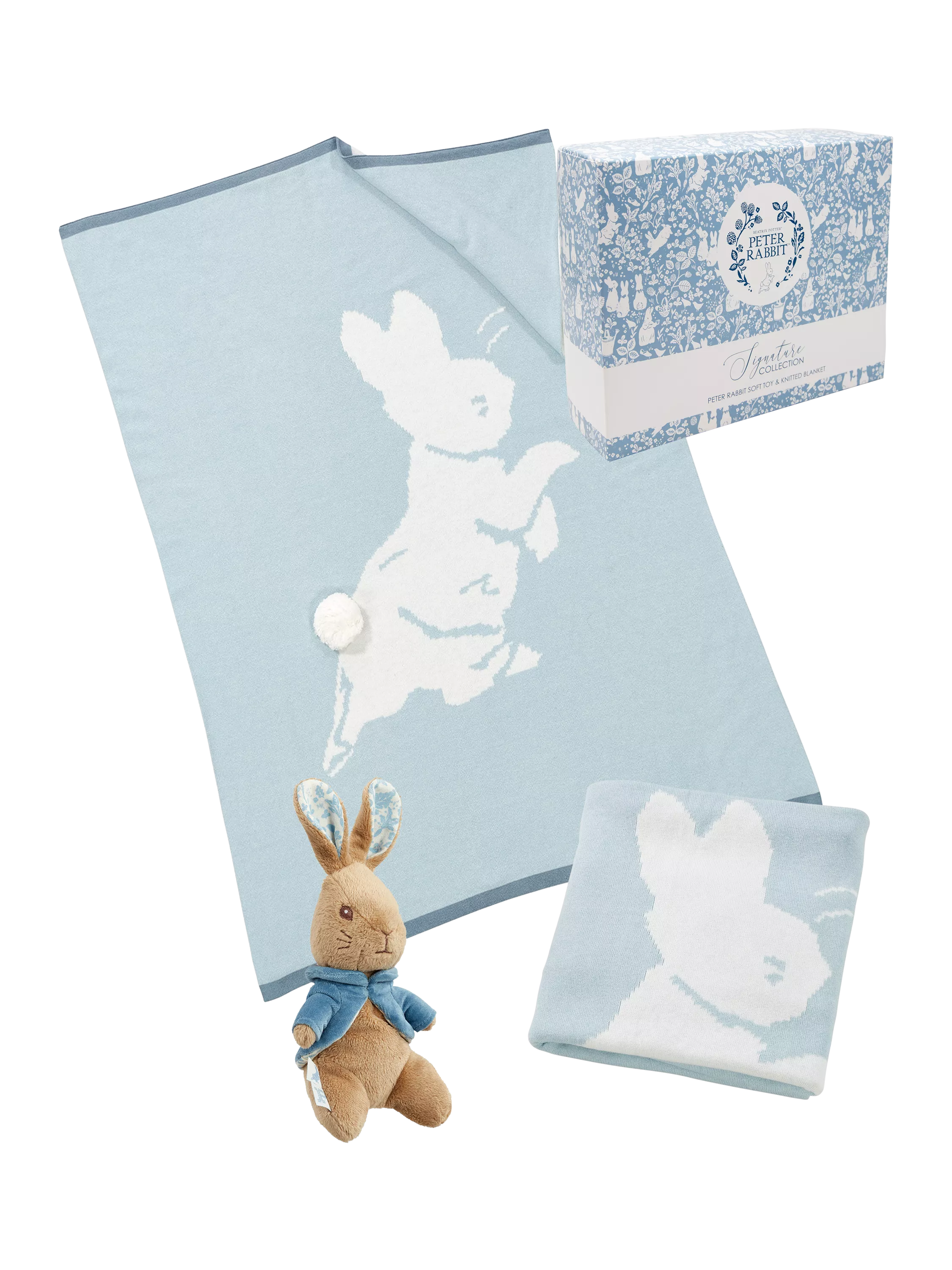 Rainbow DesignsPeter Rabbit Signature Collection Soft Toy and Knitted Blanket, Blue