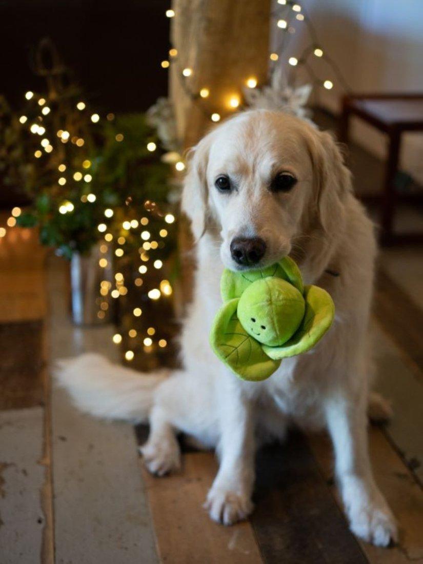 Our much loved Petface Brussel Sprout Dog Toy has had a winter makeover ready for Christmas! This is a super cute, soft play toy or companion designed for young puppies and small dogs but loved by bigger breeds too.