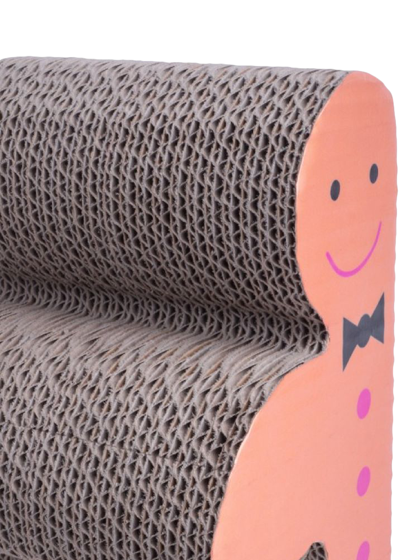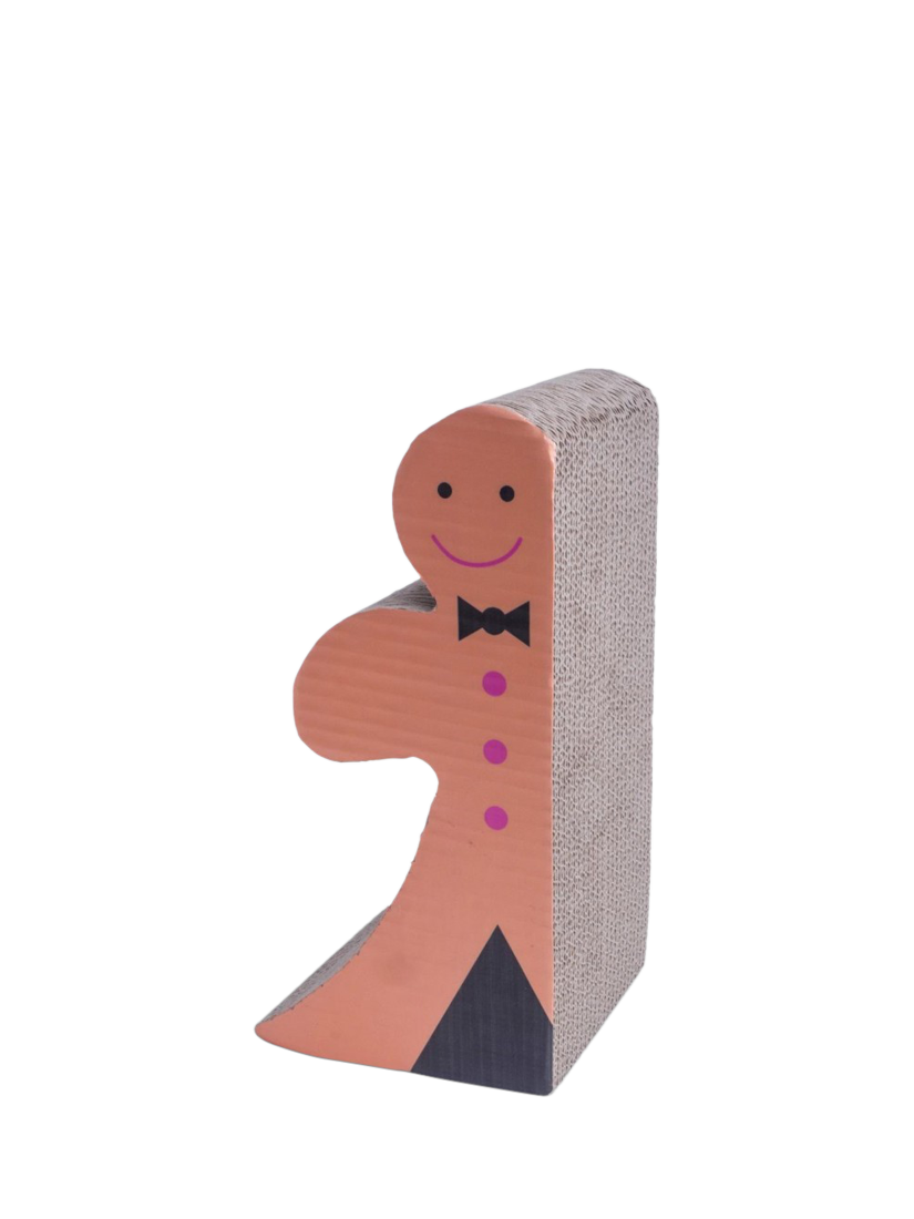 Petface Gingerbread Man Cardboard Scratcher for cats. This scratcher will provide your cat with entertainment at the same time as helping to maintain their claws in a great condition. This scratcher is not indestructible and will eventually become susceptible to 'claw' damage and the longevity of any pet toy will be dependent on the ability and dexterity of your pet.