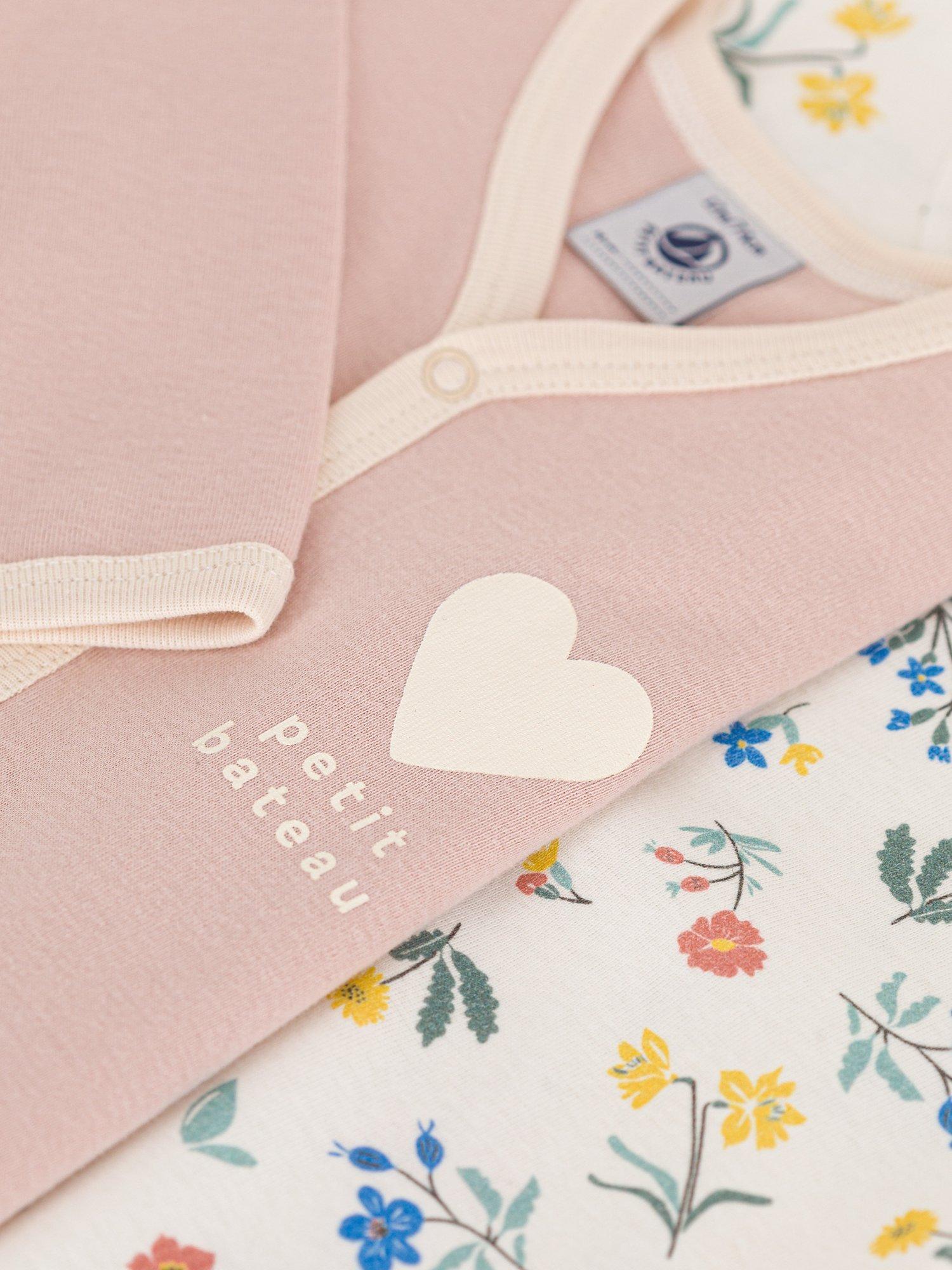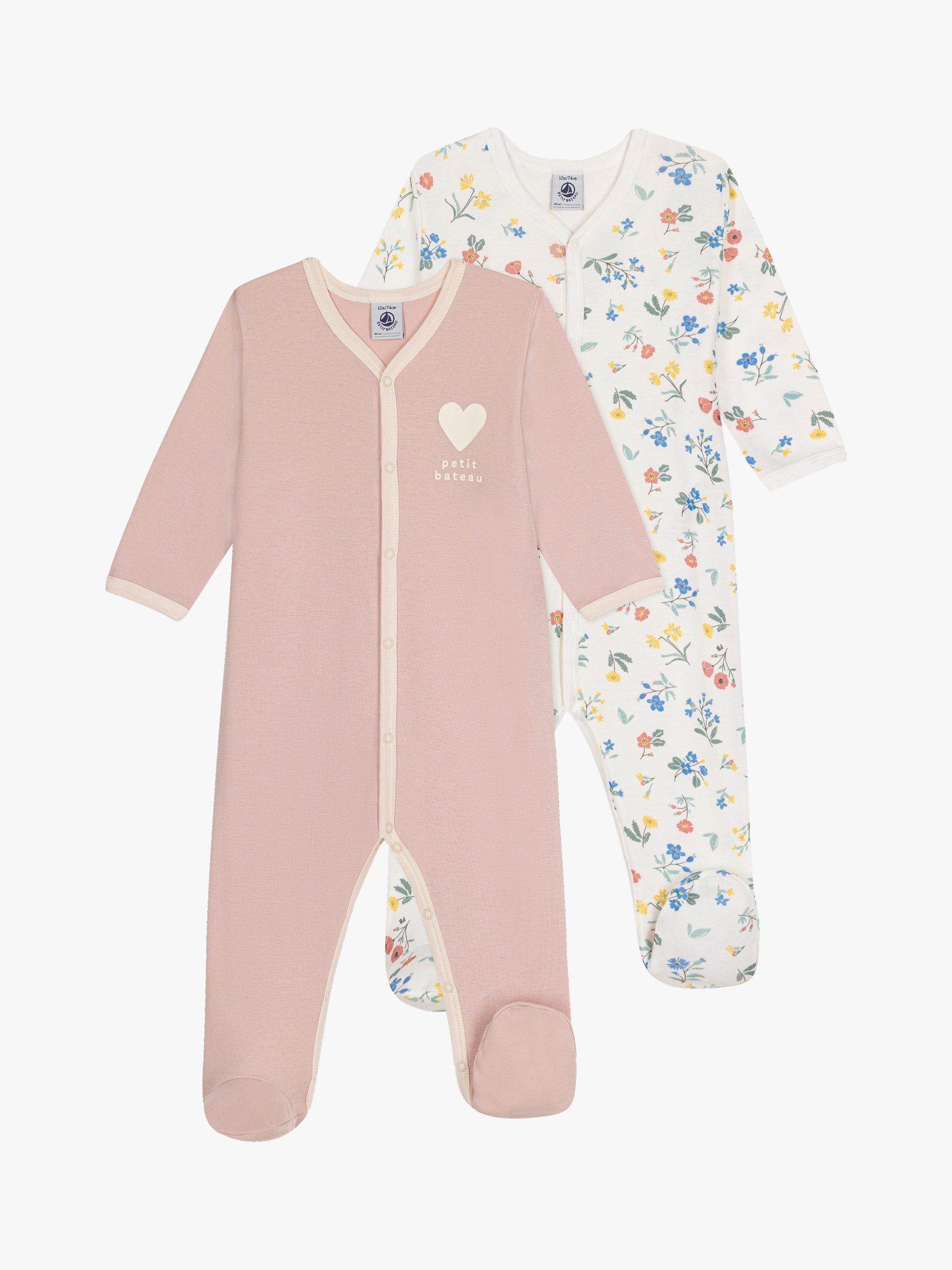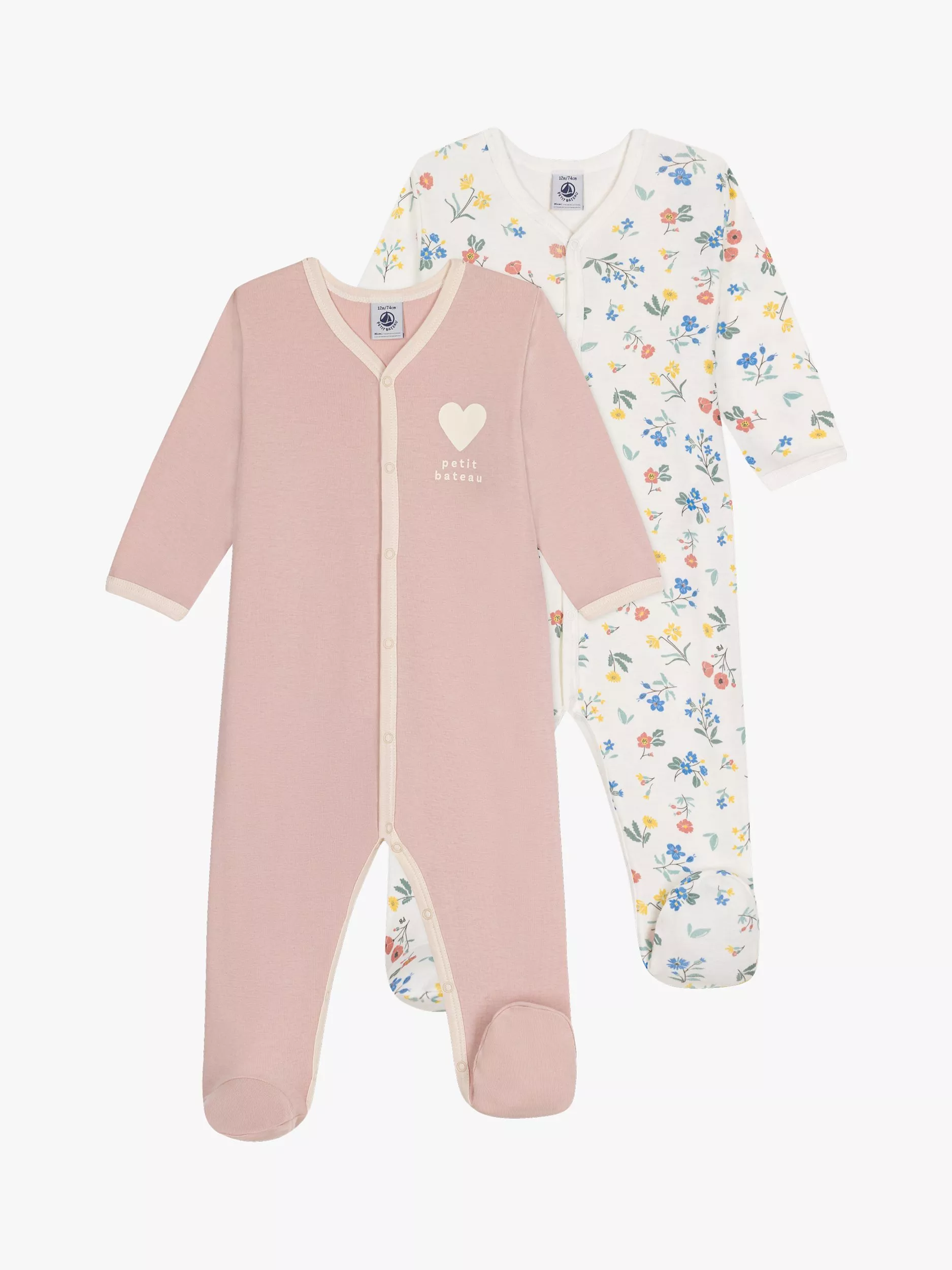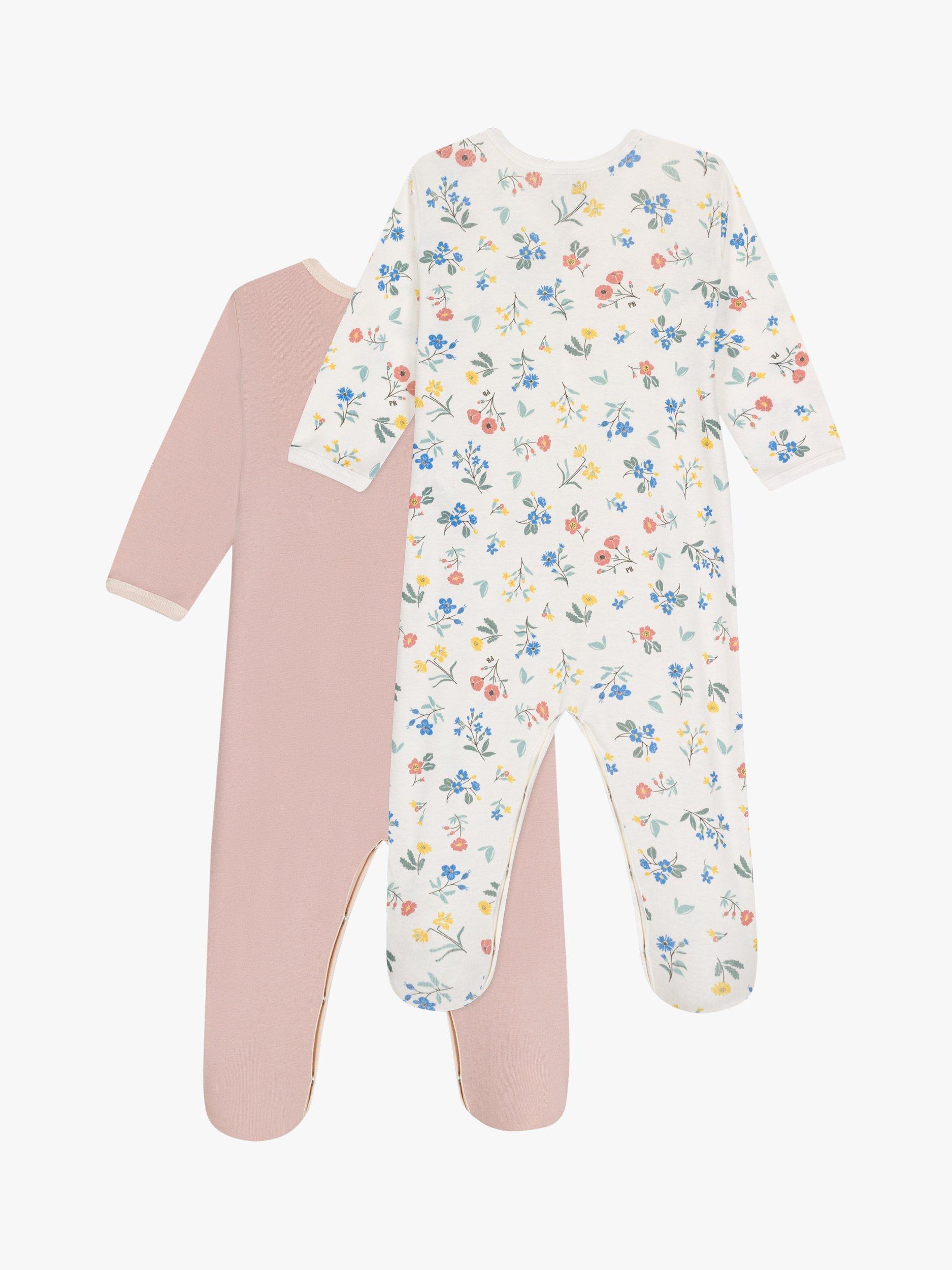 Petit BateauBaby Floral Print/Plain Sleepsuits, Pack Of 2, Multi