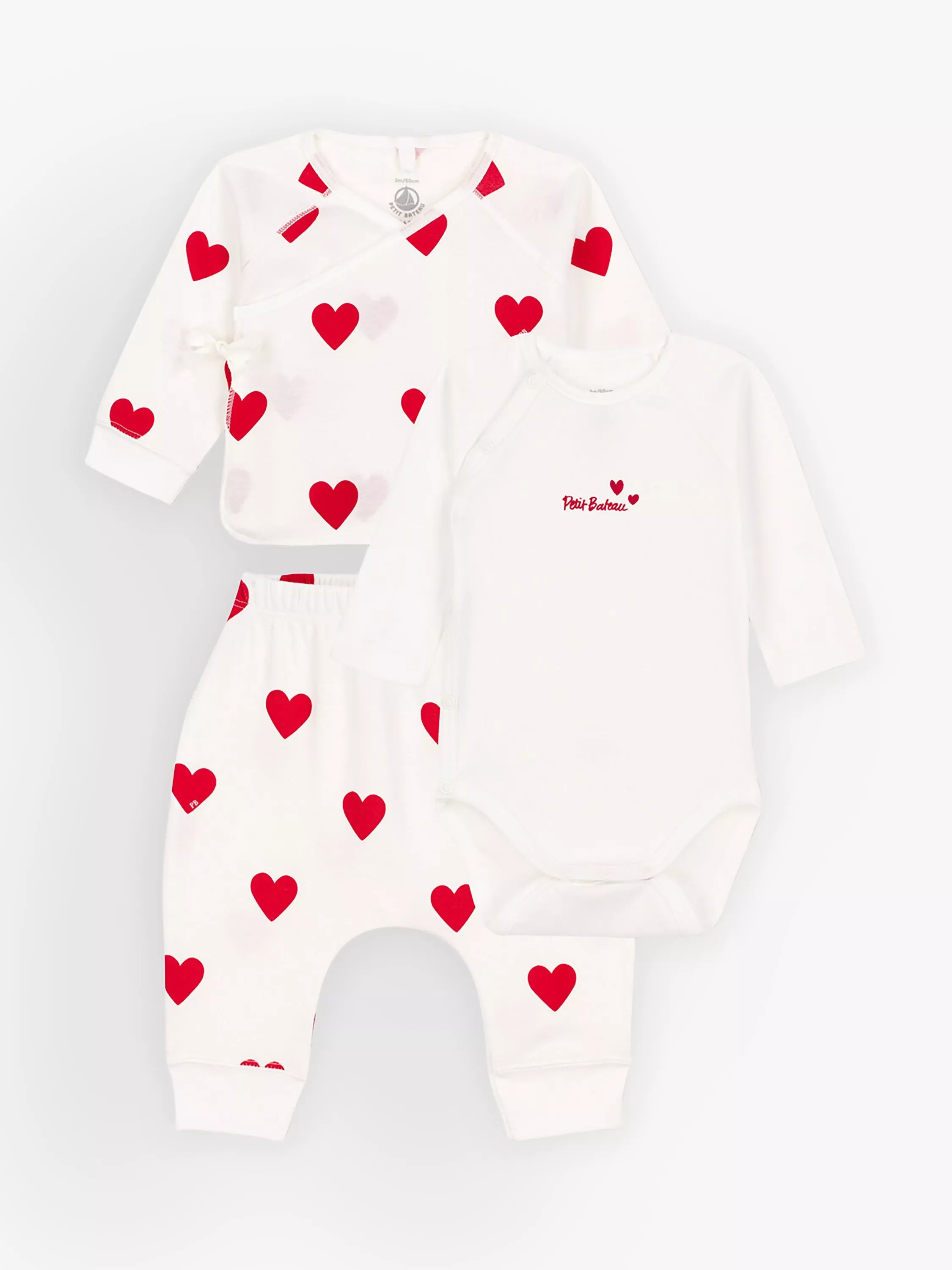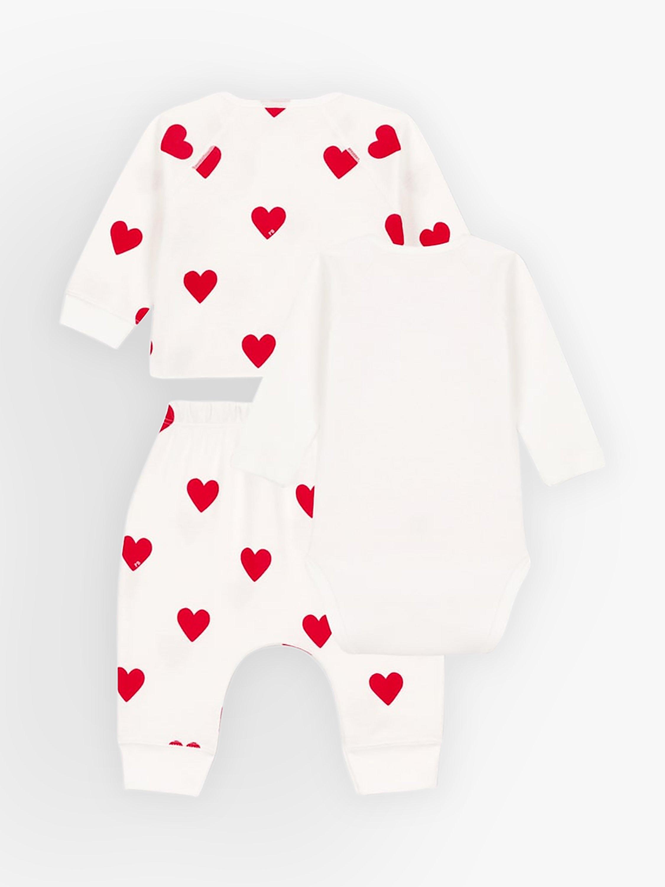 Petit BateauBaby Hearts Organic Cotton Bodysuit with Cardigan & Trousers Set, Marshmallow/Terkuit