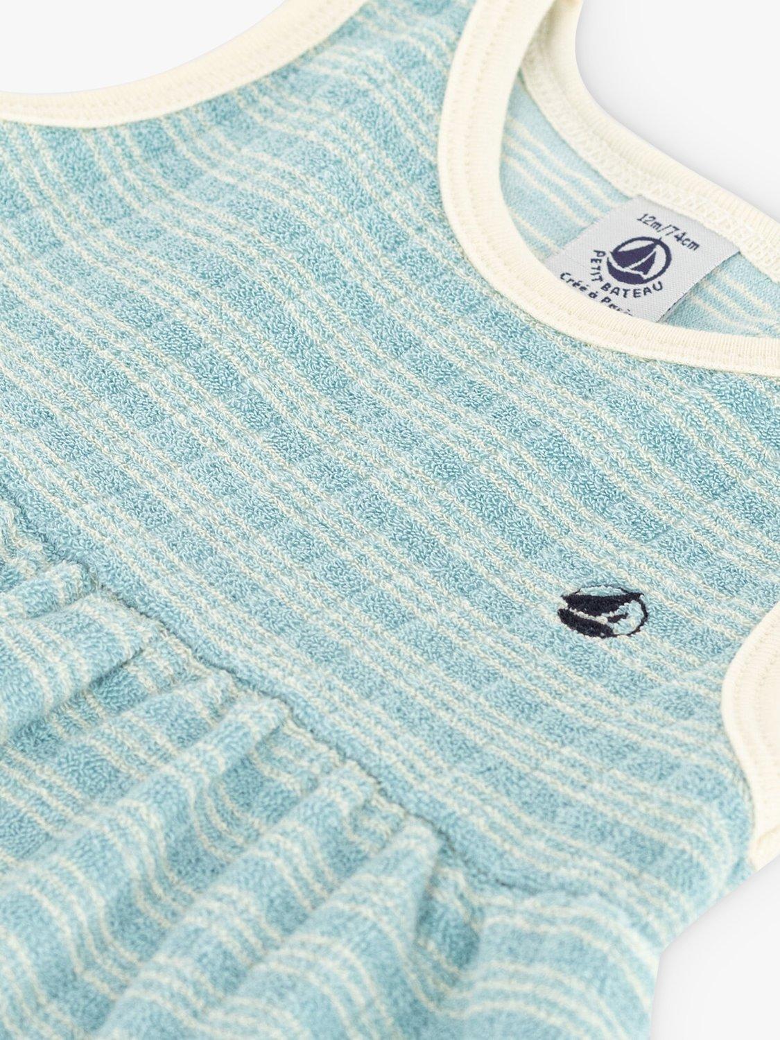Showcasing a simple striped design, this sleeveless fit and flare baby dress from Petit Bateau is cut from a blend of cotton for comfortable wear all day long.