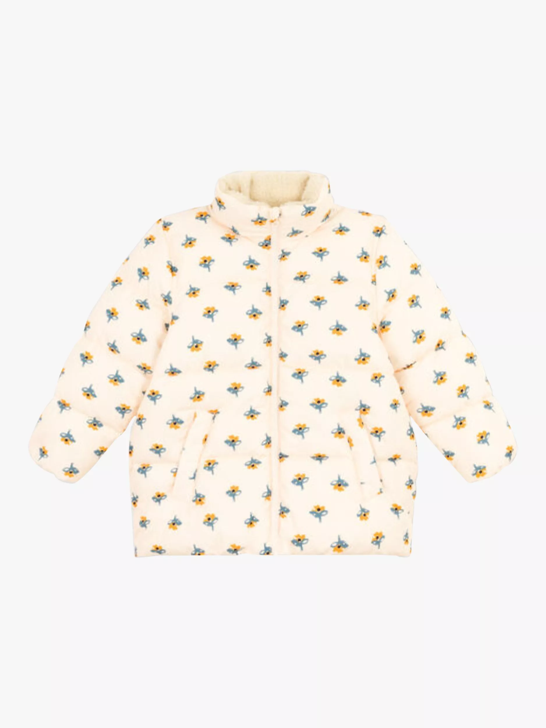 Stay cosy with an on-trend with this Sherpa lined high neck puffer jacket. Designed with a concealed fold-out hood and a zipped front.