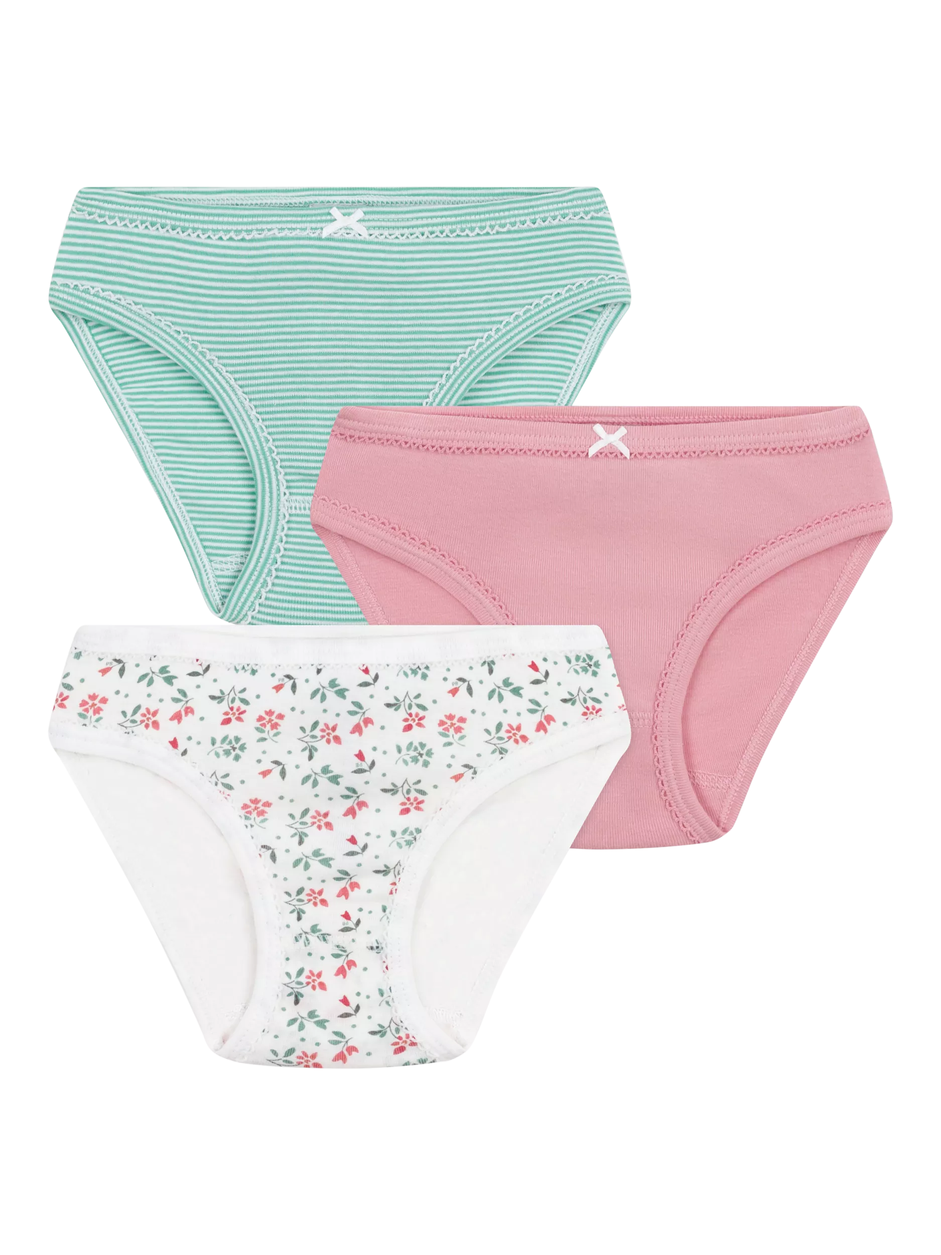Designed for everyday comfort, this trio of soft cotton knickers features one of each design: a timeless stripe, classic plain and adorable floral.
