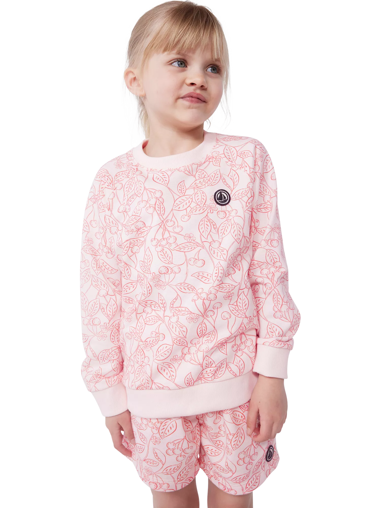 A sweatshirt in lightweight cotton fleece from Petit Bateau, featuring a cute cherry print. Designed with a rounded neckline, dropped armholes and ribbed trims.