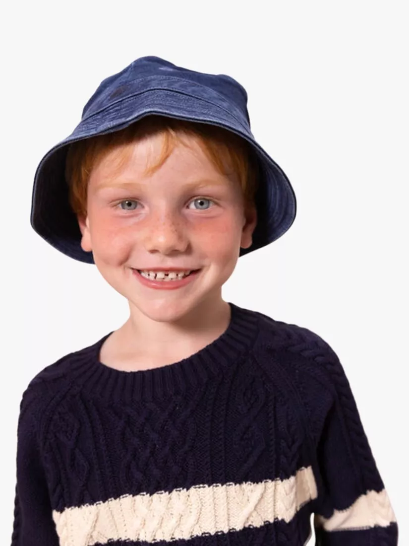 Plain denim sun hat from Petit Bateau with embroidered eyelets. A summer staple for protection from the sun.