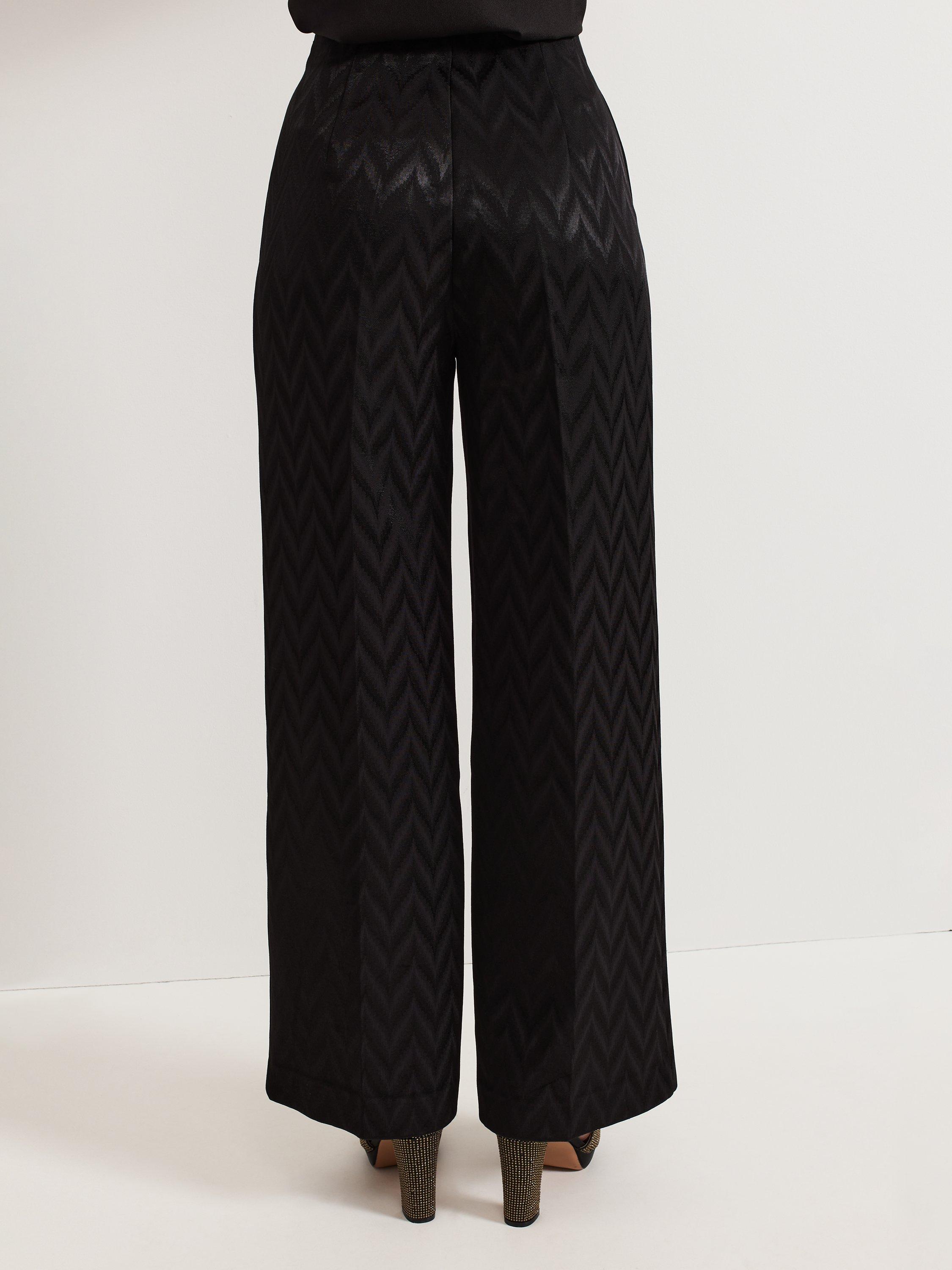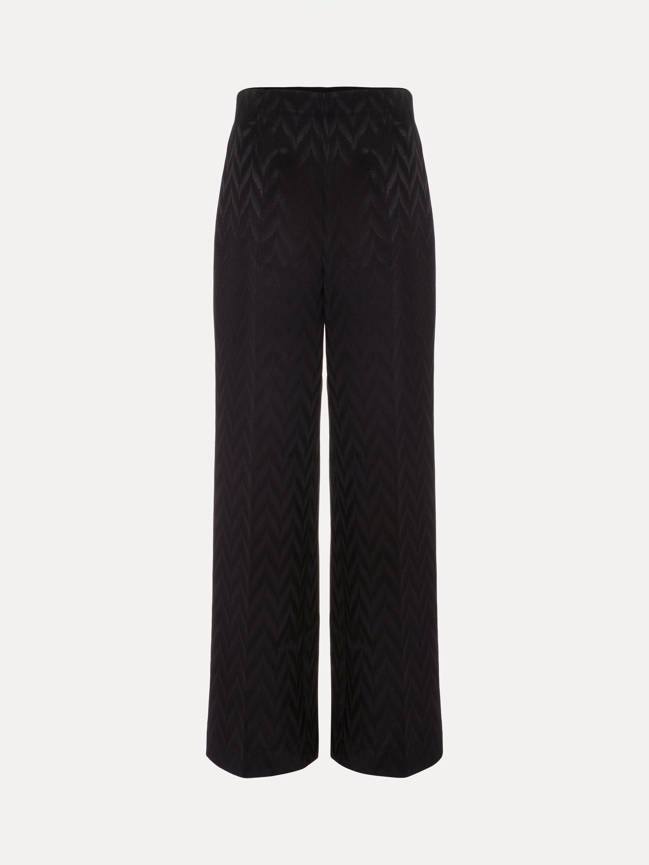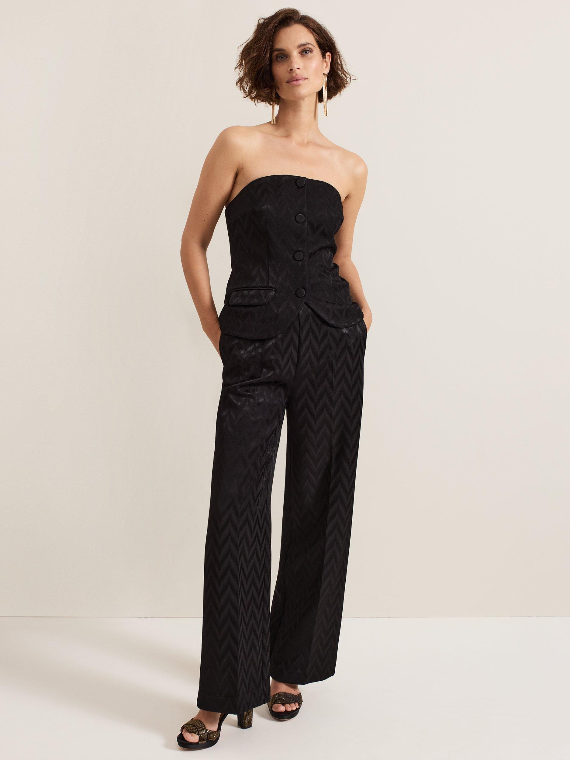 Designed in classic black with a subtle zig zag print, the Adalynn suit trousers feature front seams and fasten at the side with a zip, falling to a straight leg silhouette. Pair with our Adalynn bandeau and jacket for a coordinated 3-piece style. This style is responsibly sourced. This style has been made from recycled polyester, giving materials that would have ended up in landfill a new lease of life.
