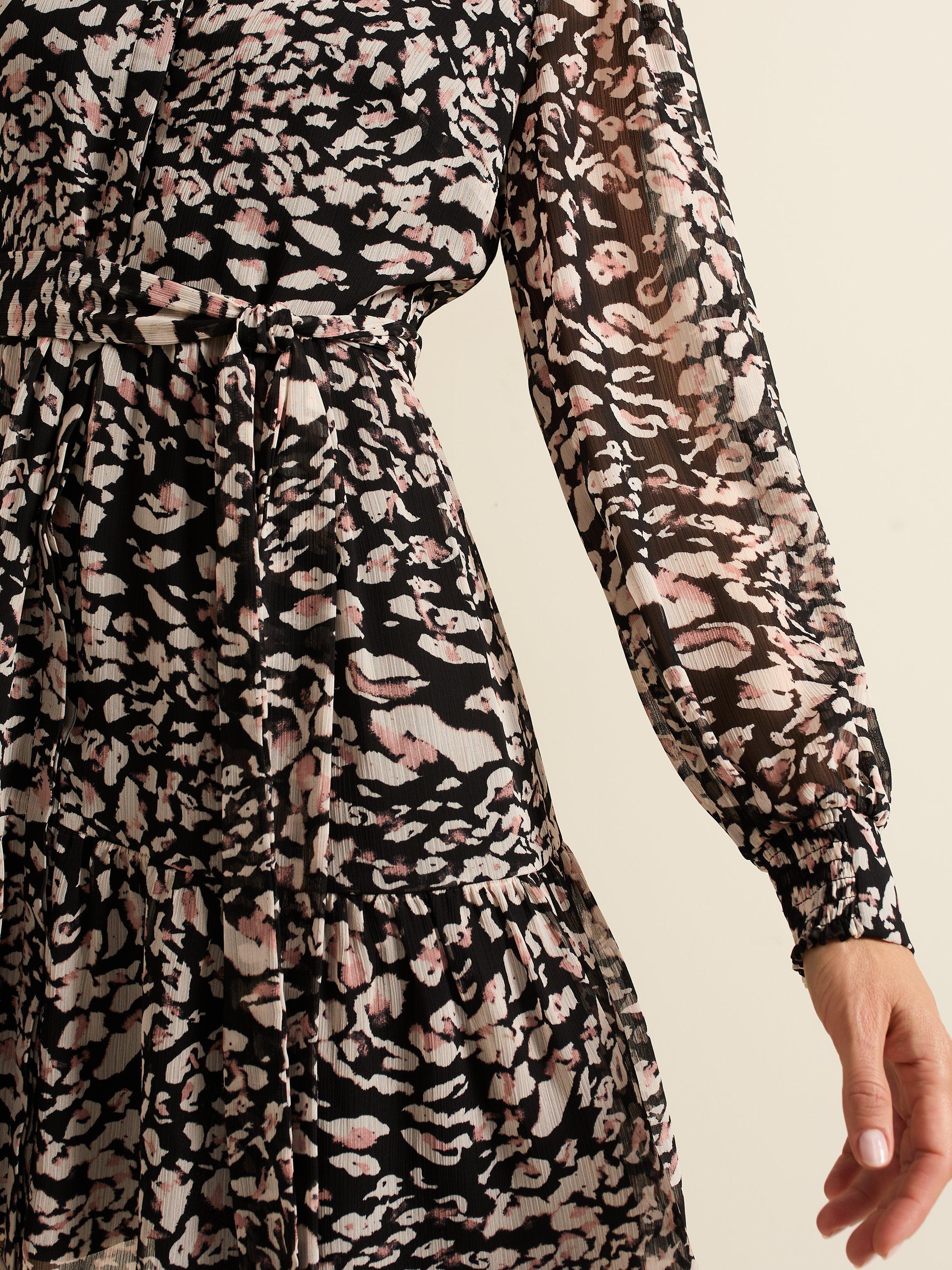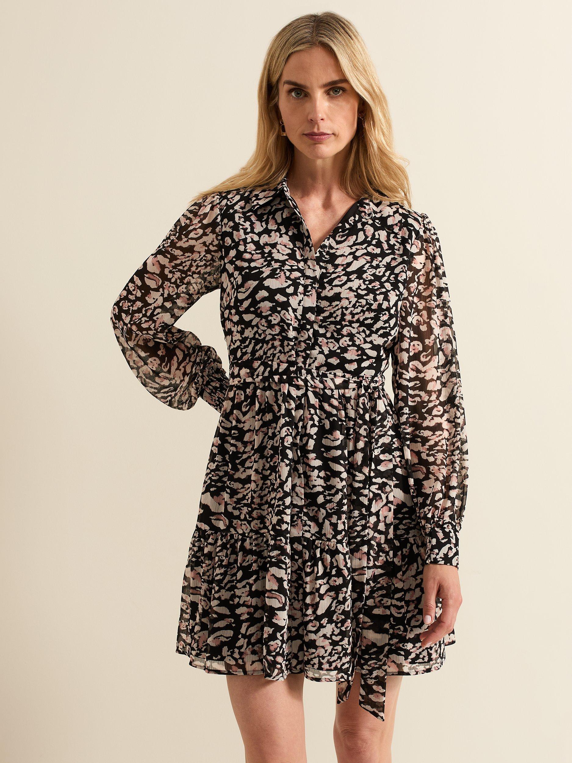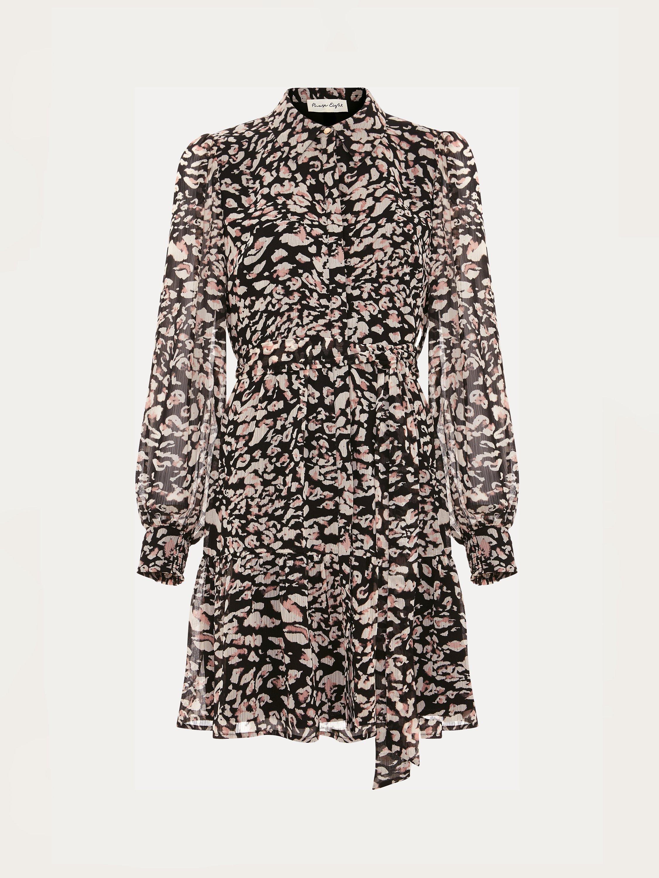 Designed in an always on-trend animal print our Aisling dress is the perfect versatile style for day or night. Featuring long blouson sleeves and a matching belt to cinch your waist our dress flows into a tiered mini skirt.