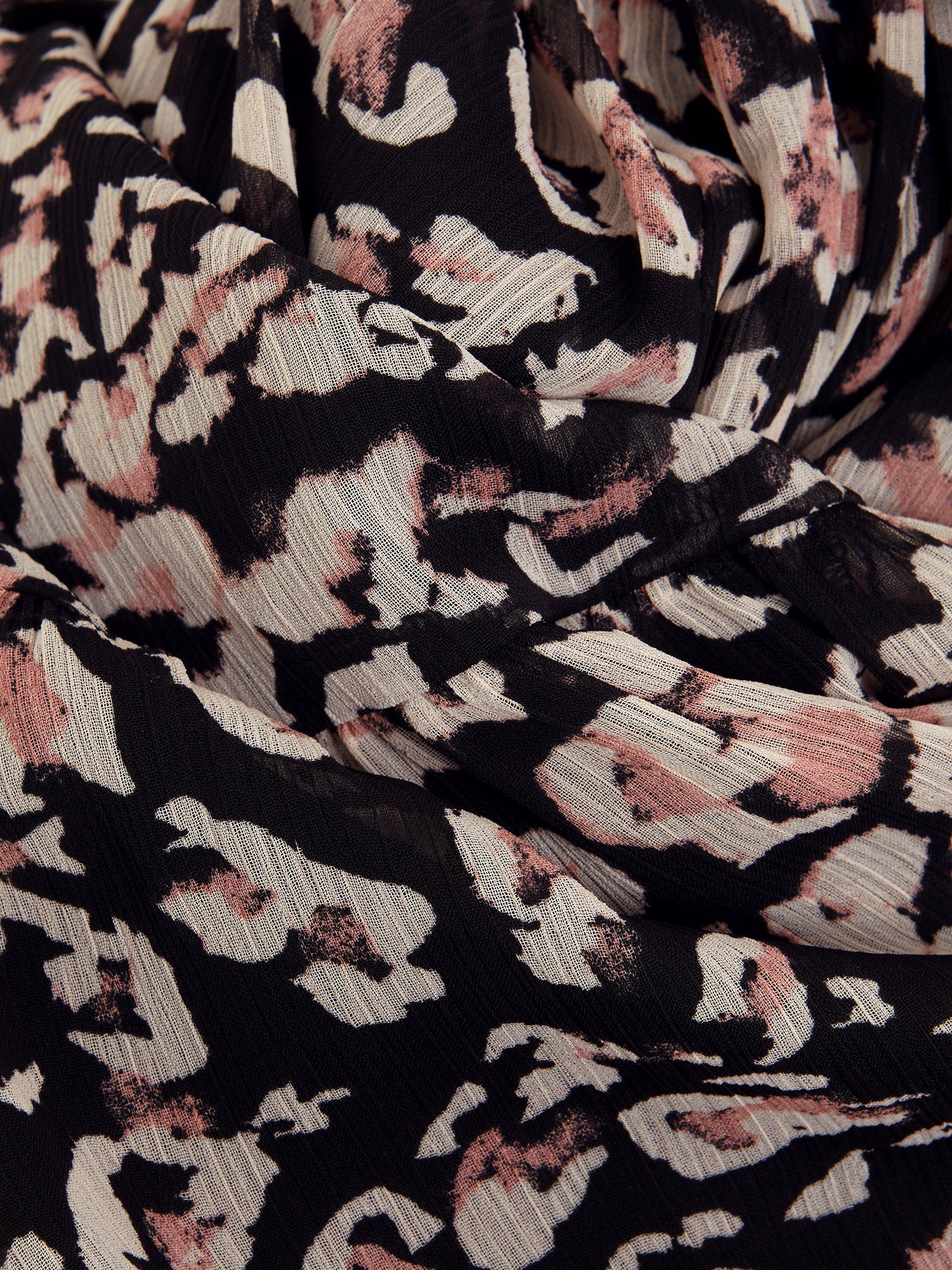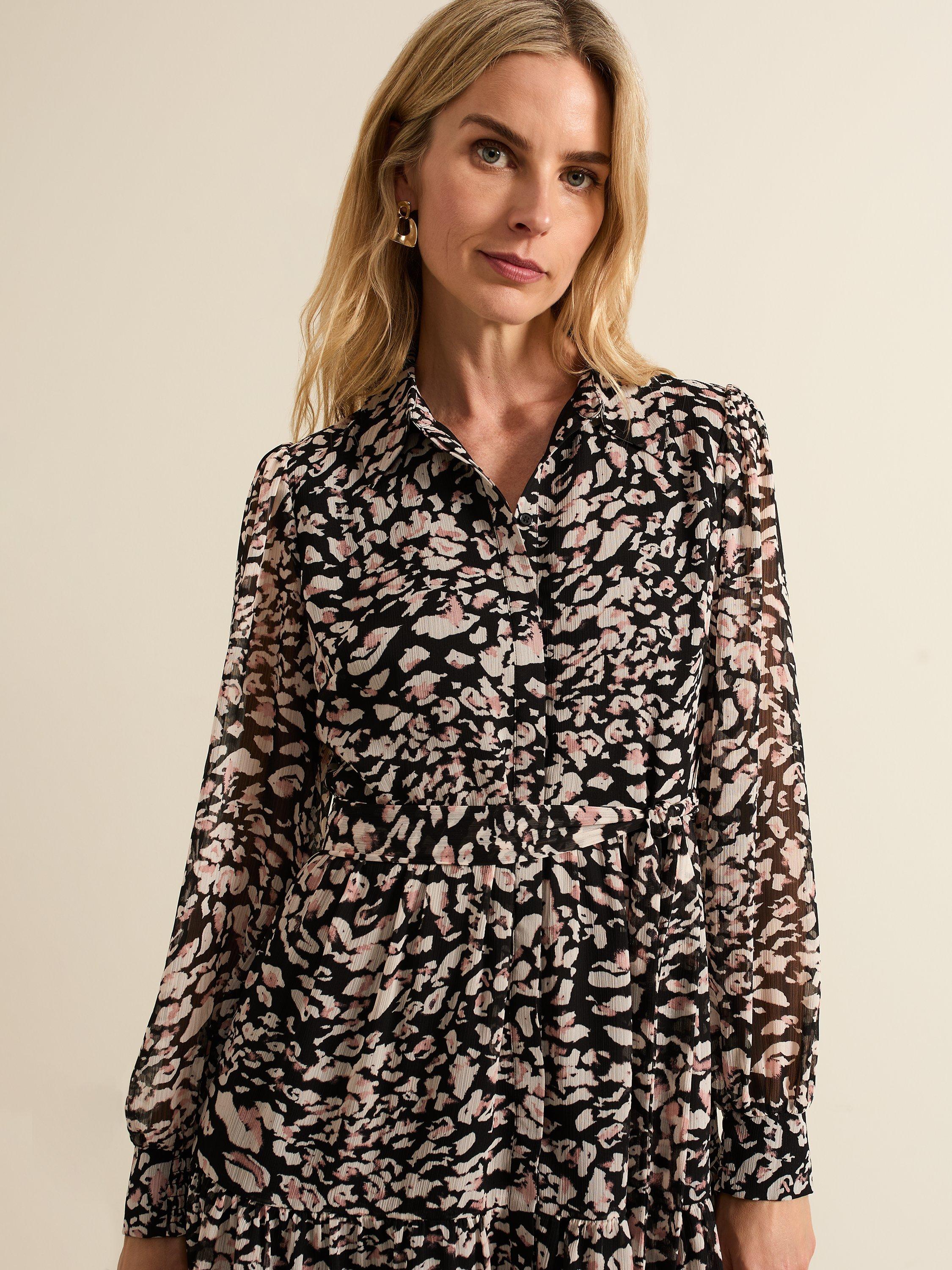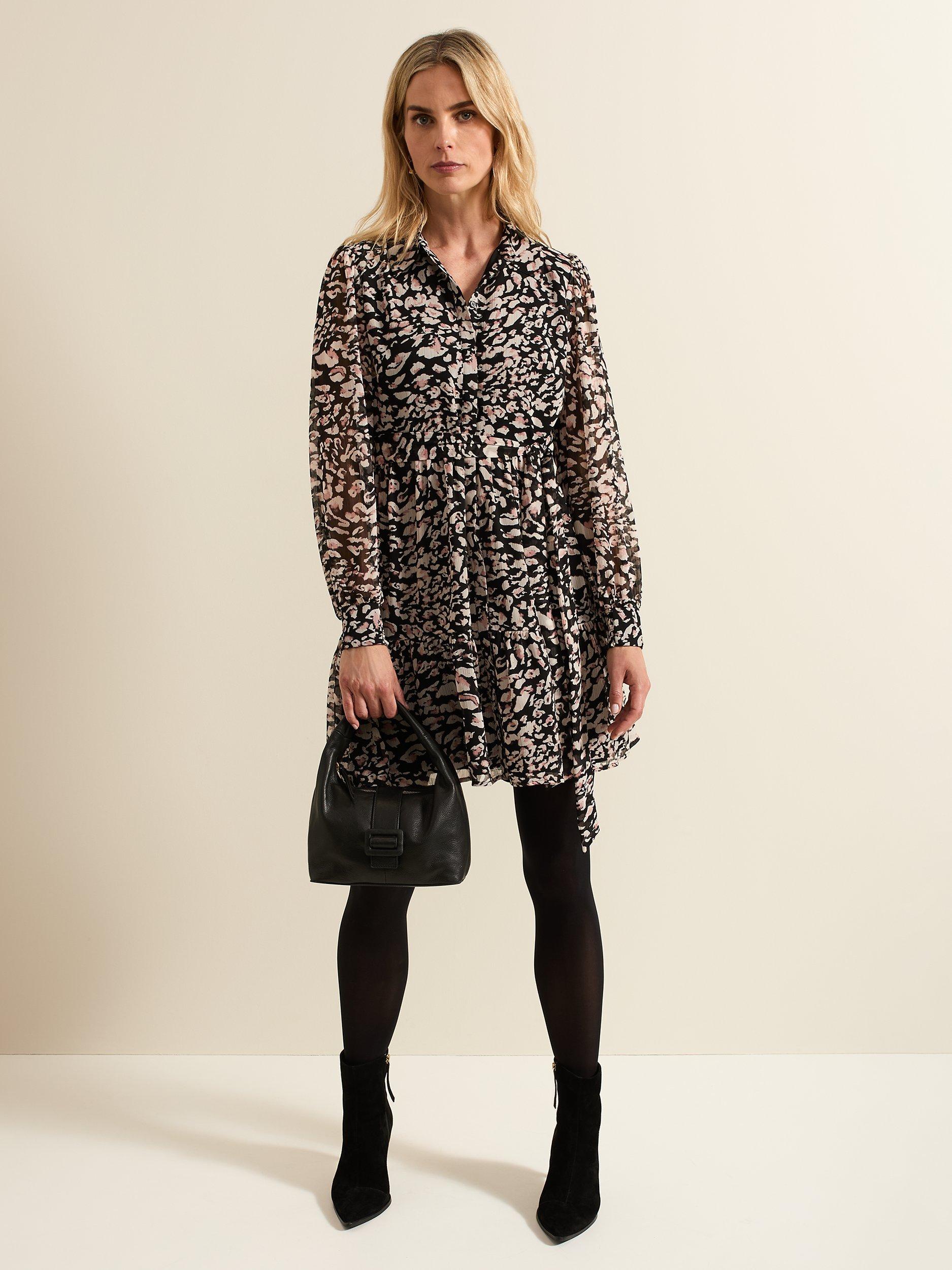 Designed in an always on-trend animal print our Aisling dress is the perfect versatile style for day or night. Featuring long blouson sleeves and a matching belt to cinch your waist our dress flows into a tiered mini skirt.
