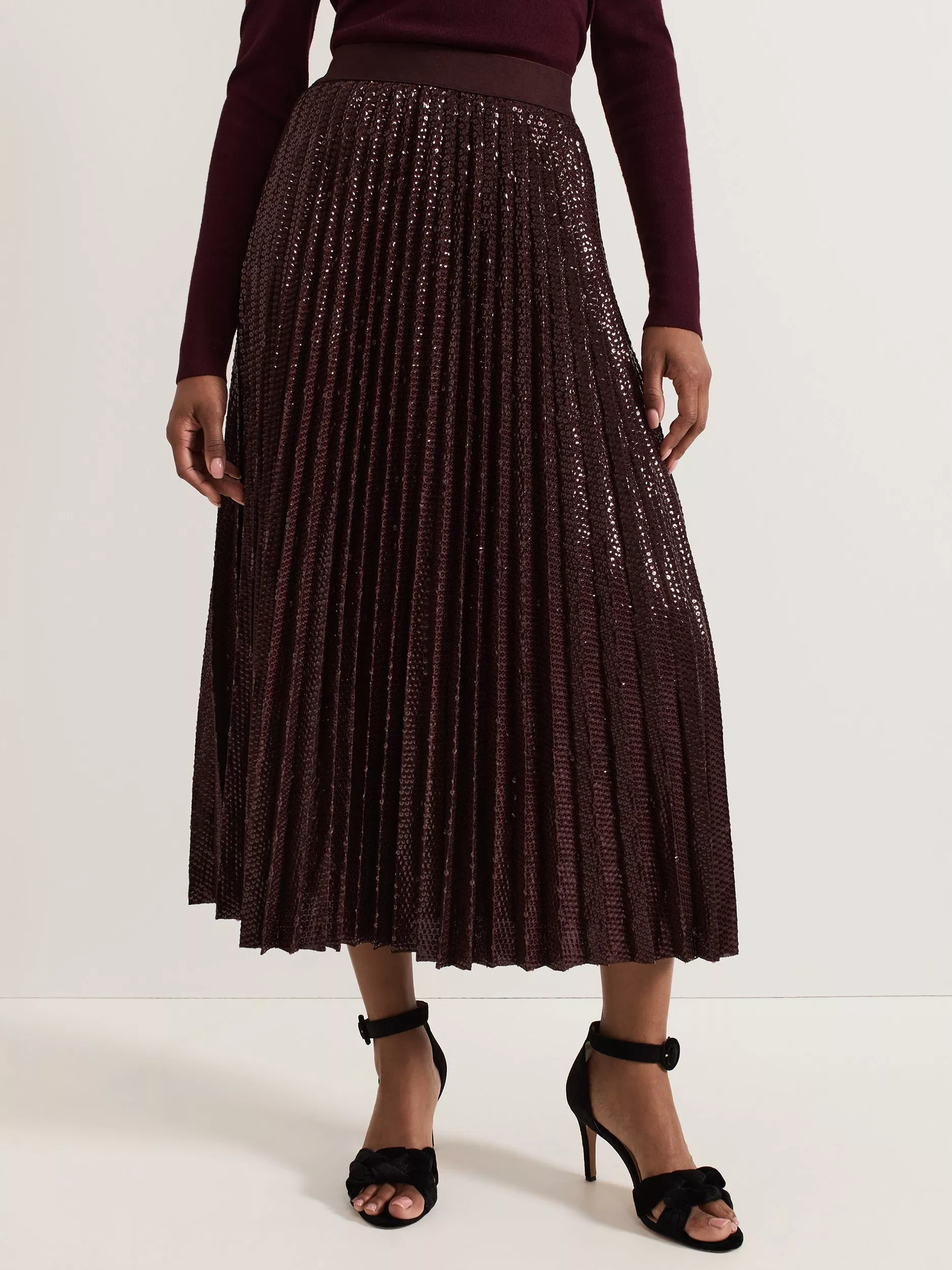Pleated to perfection, this A-line thigh-grazing skirt by Phase Eight comes in a profusion of twinkling embellishments.