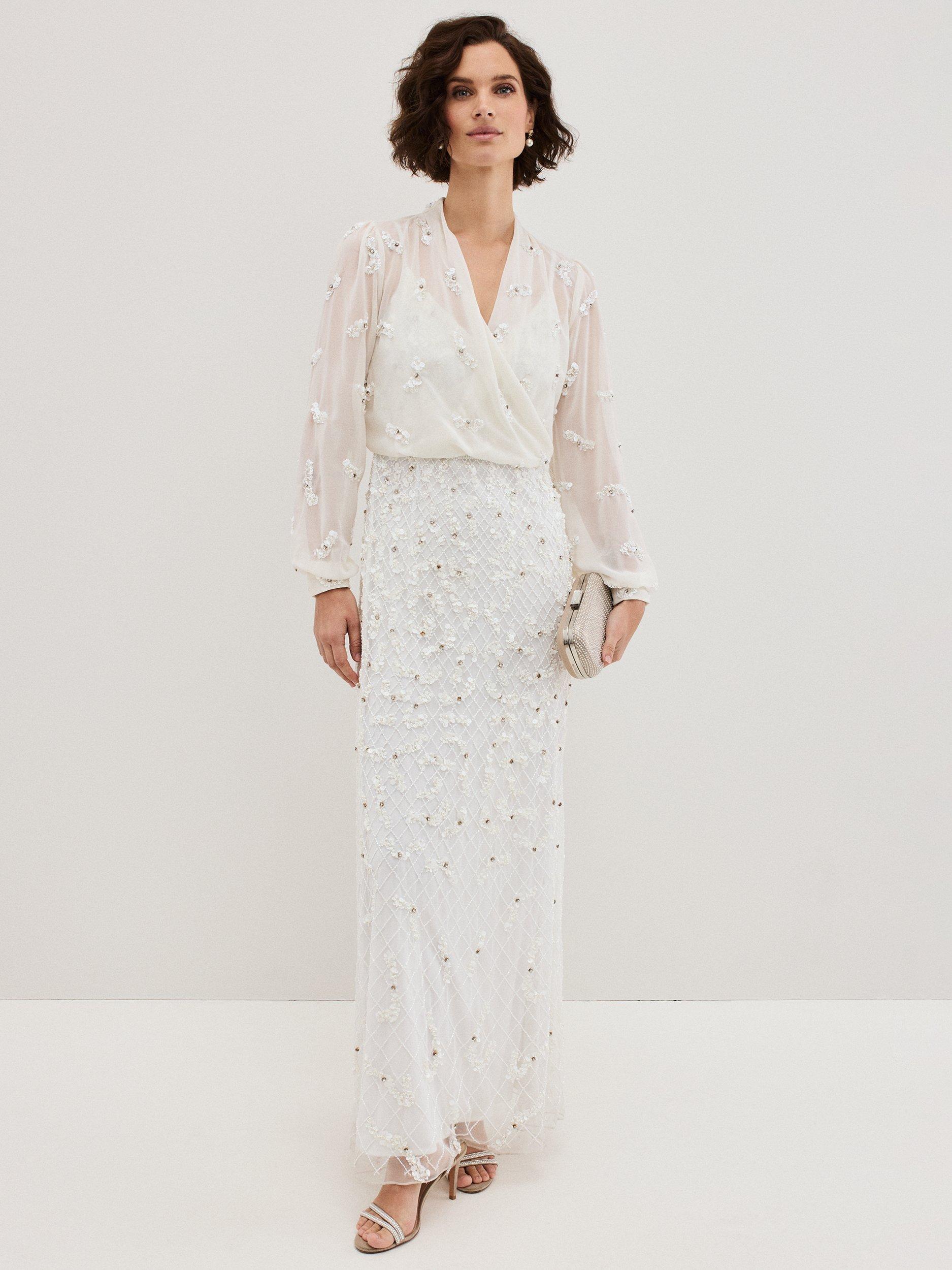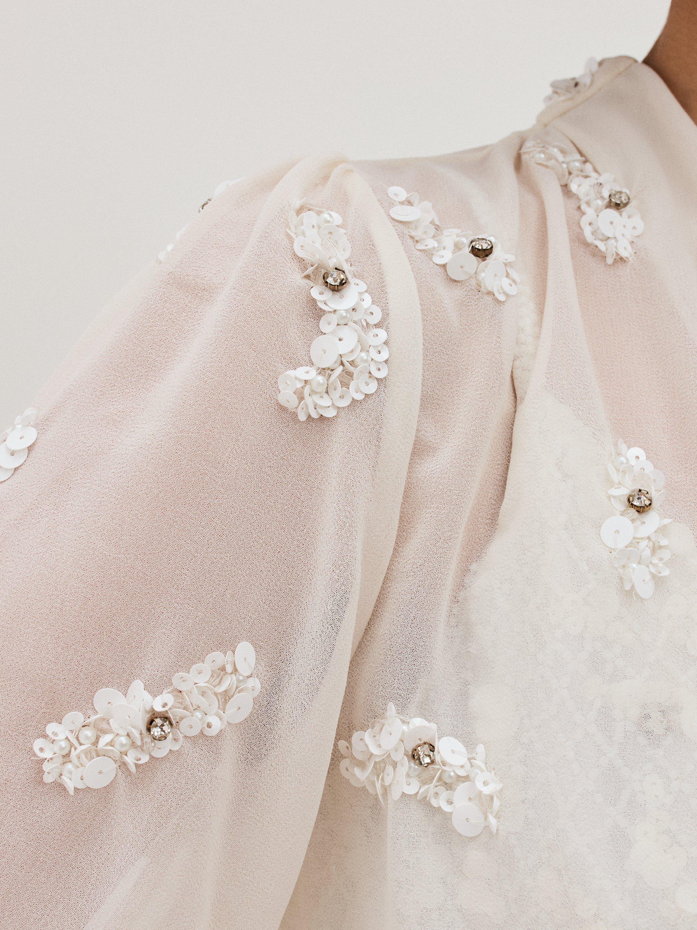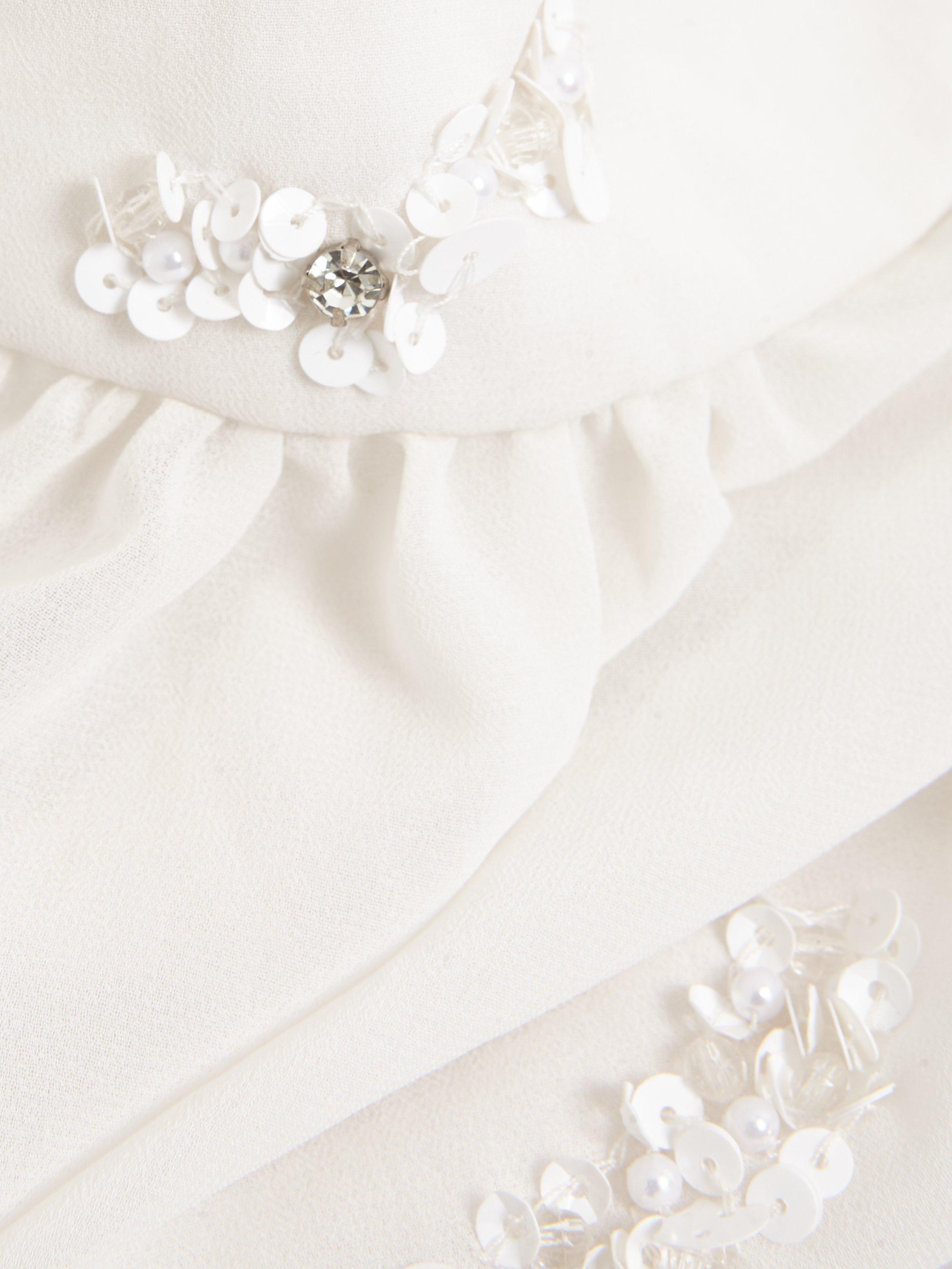 The perfect finishing touch. With hand-beaded embellishment and rhinestone detailing, this semi-sheer cover up is designed to a faux-wrap style.