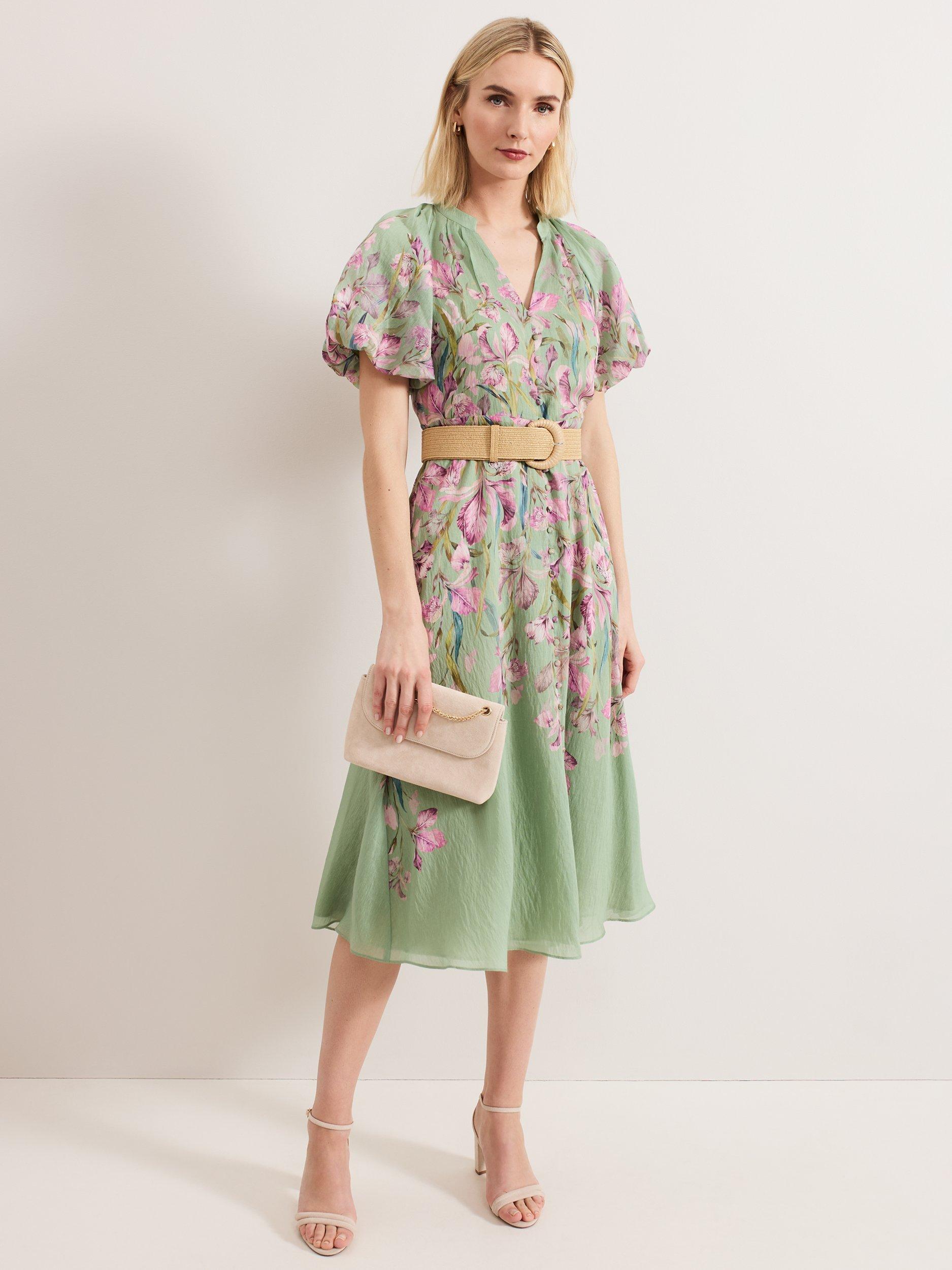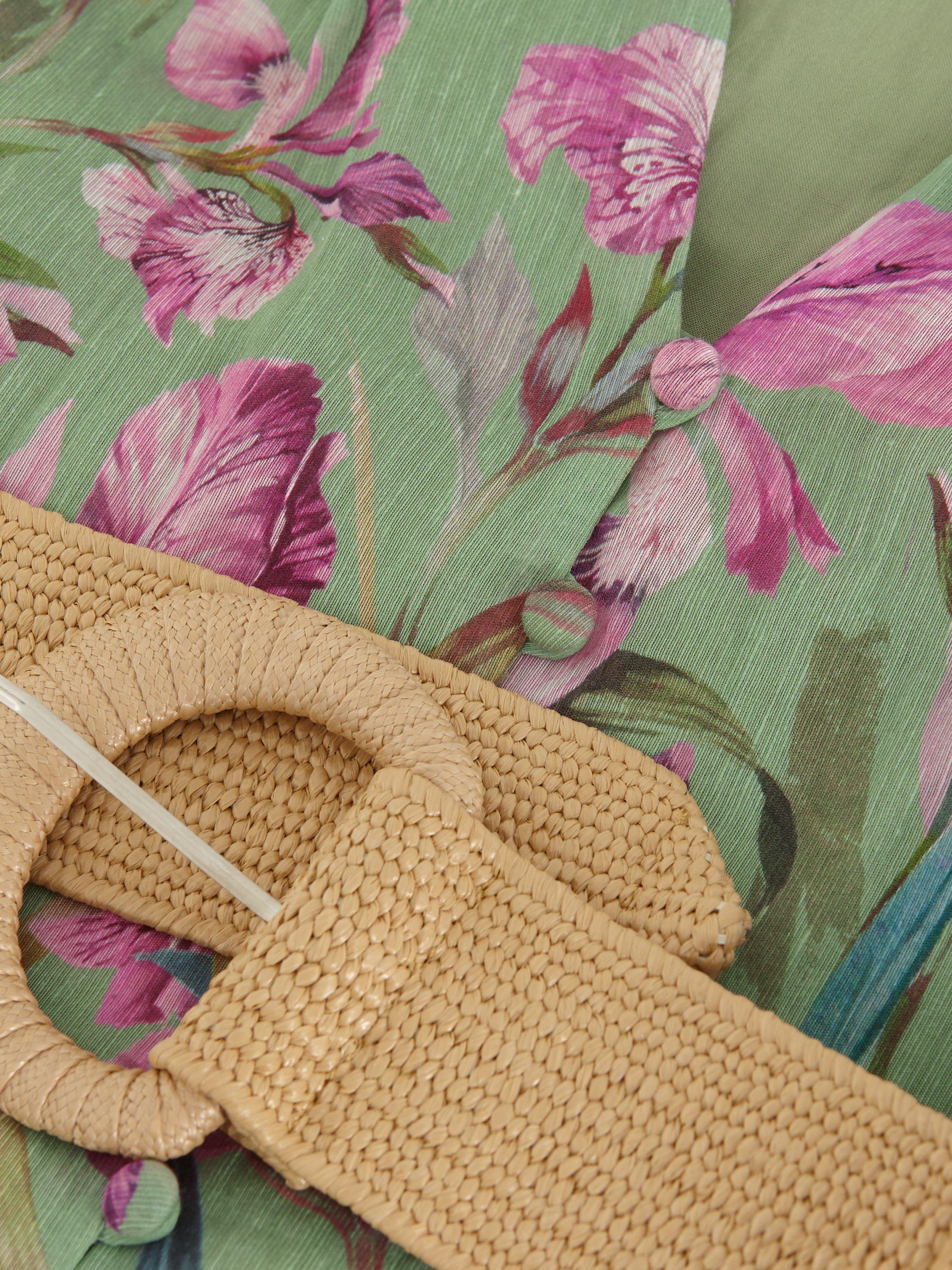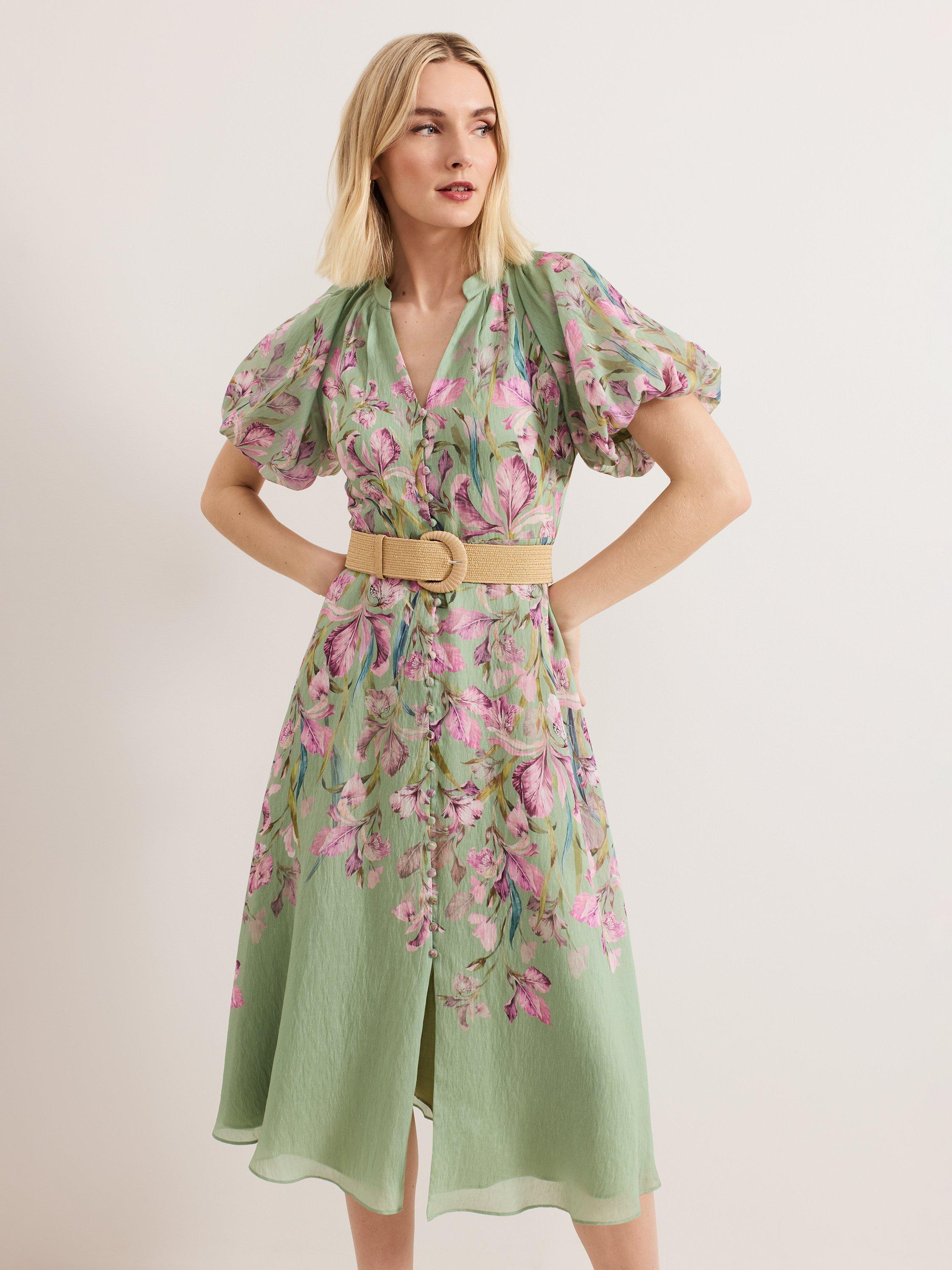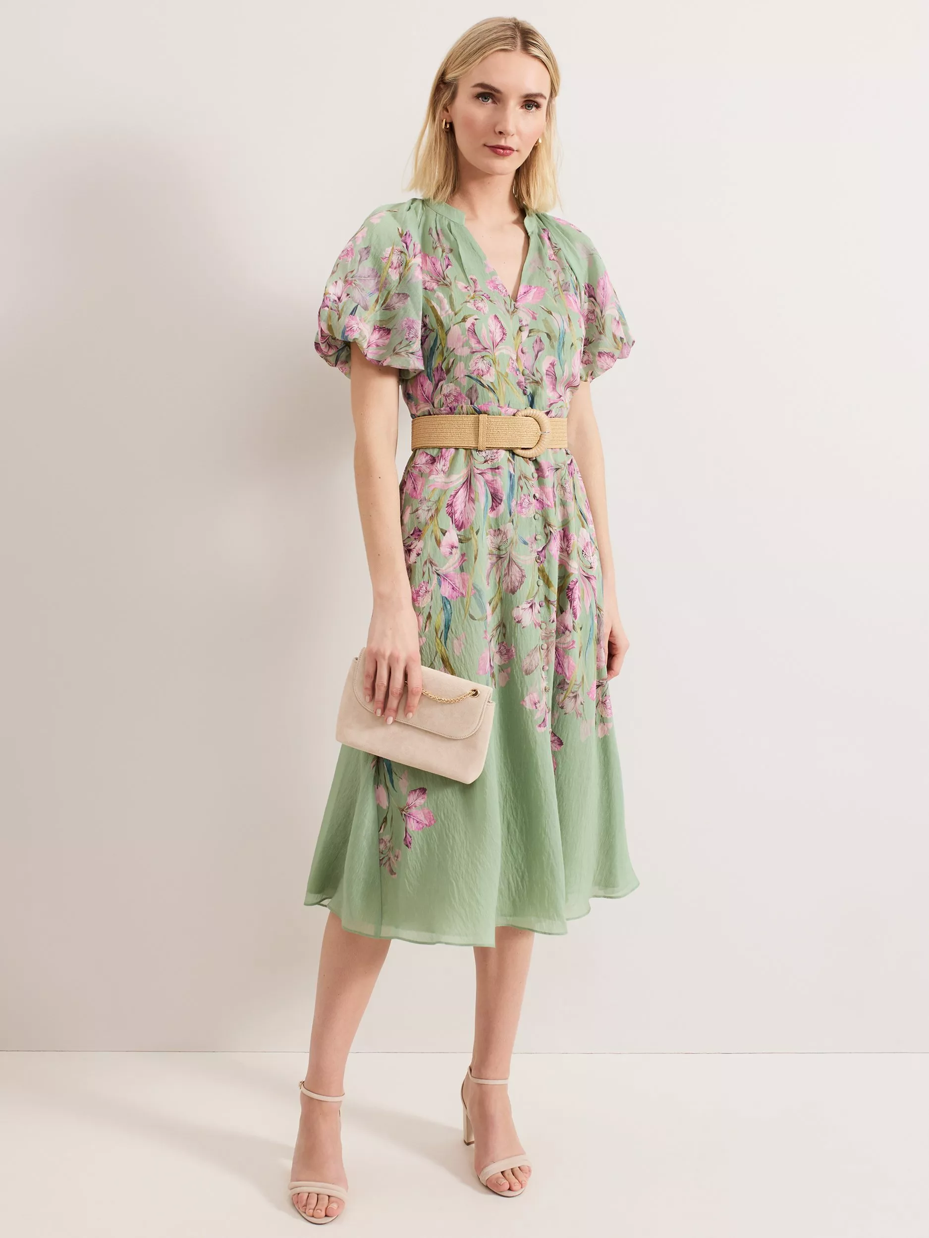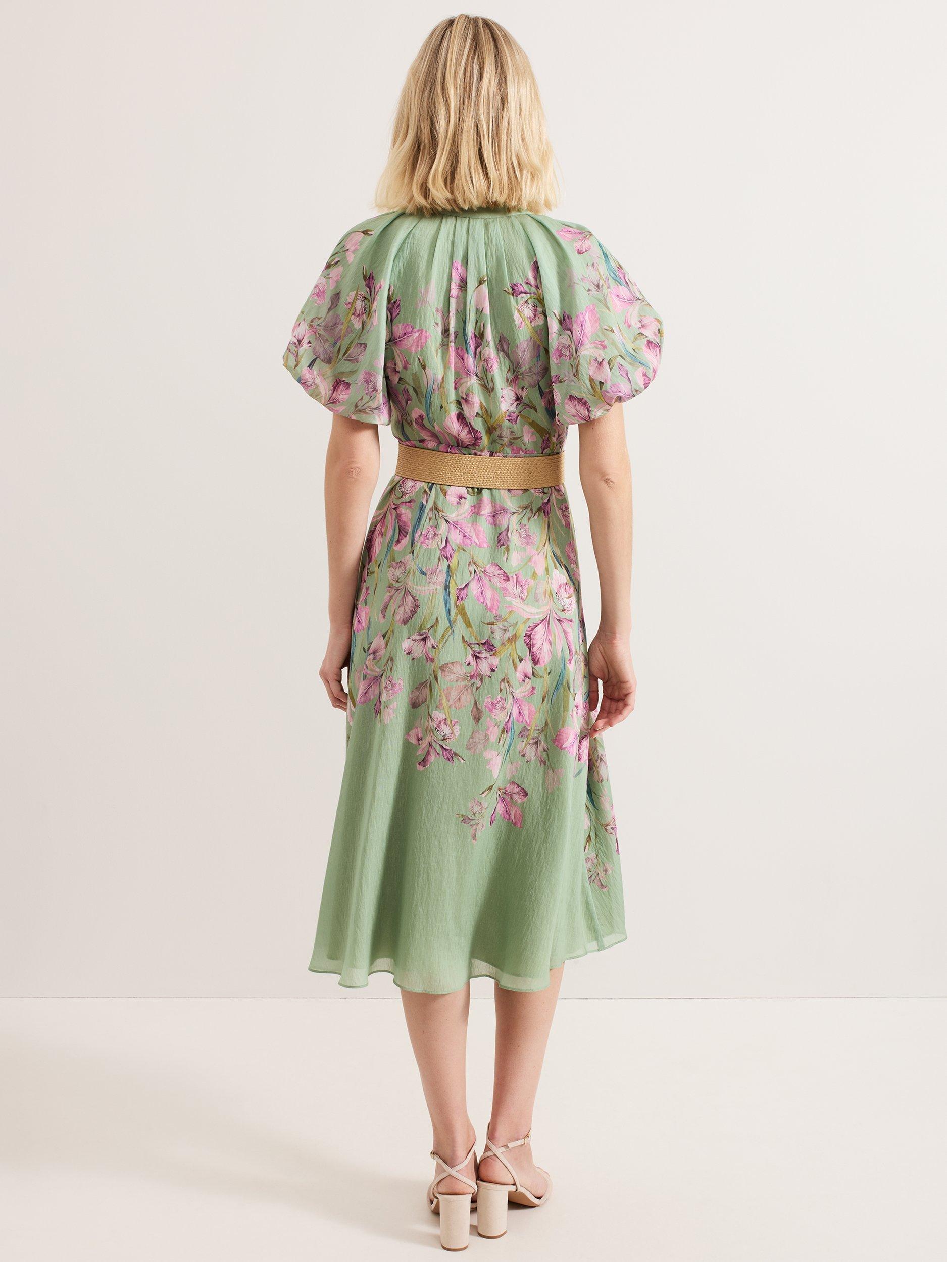 Embrace elegant florals for all your upcoming events. Soft puff sleeves add subtle volume to this midi silhouette, finished with an on-trend raffia belt for a contemporary update. The lightweight linen blend makes this style perfect for garden parties, the races and summer weddings alike.