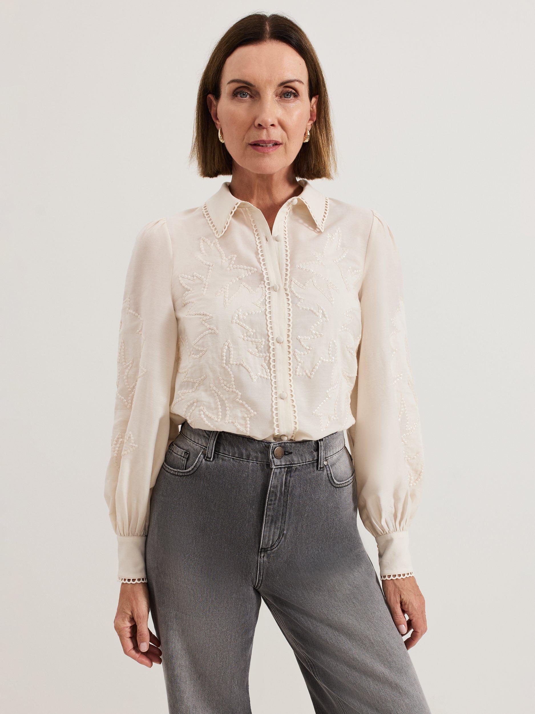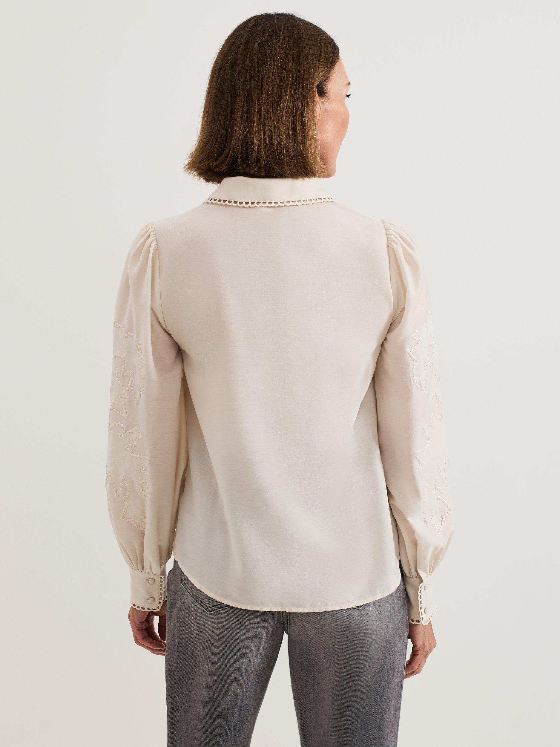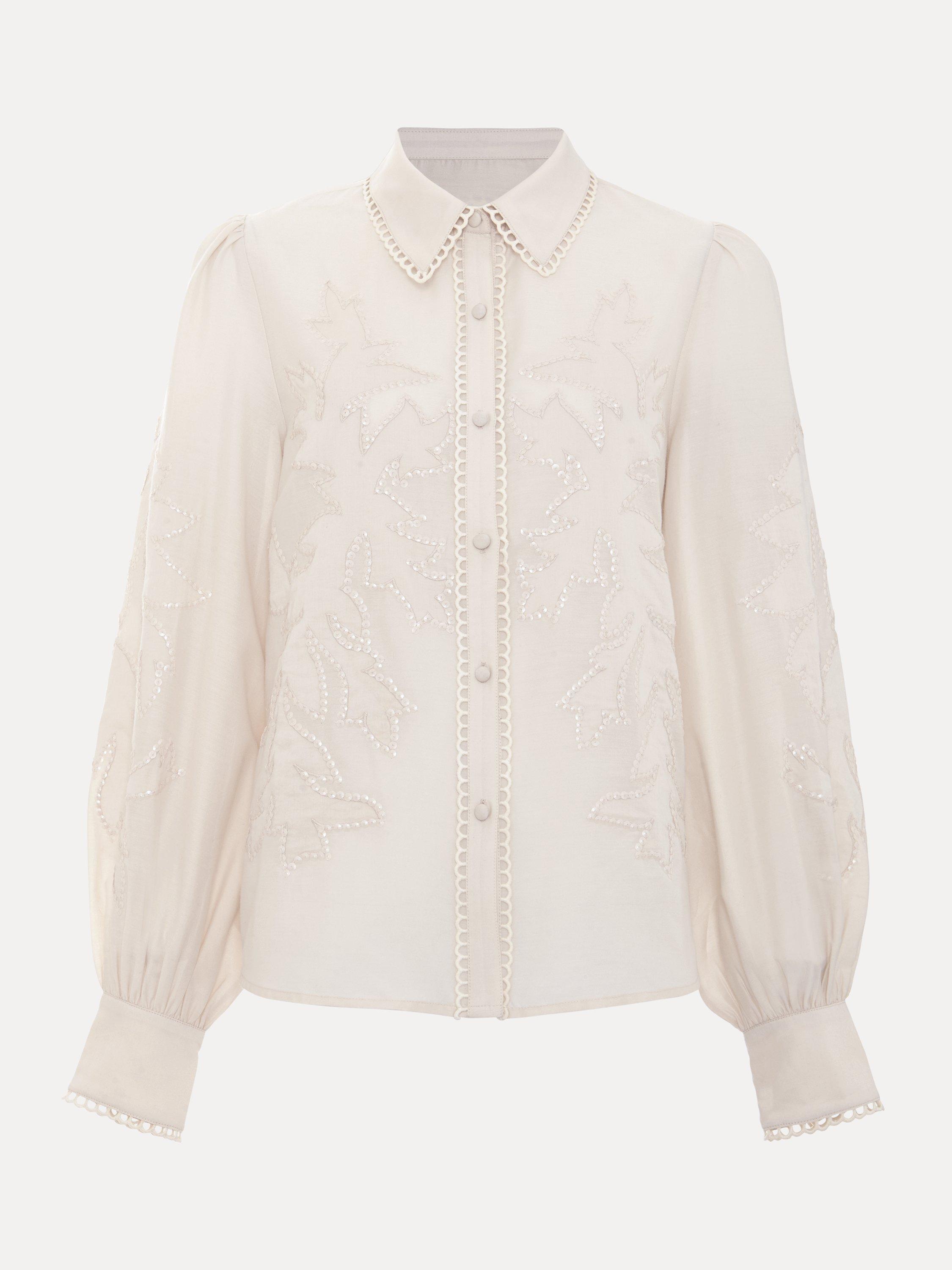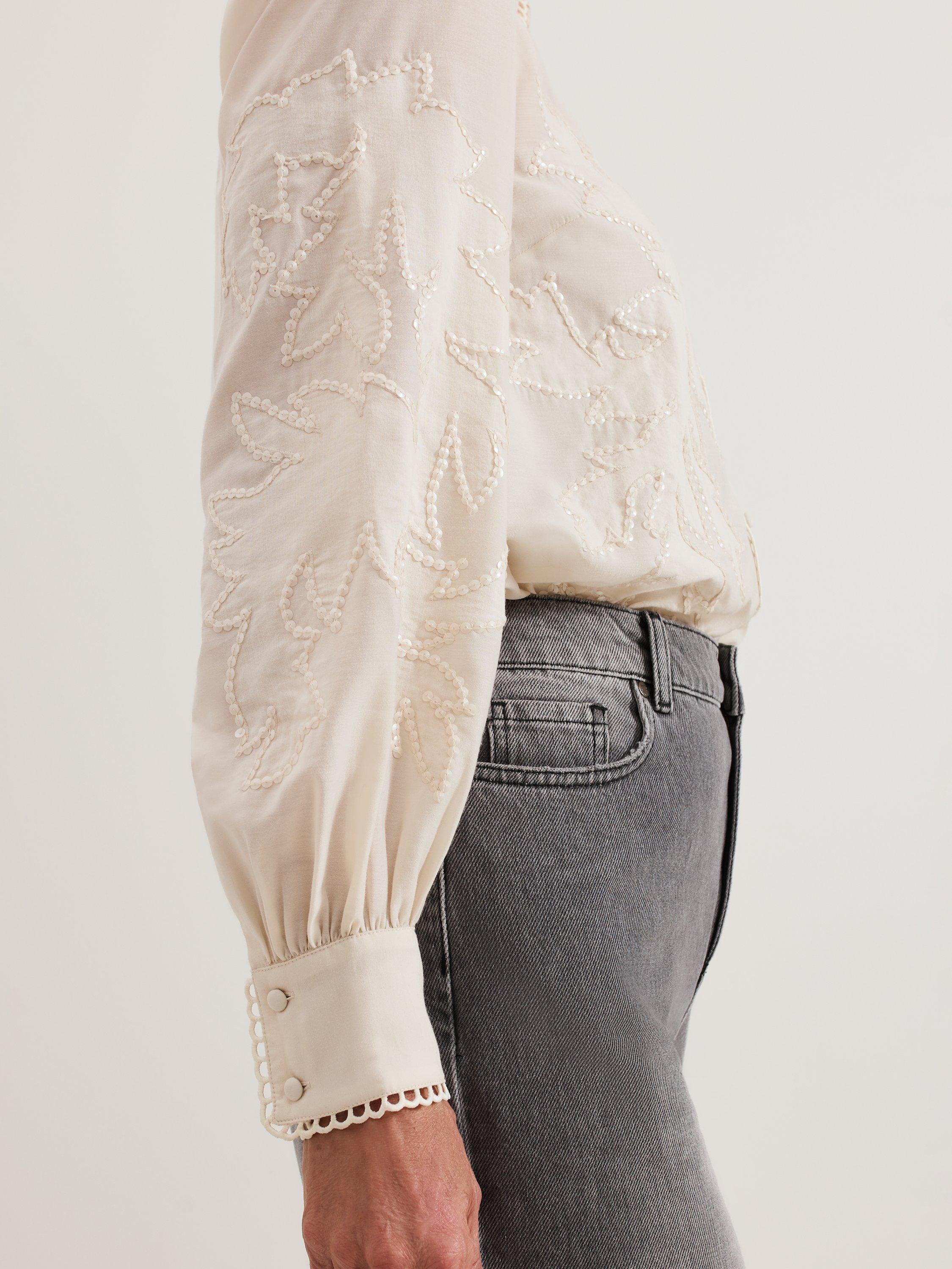 Perfect for your day to night wardrobe, the Aneira blouse is made from a lightweight fabric that's elevated with sequin detailing for evening appeal. Subtle embroidery decorates the hems for a whilst the cinched cuffs create a blouson sleeve effect. Pair with your favourite trousers and heels for a contemporary evening look.