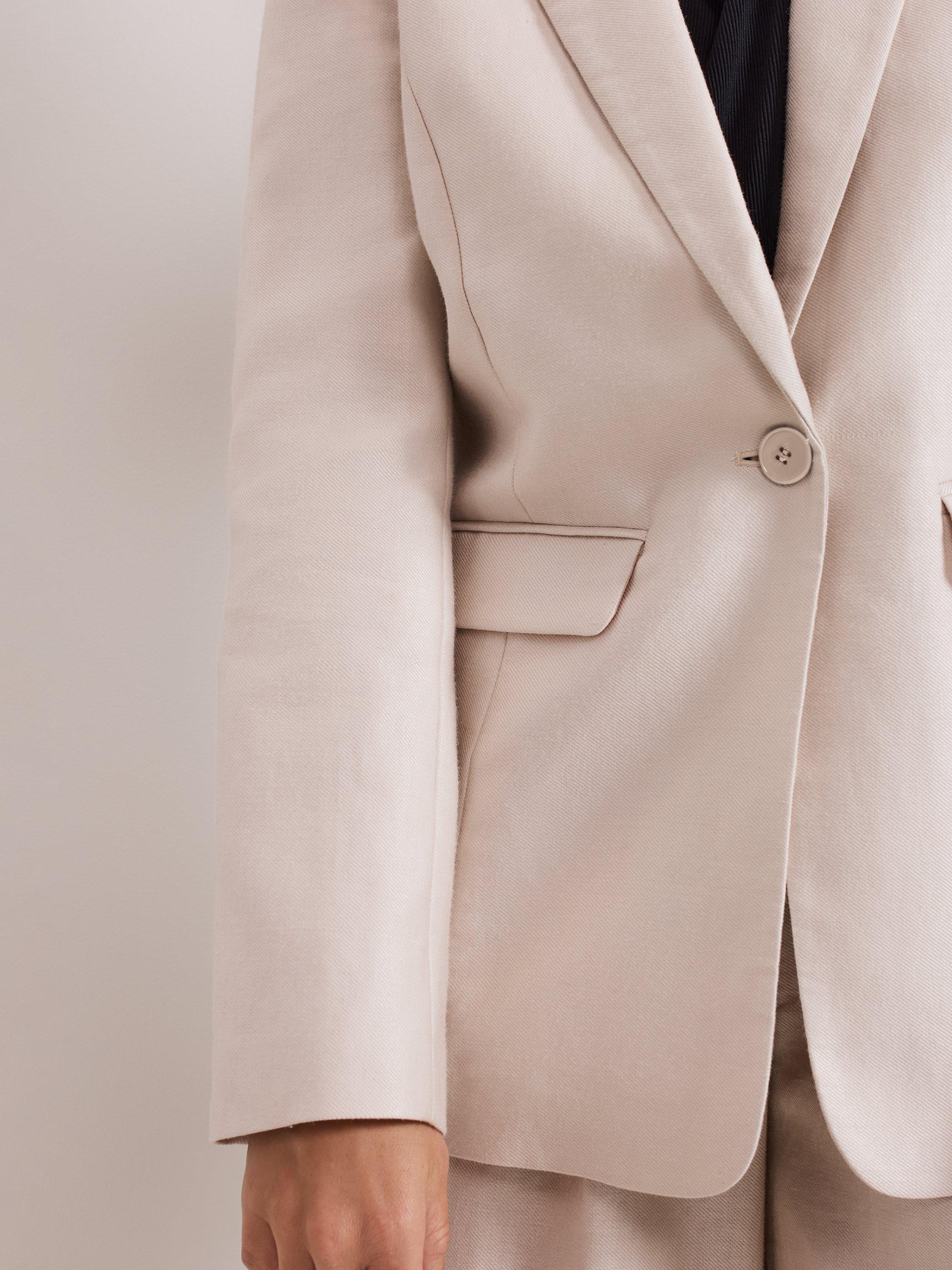The Amble neutral sheen blazer gives a unique formal look which elevates any outfit.
