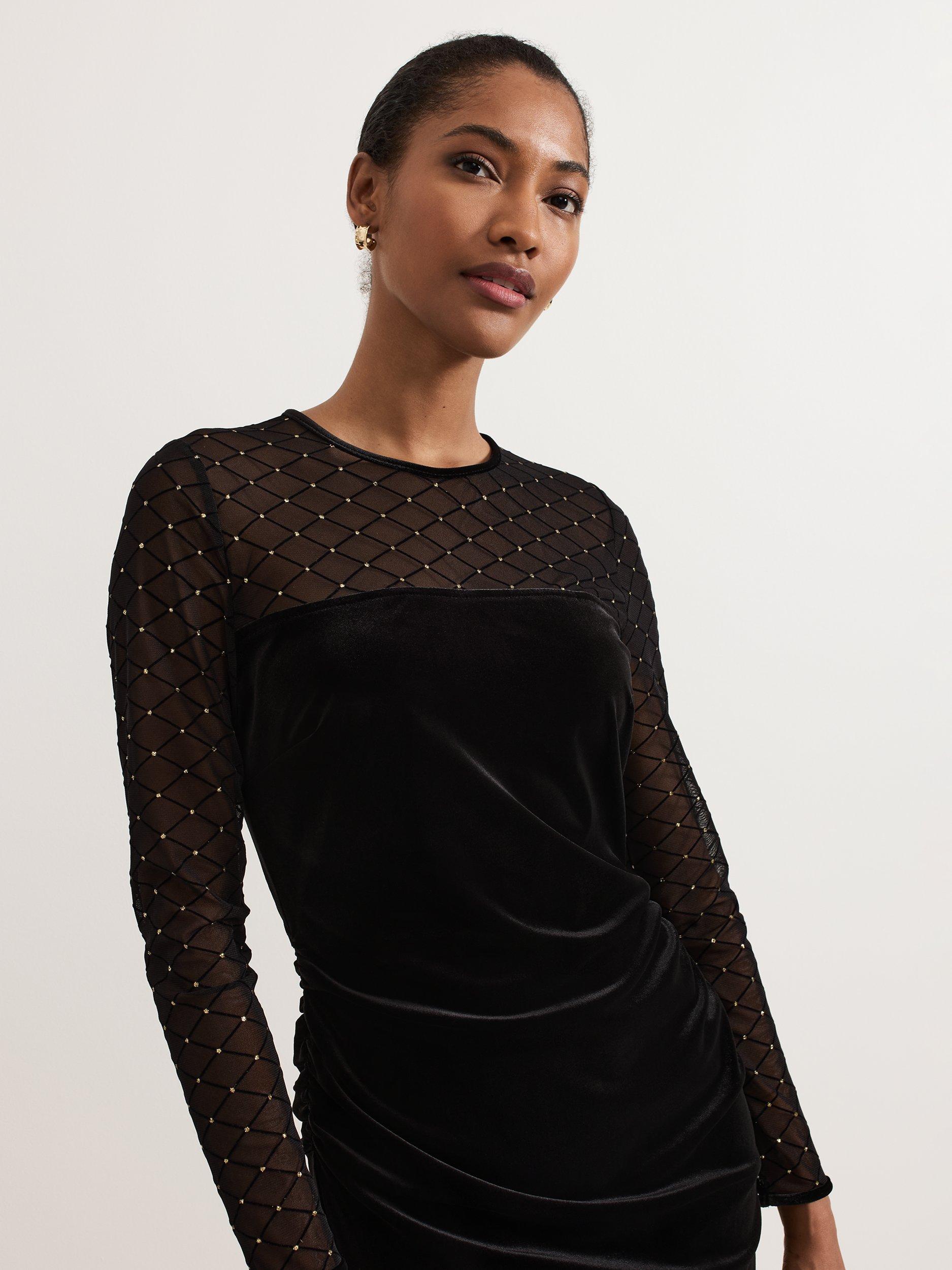 Cut to an iconic shift silhouette, this mini dress from Phase Eight is crafted from a blend of fabrics. Keeping things simple with a round neckline and long sleeves, it shimmers with detailed embellishment.