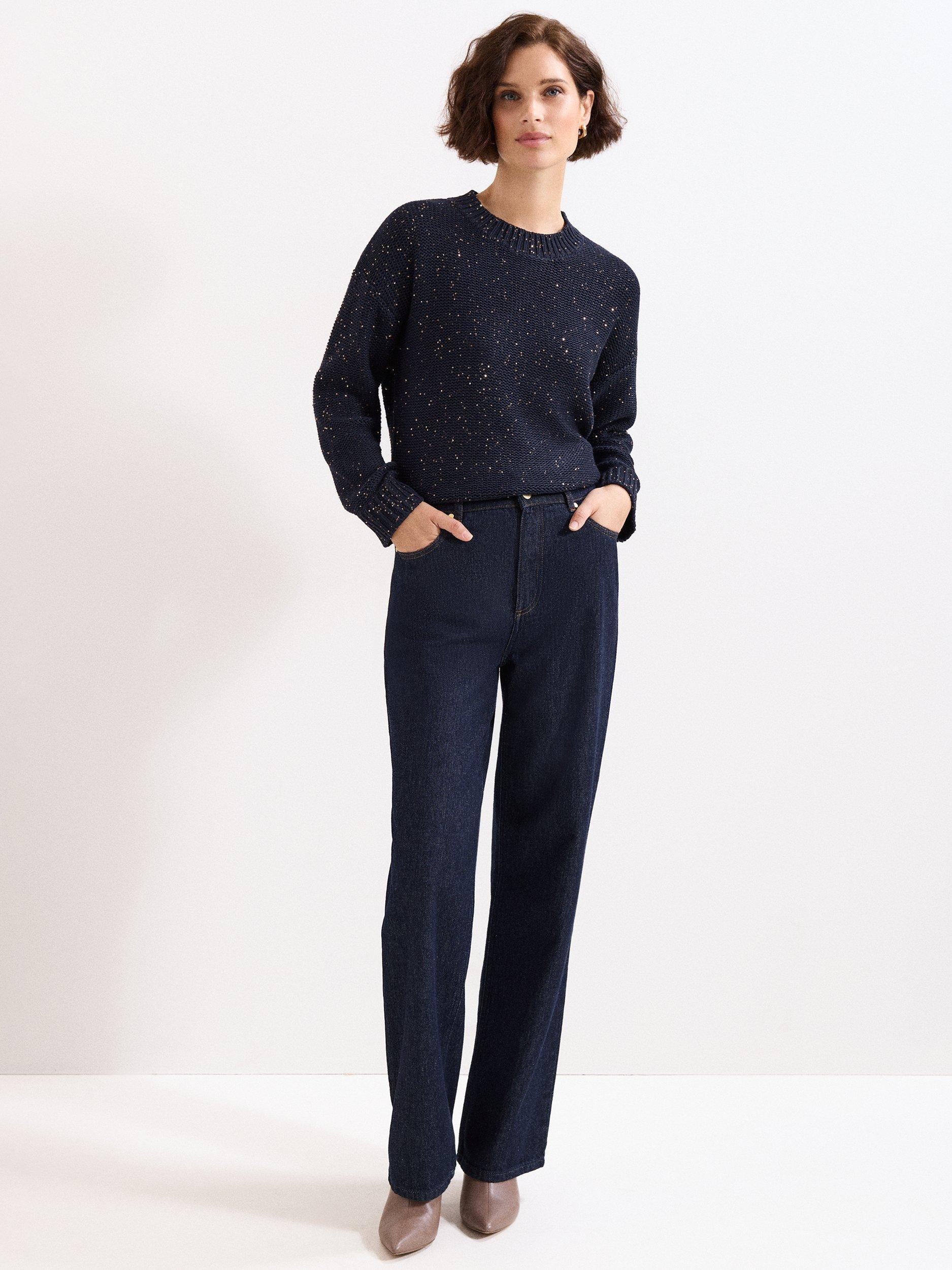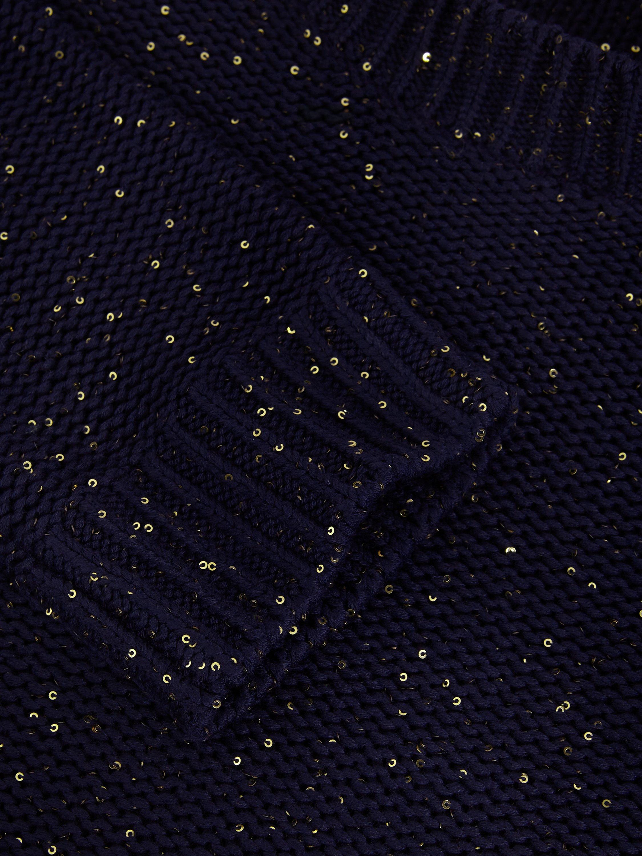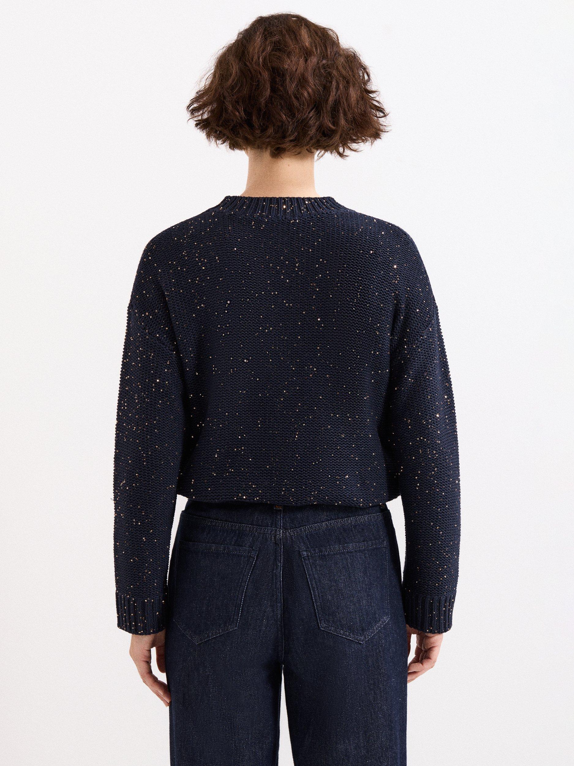 This classic jumper features specks of sequins for a subtly glam touch. Designed to be worn every day with jeans, but can be effortlessly styled up for sophisticated evening looks, paired with skirts and heels.
