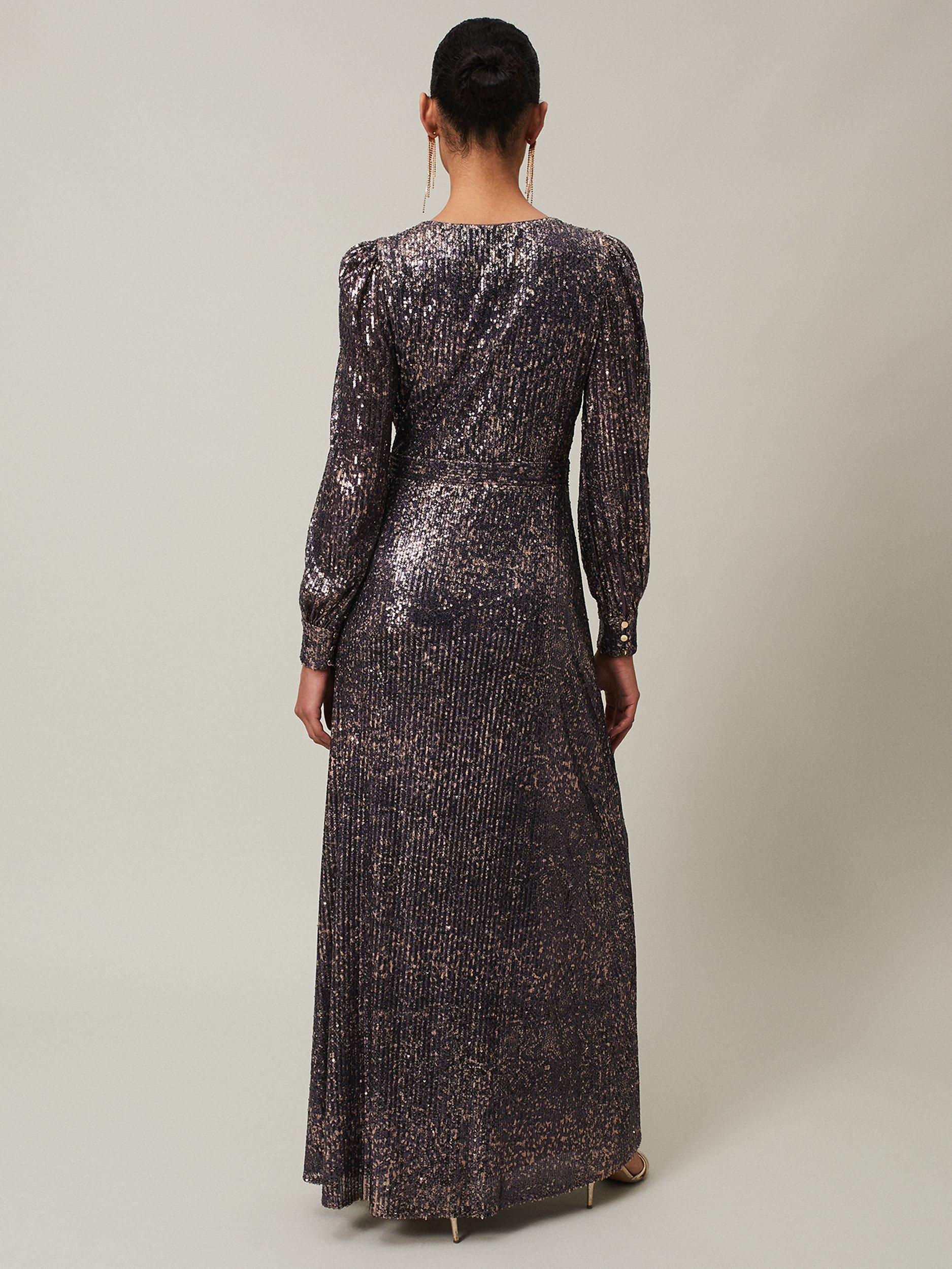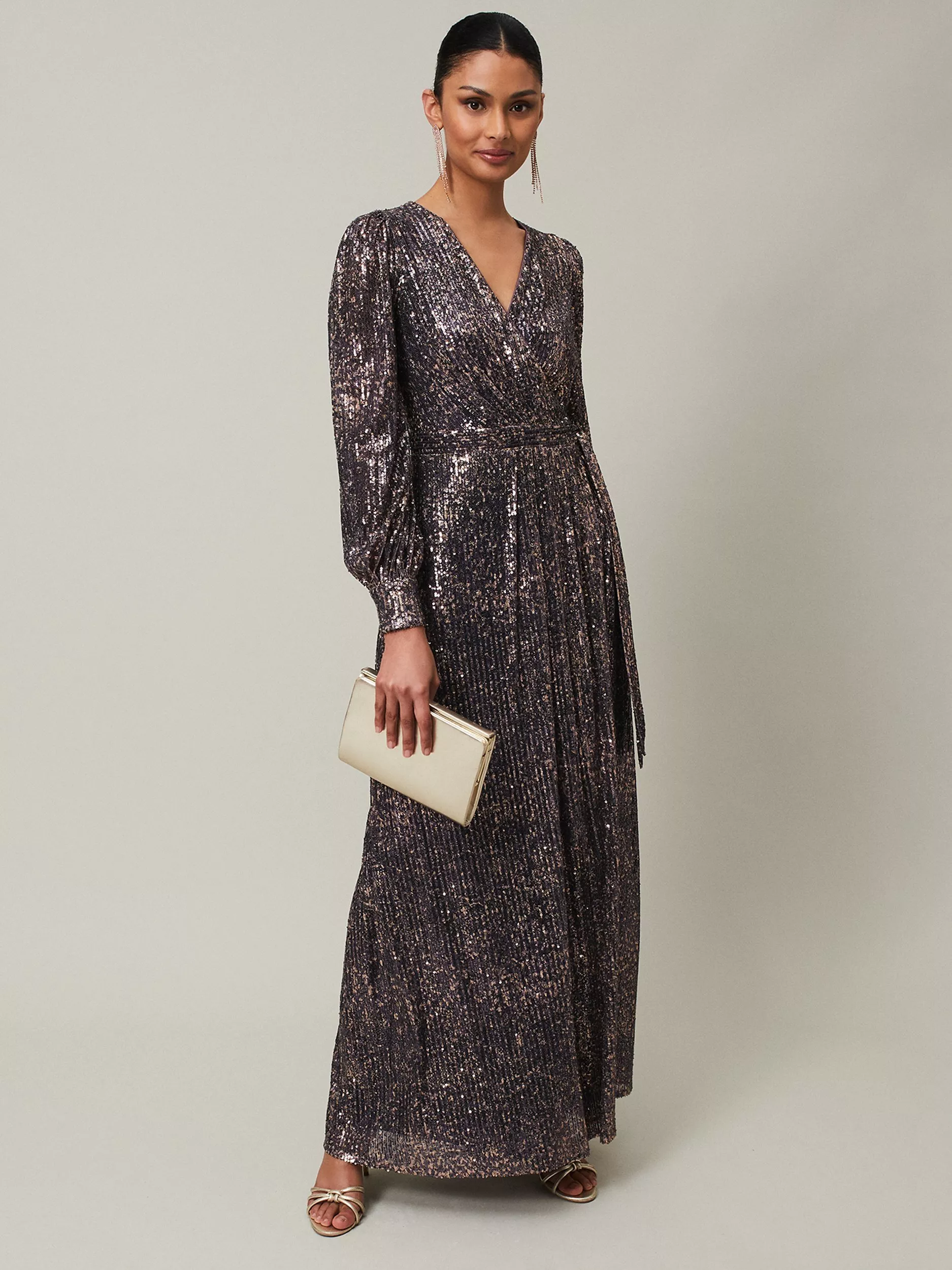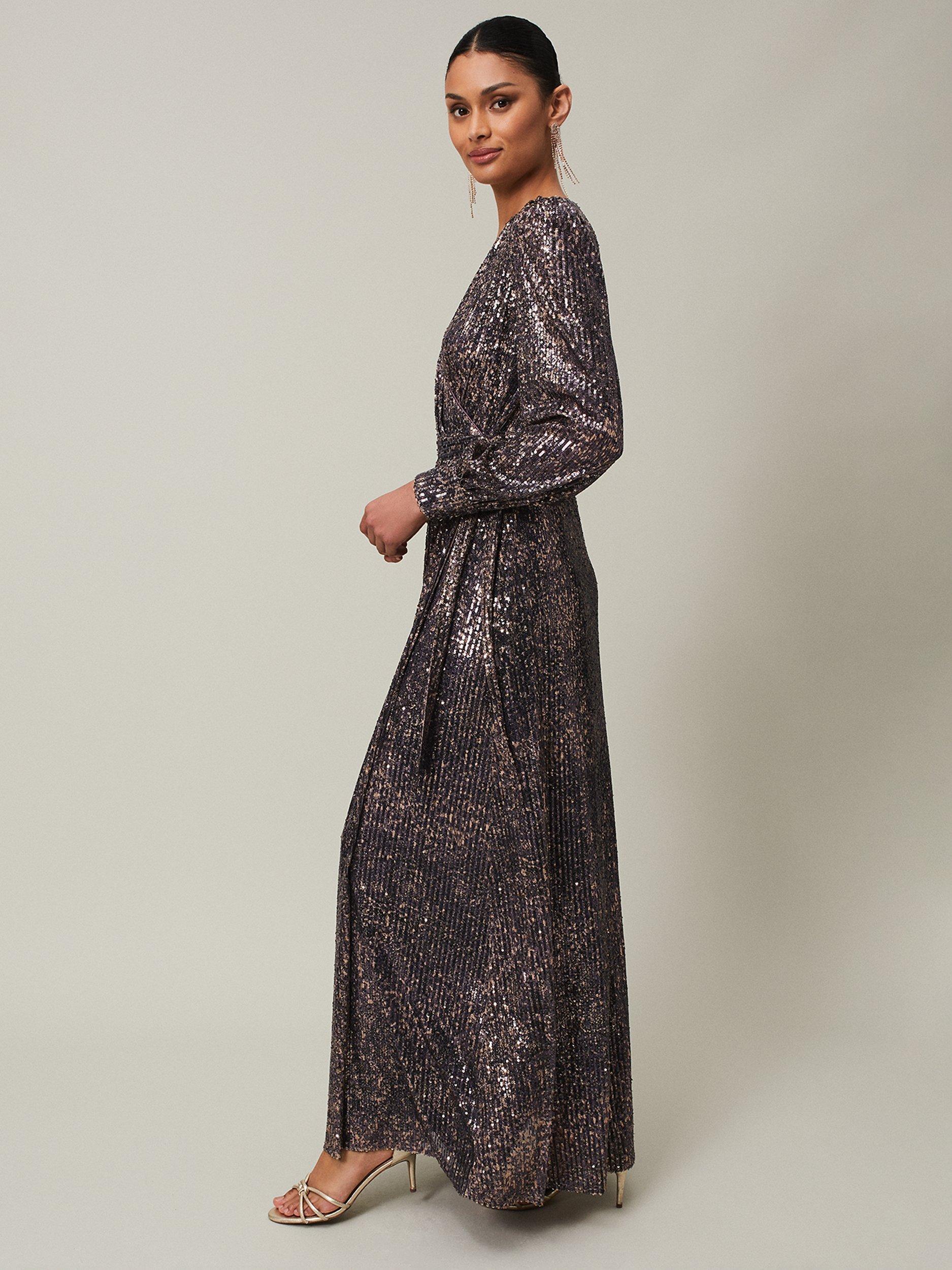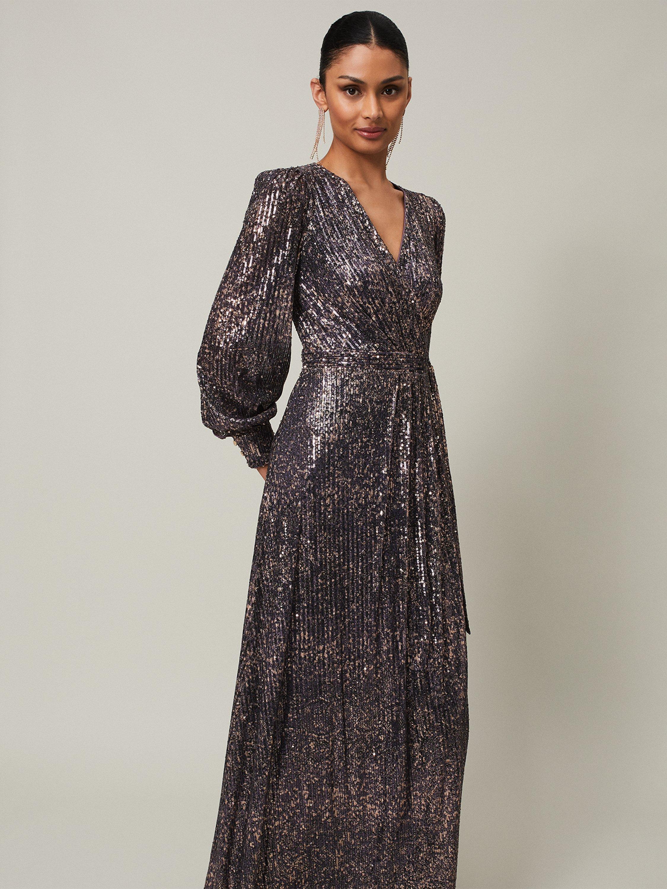 Wrapped at the front with a flared hem, this floor-length dress from Phase Eight is crafted from a blend of fabrics. A feminine choice thanks to the wrap over neckline and long sleeves, it is all about letting the embellishments shine.
