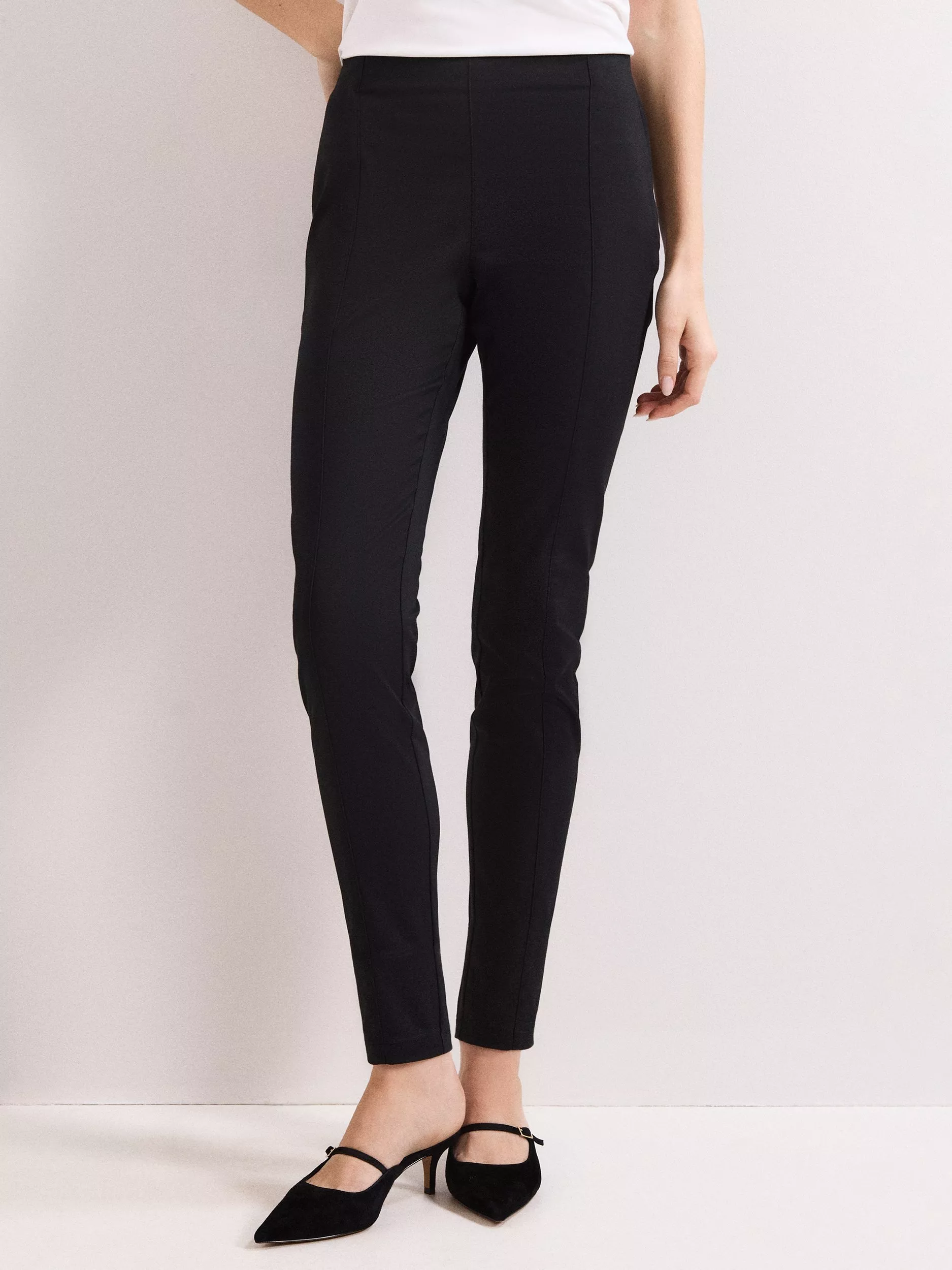 A pair of streamlined skinny trousers from Phase Eight made from a cotton-blend fabric. They are designed to sit mid rise with a zip fastening and hems that fall to a regular length.