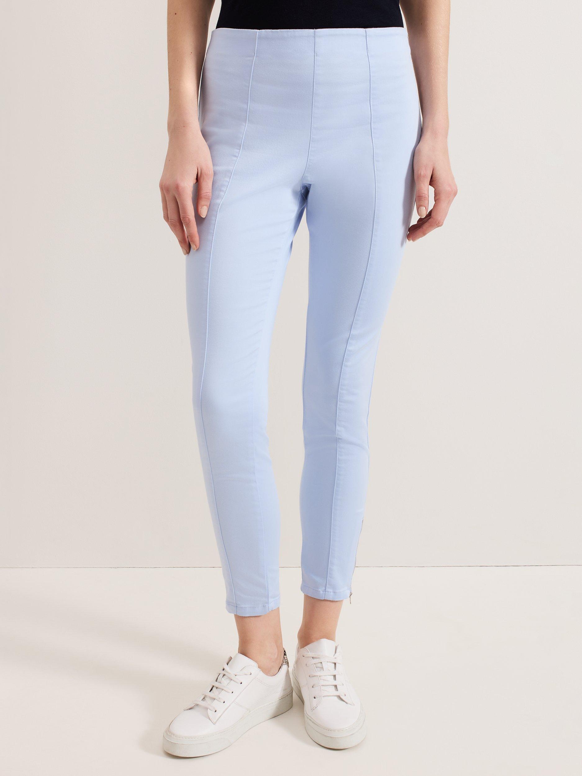 Made from a fabric blended with cotton to enhance breathability, they are cropped at the ankle and couple up beautifully with printed tops thanks to their plain design.